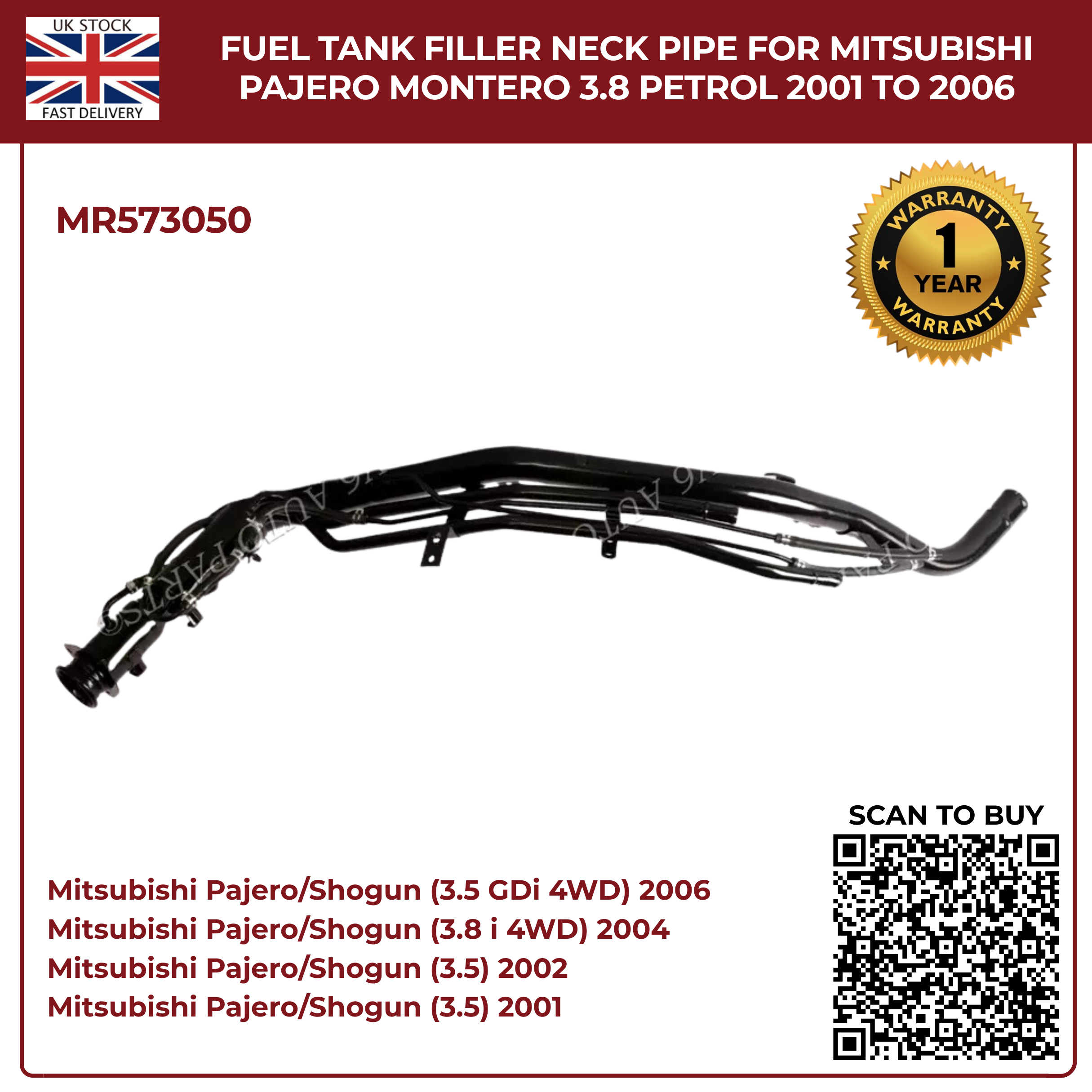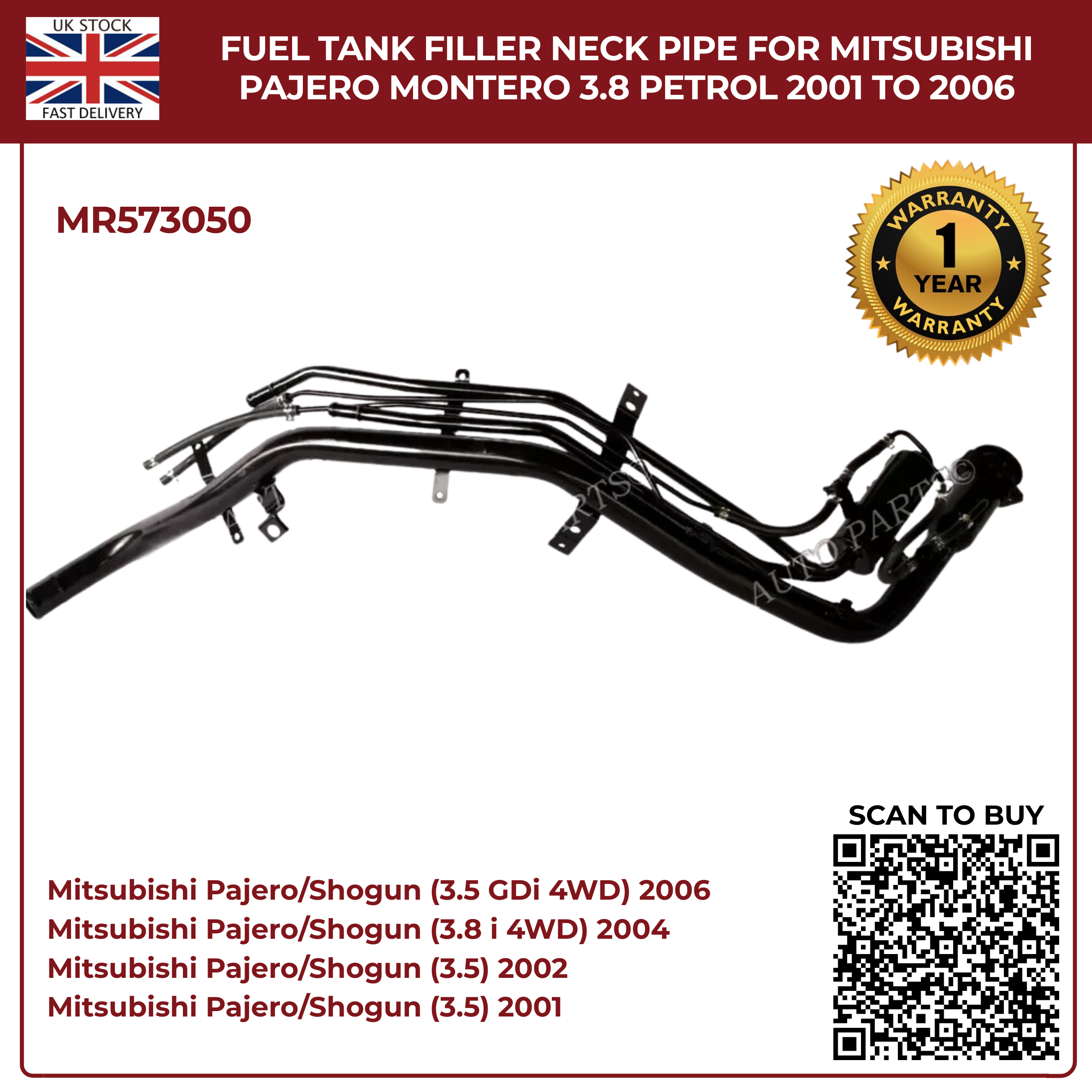 2002–2006 MITSUBISHI PAJERO MONTERO 3,5 3,8 V6 BENZIN-KRAFTSTOFF-FÜLLHALSROHR