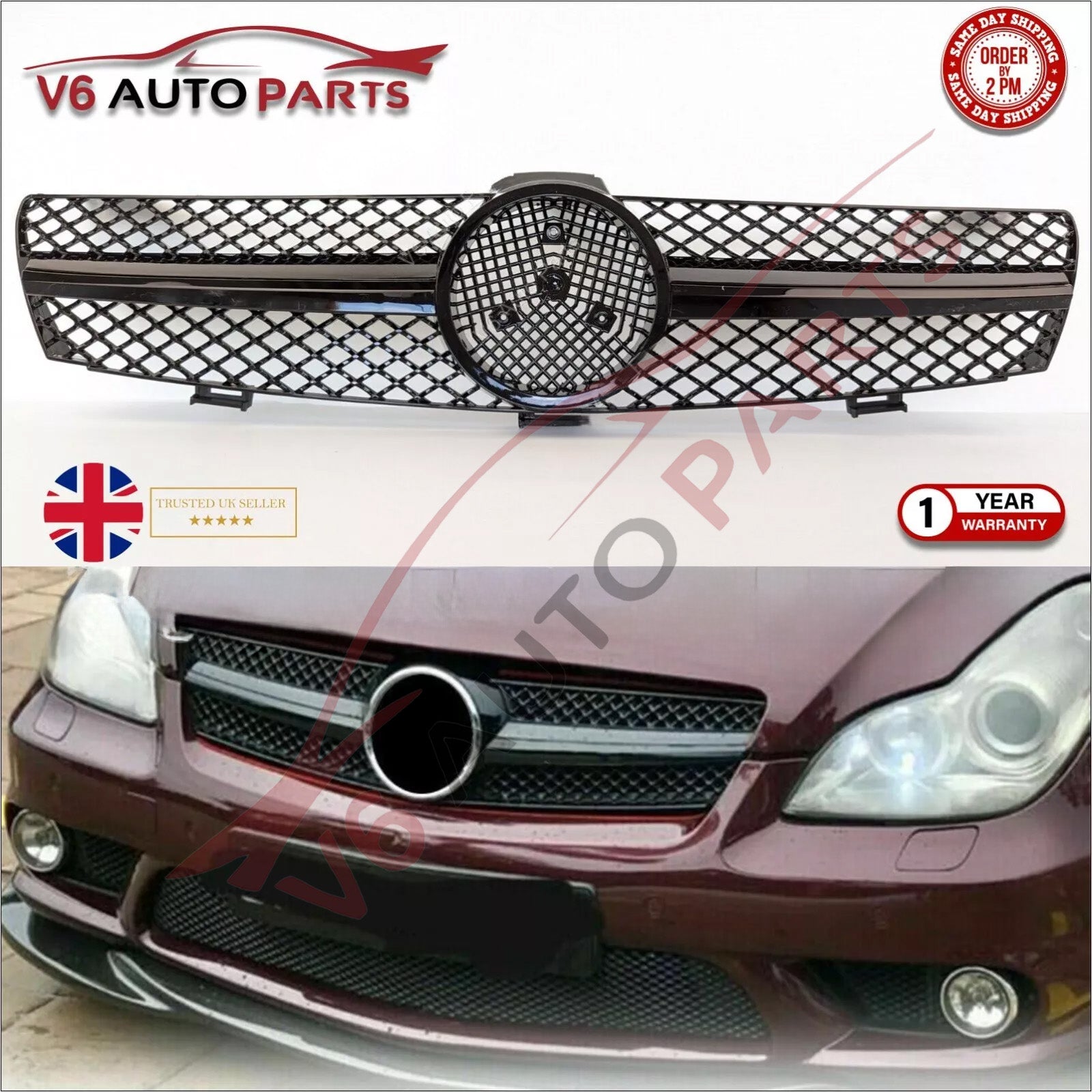 Schwarzer Kühlergrill vorne für Mercedes W219 CLS-Klasse CLS320 CDI 2005–2008
