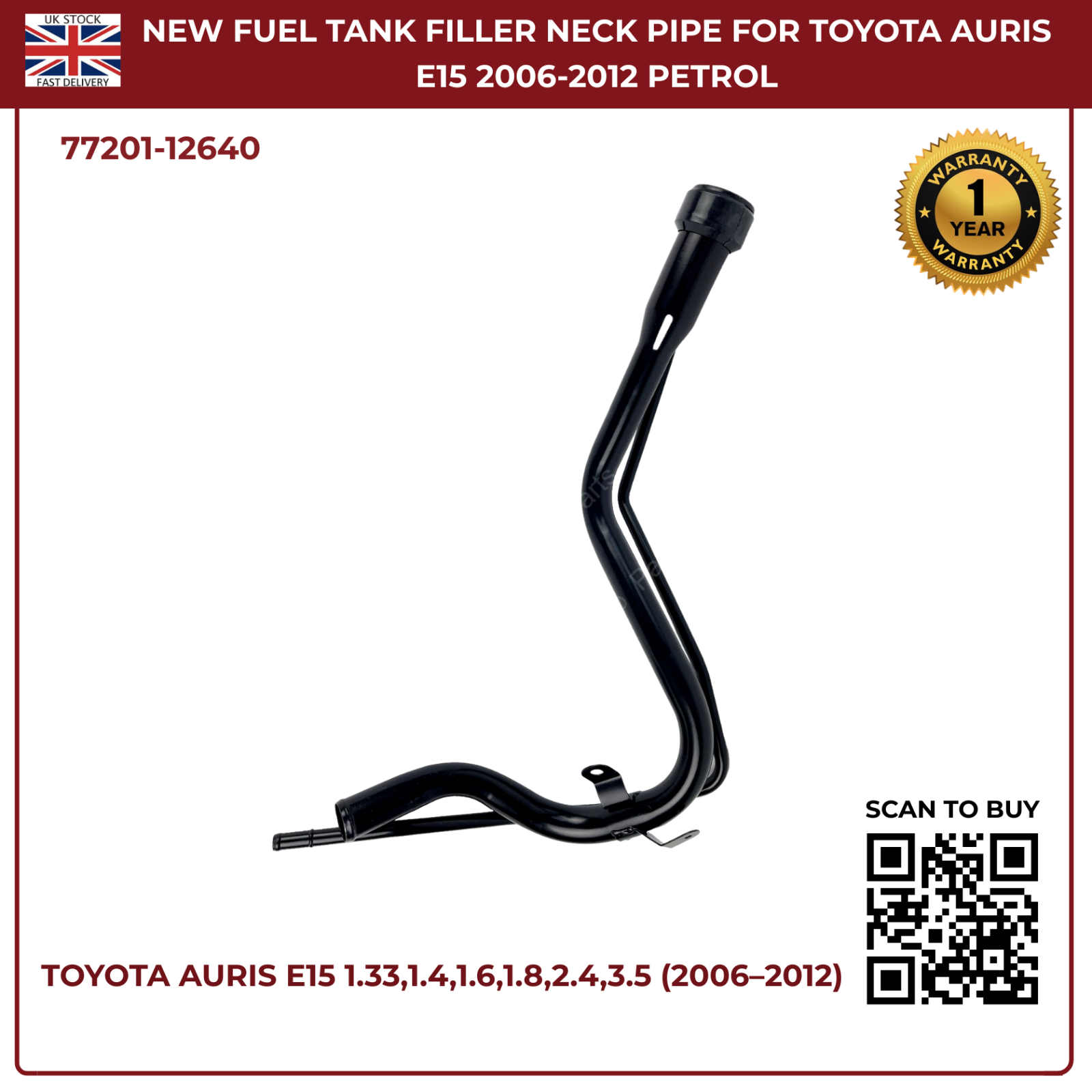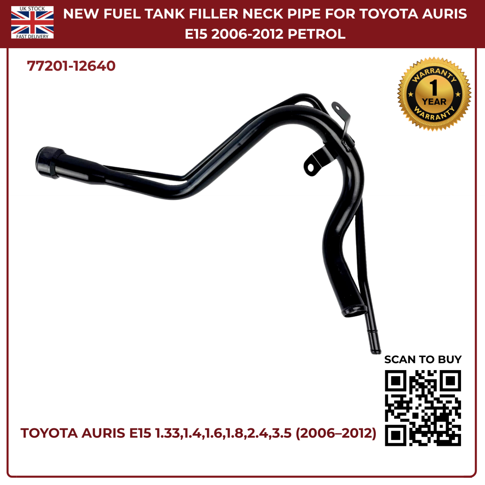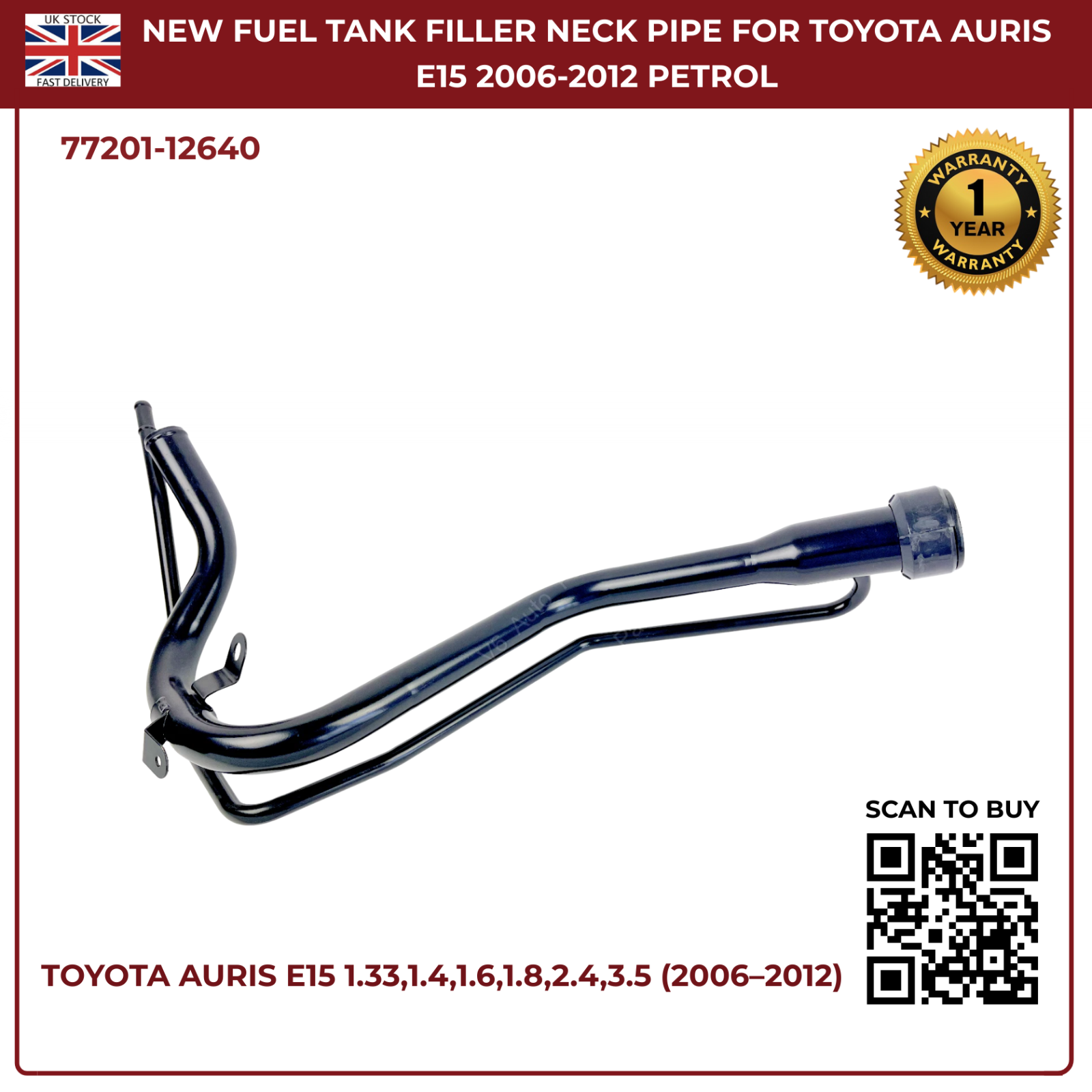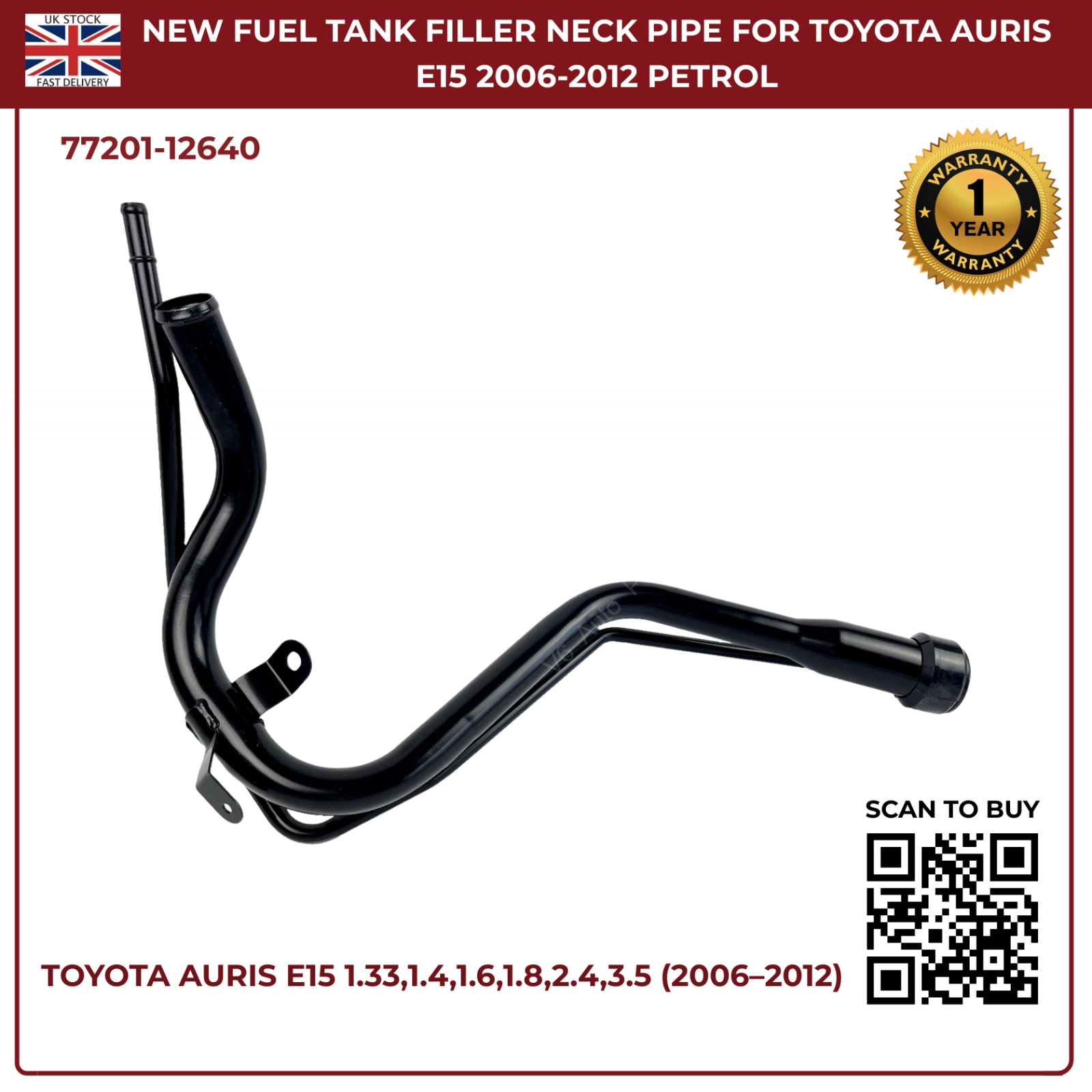 Fuel Tank Filler Neck Pipe Assembly For Toyota Auris E15 2006–2012 | OEM Ref 77201‑12640