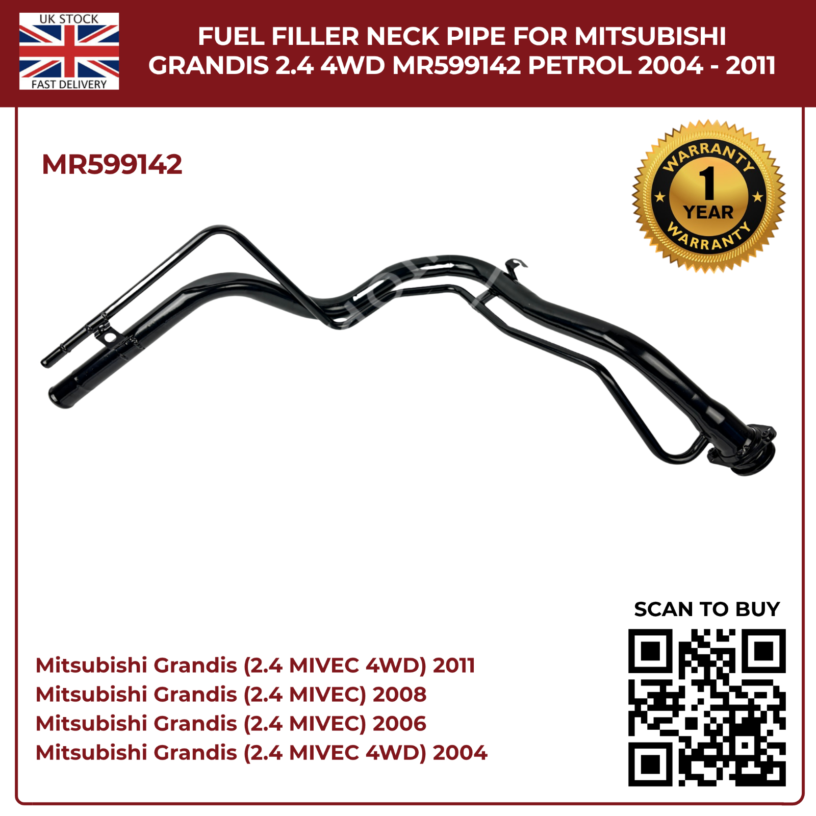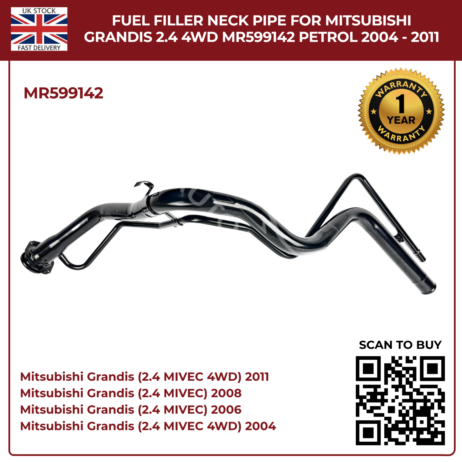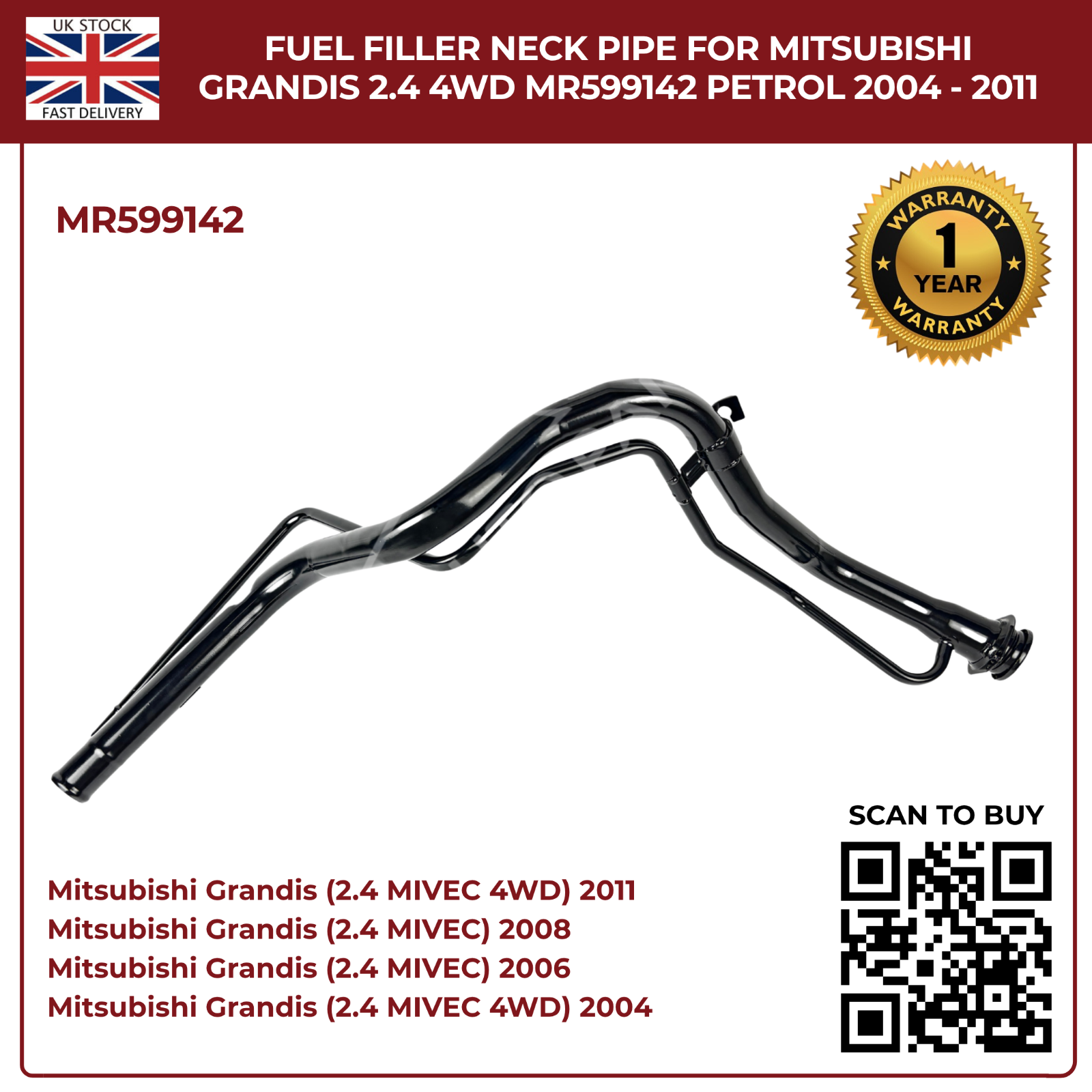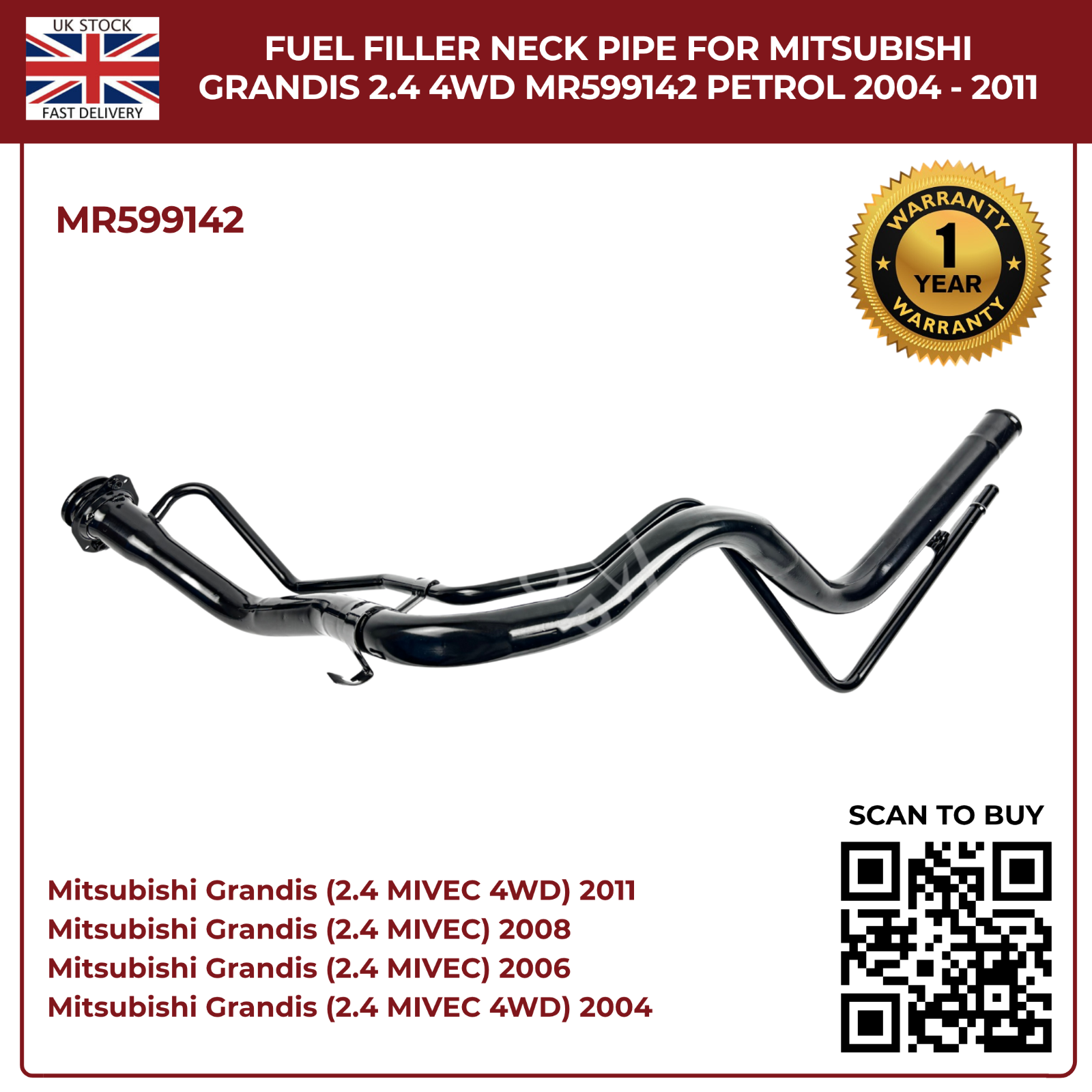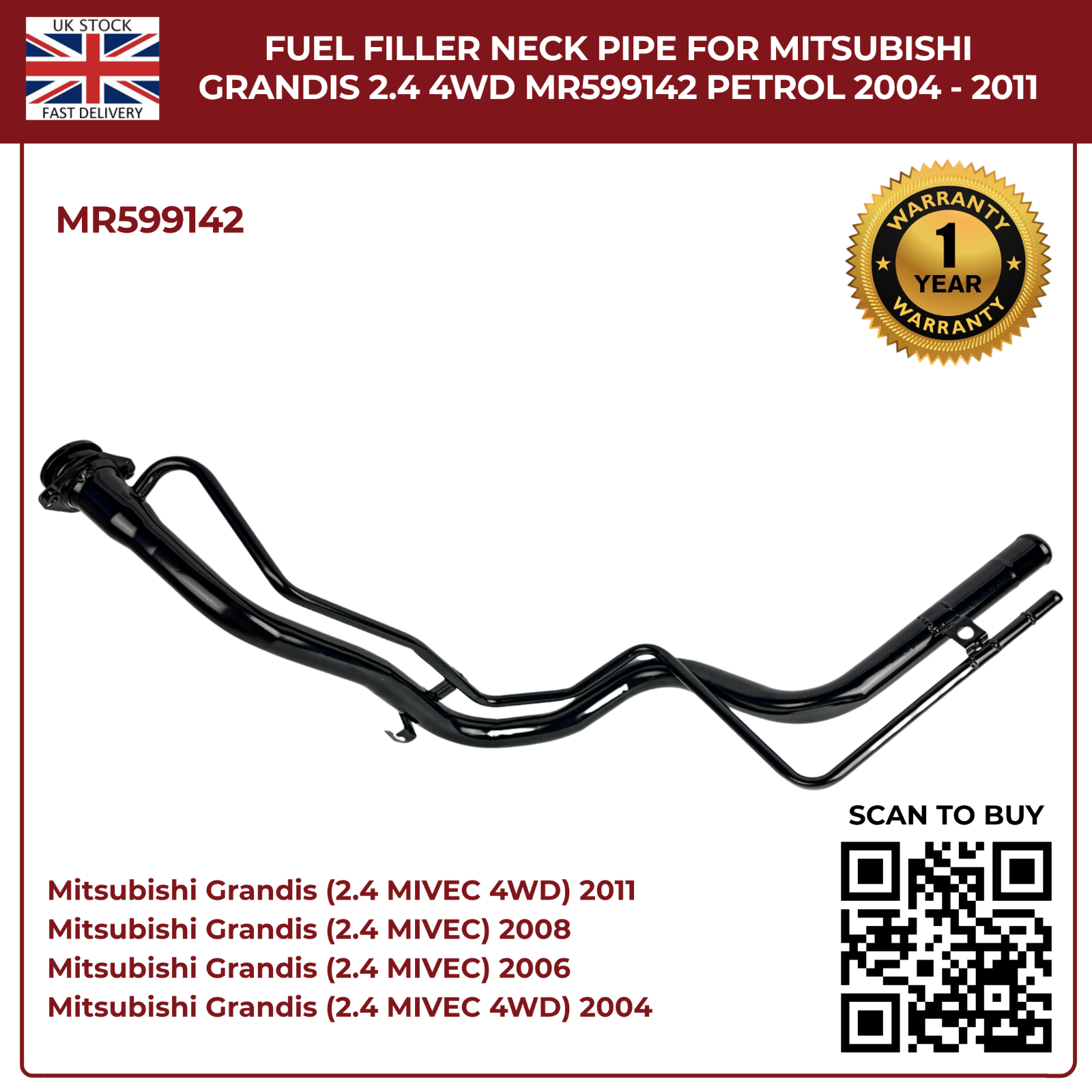 Fuel Filler Neck Pipe for Mitsubishi Grandis 2004–2011 2.4 Petrol 4WD – Direct Replacement MR599142