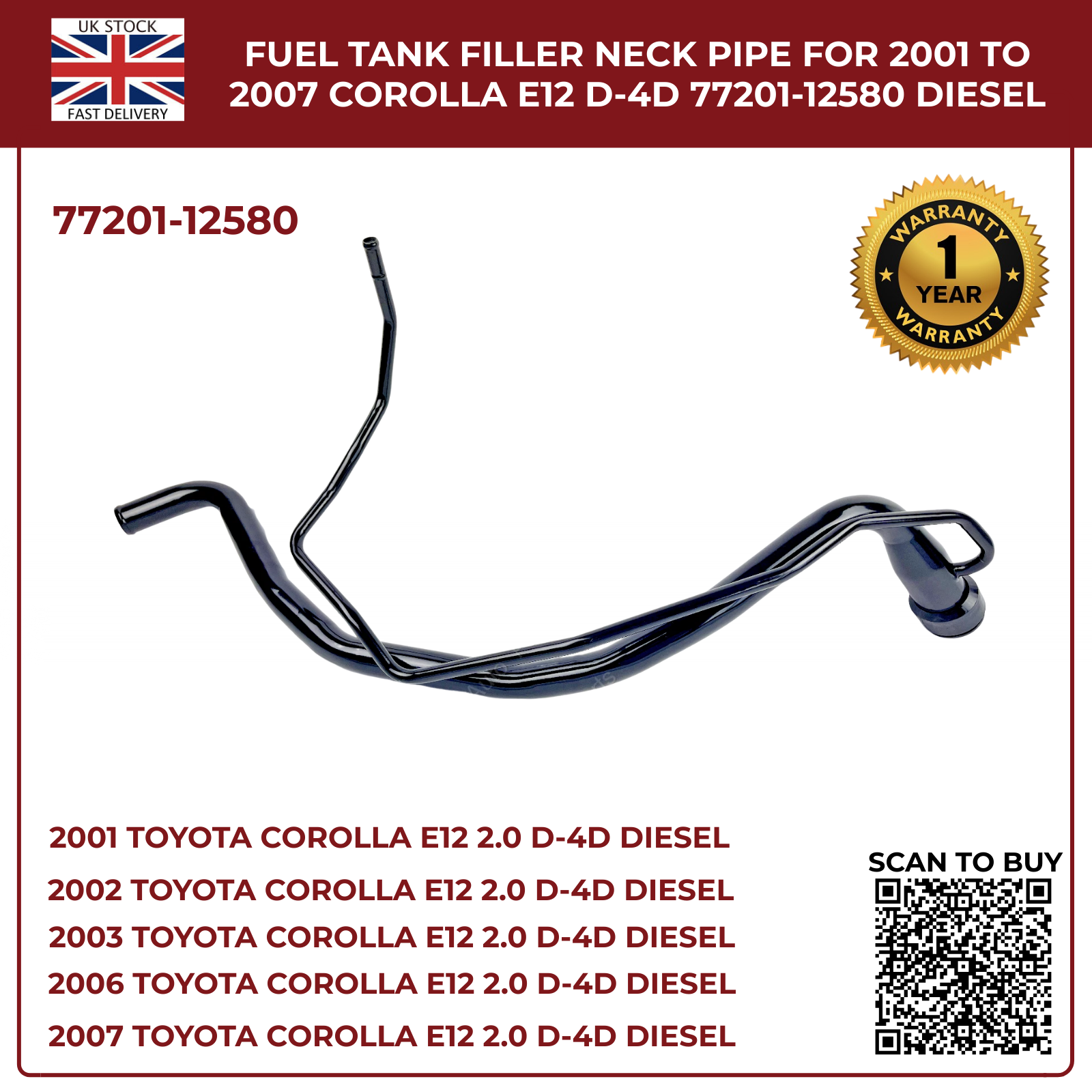 KRAFTSTOFFTANKFÜLLER-HALSROHR FÜR 2001–2004 COROLLA VERSO E12 2.0 D4D