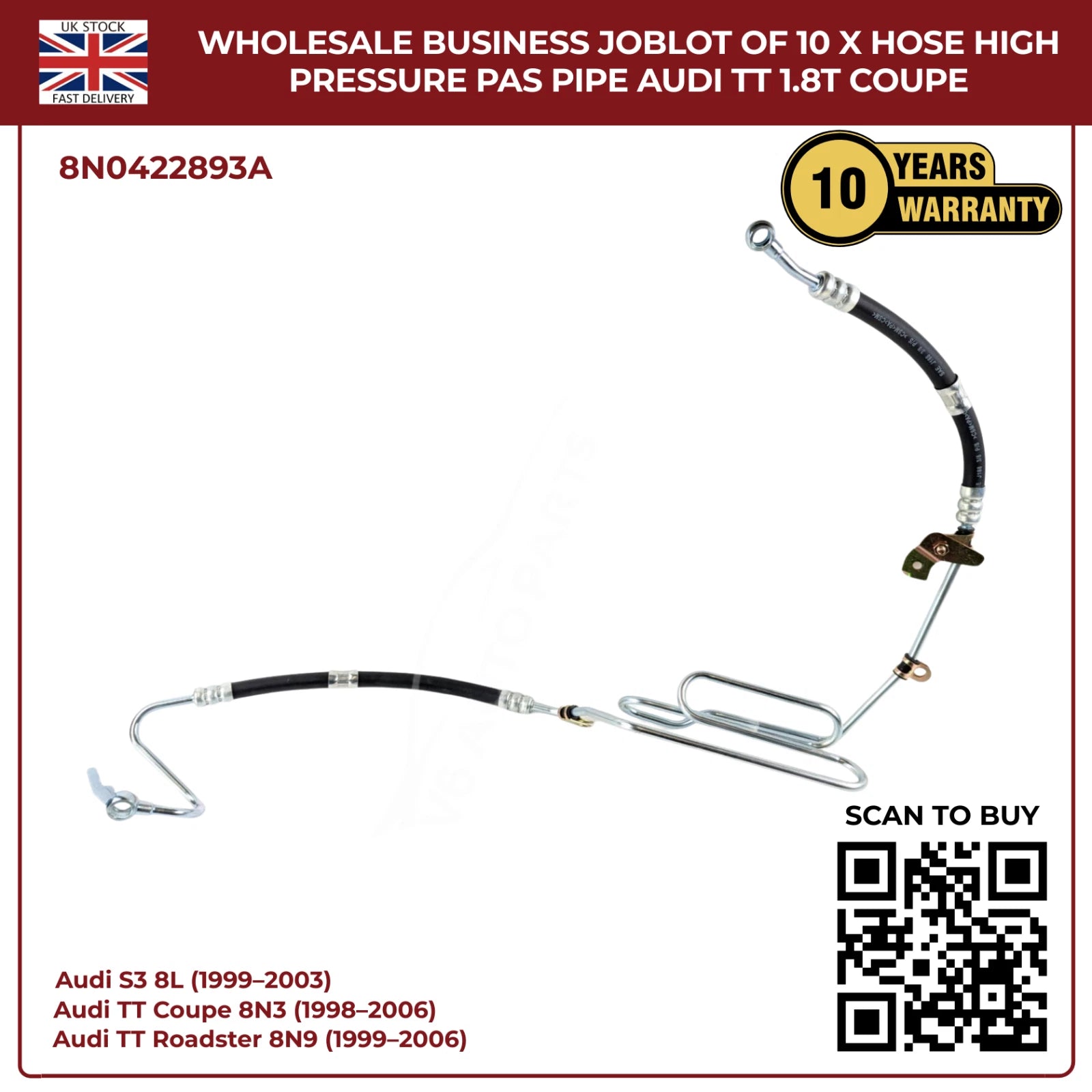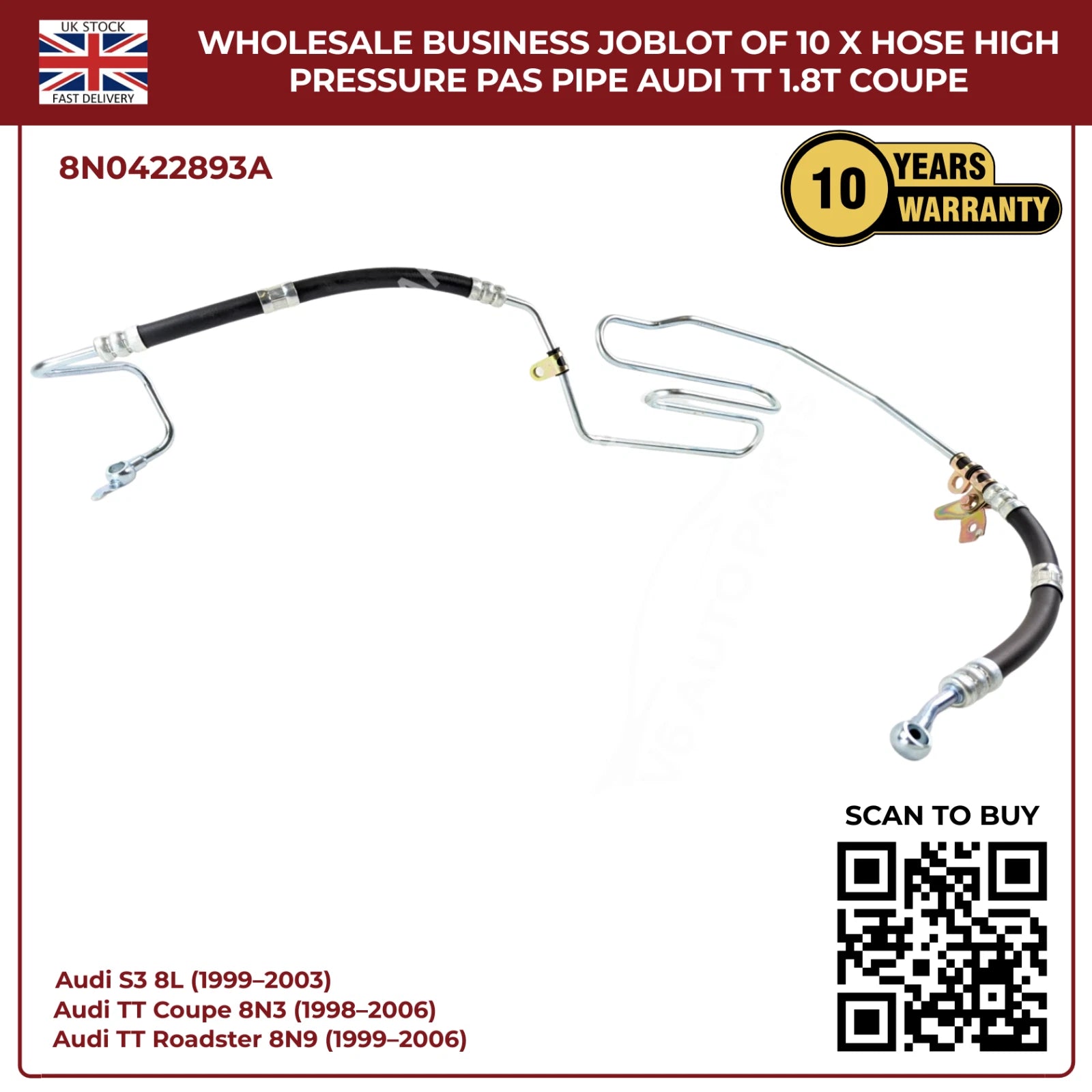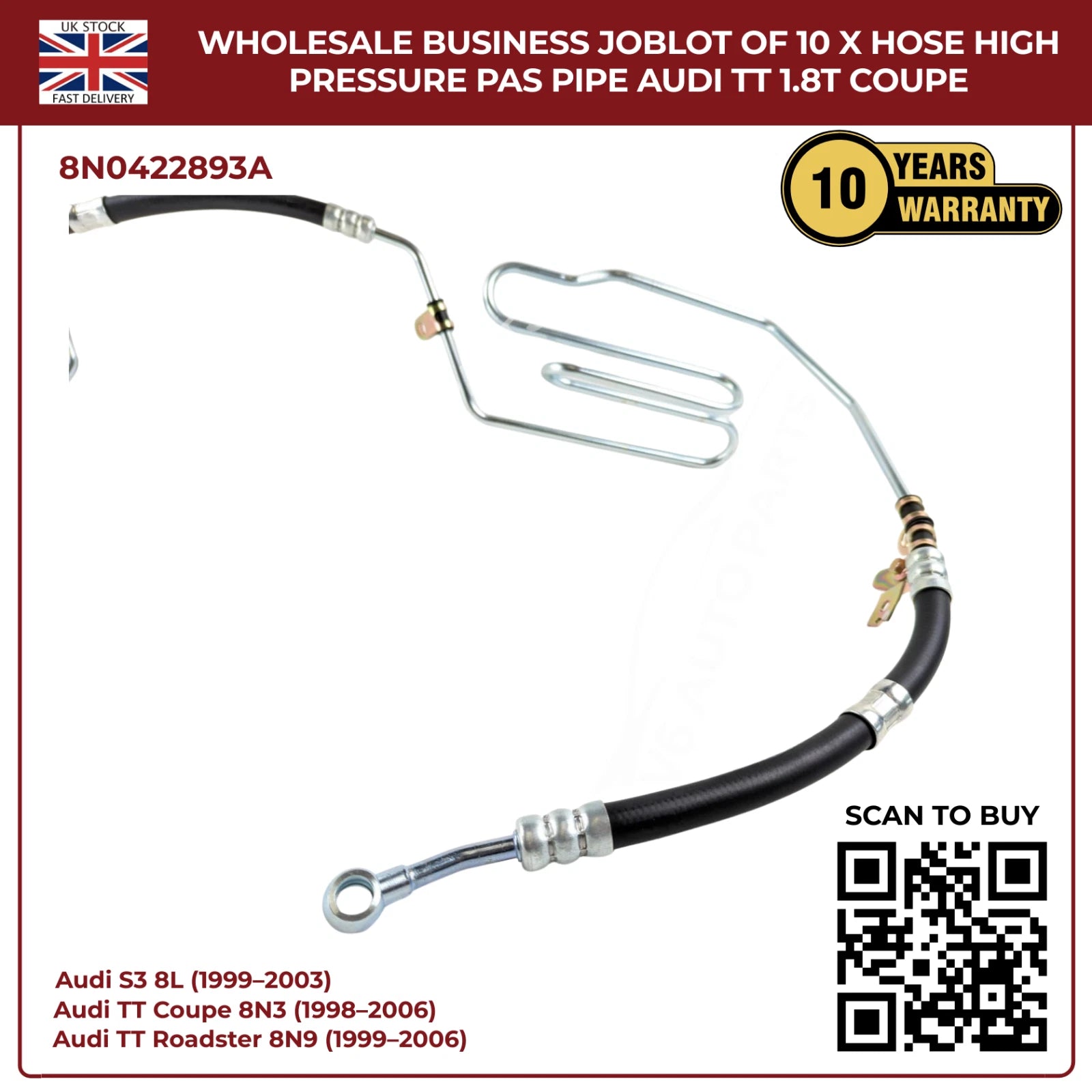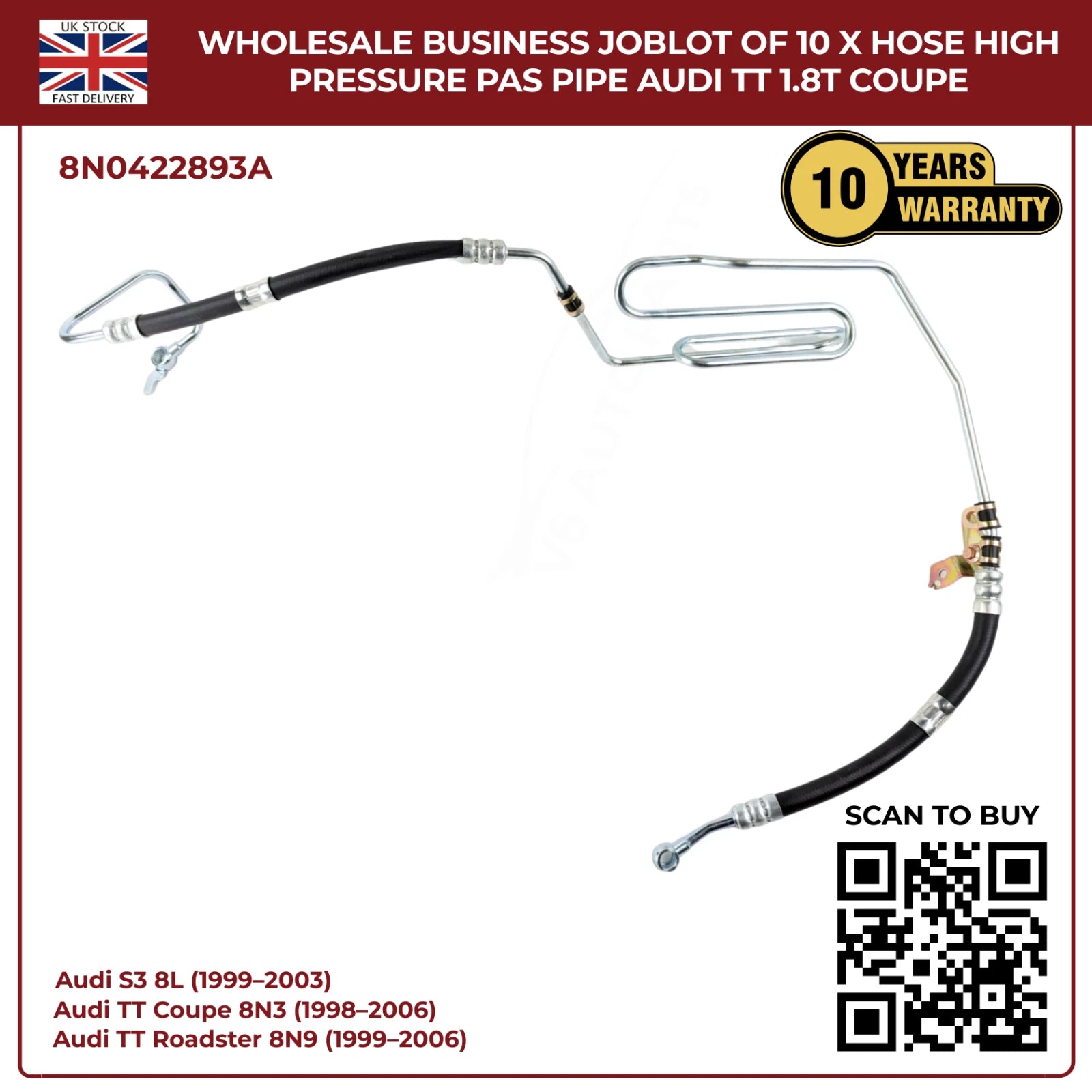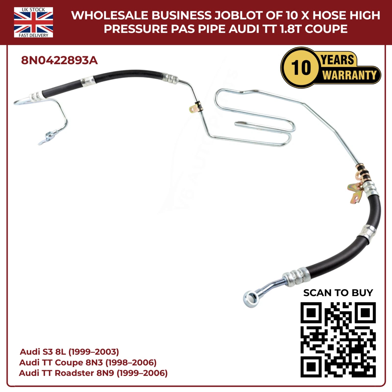 Wholesale Business JobLot of 10 x Hose High Pressure PAS Pipe Audi TT 1.8T Coupe