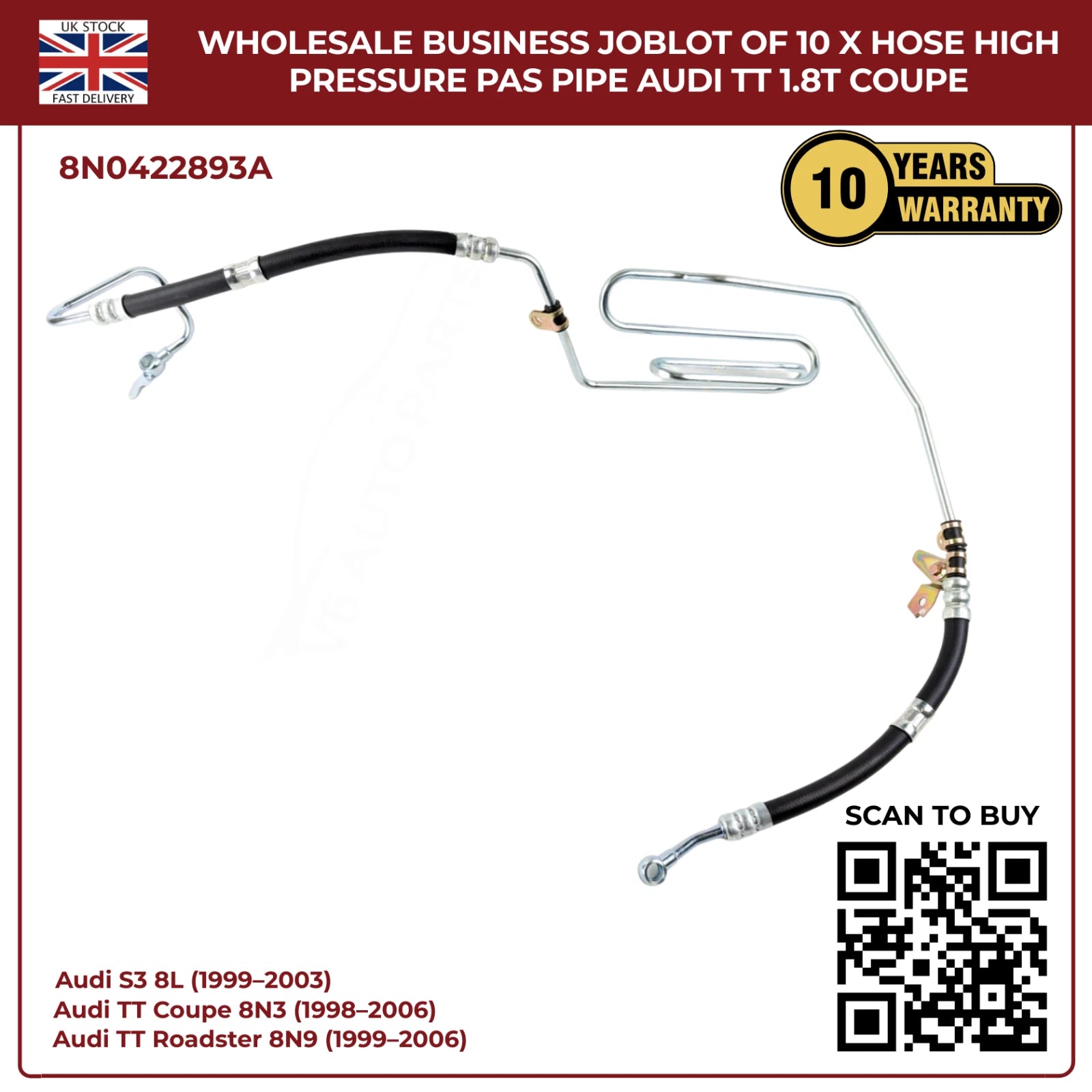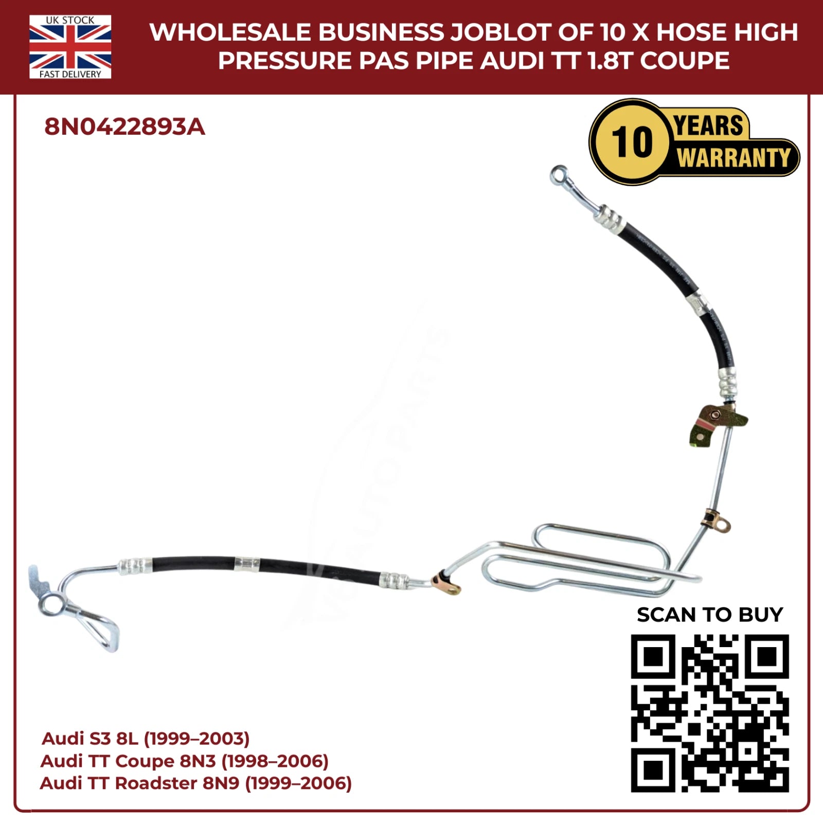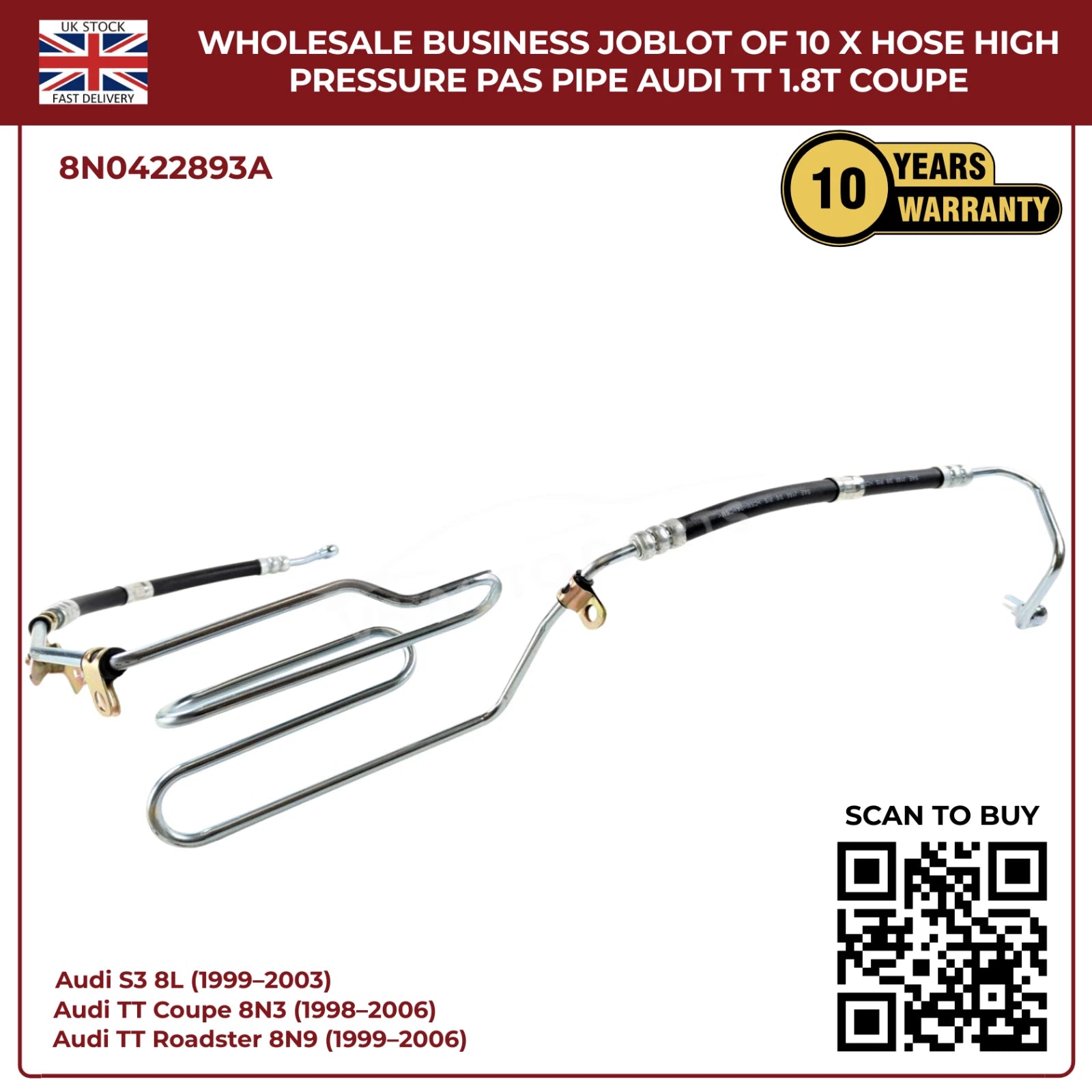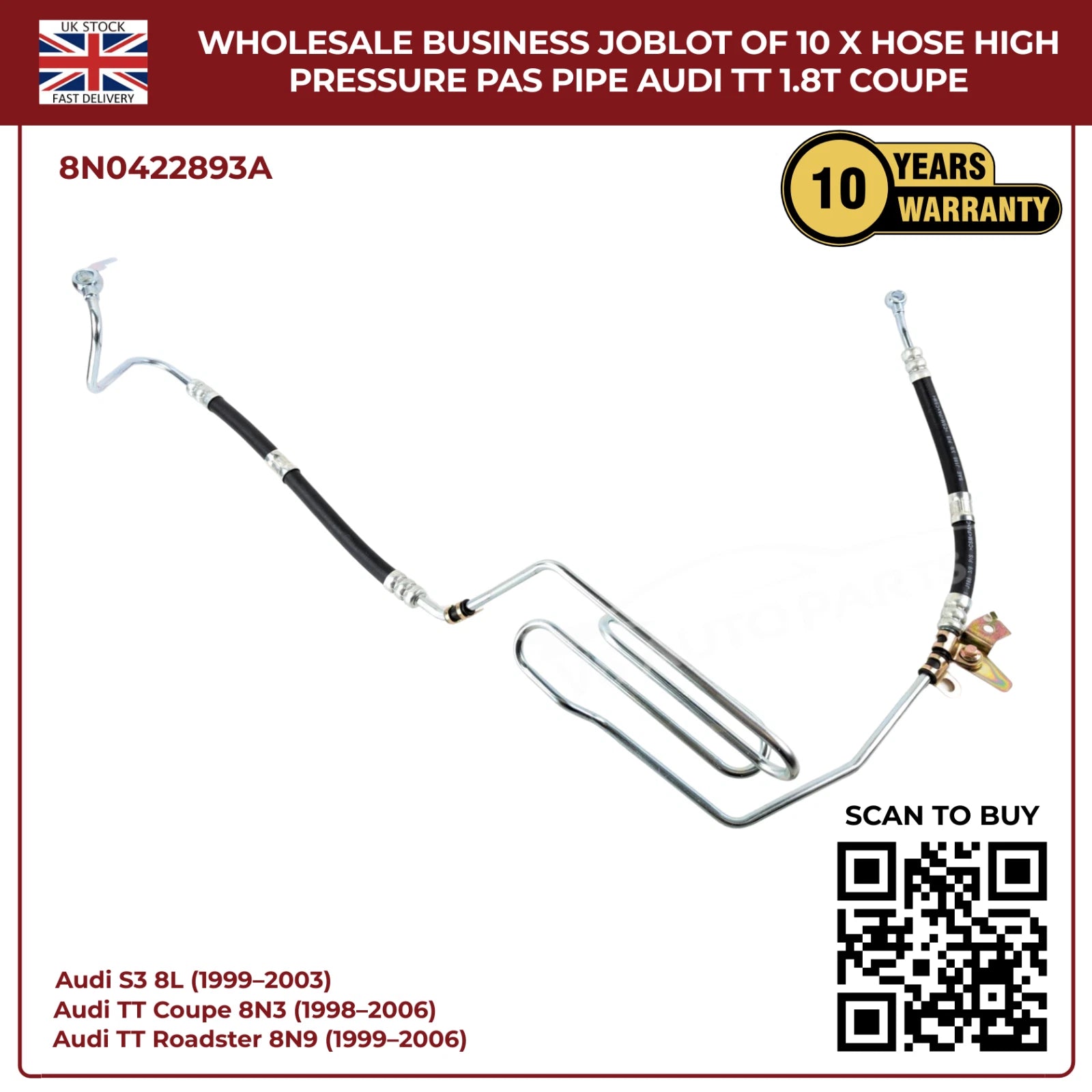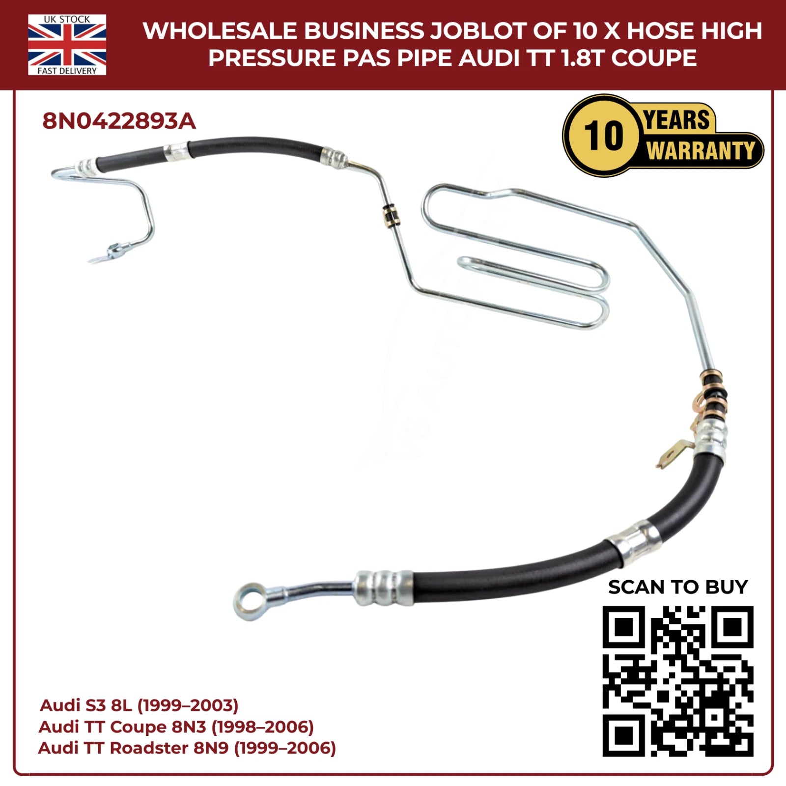 Wholesale Business JobLot of 10 x Hose High Pressure PAS Pipe Audi TT 1.8T Coupe