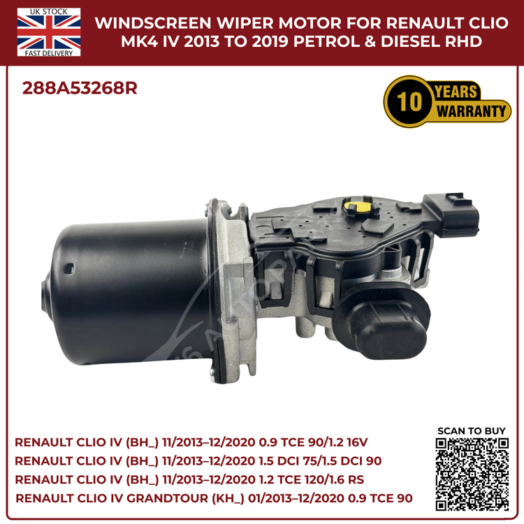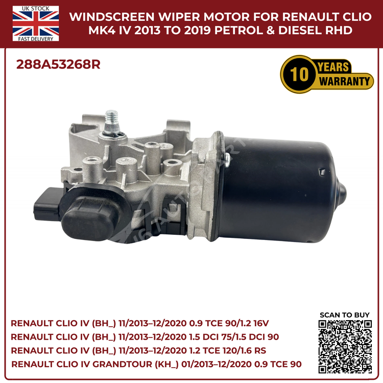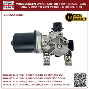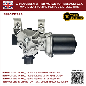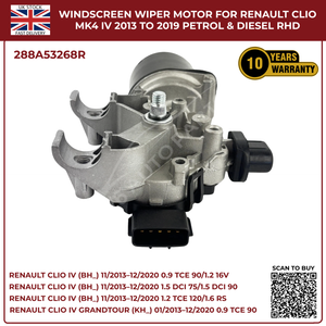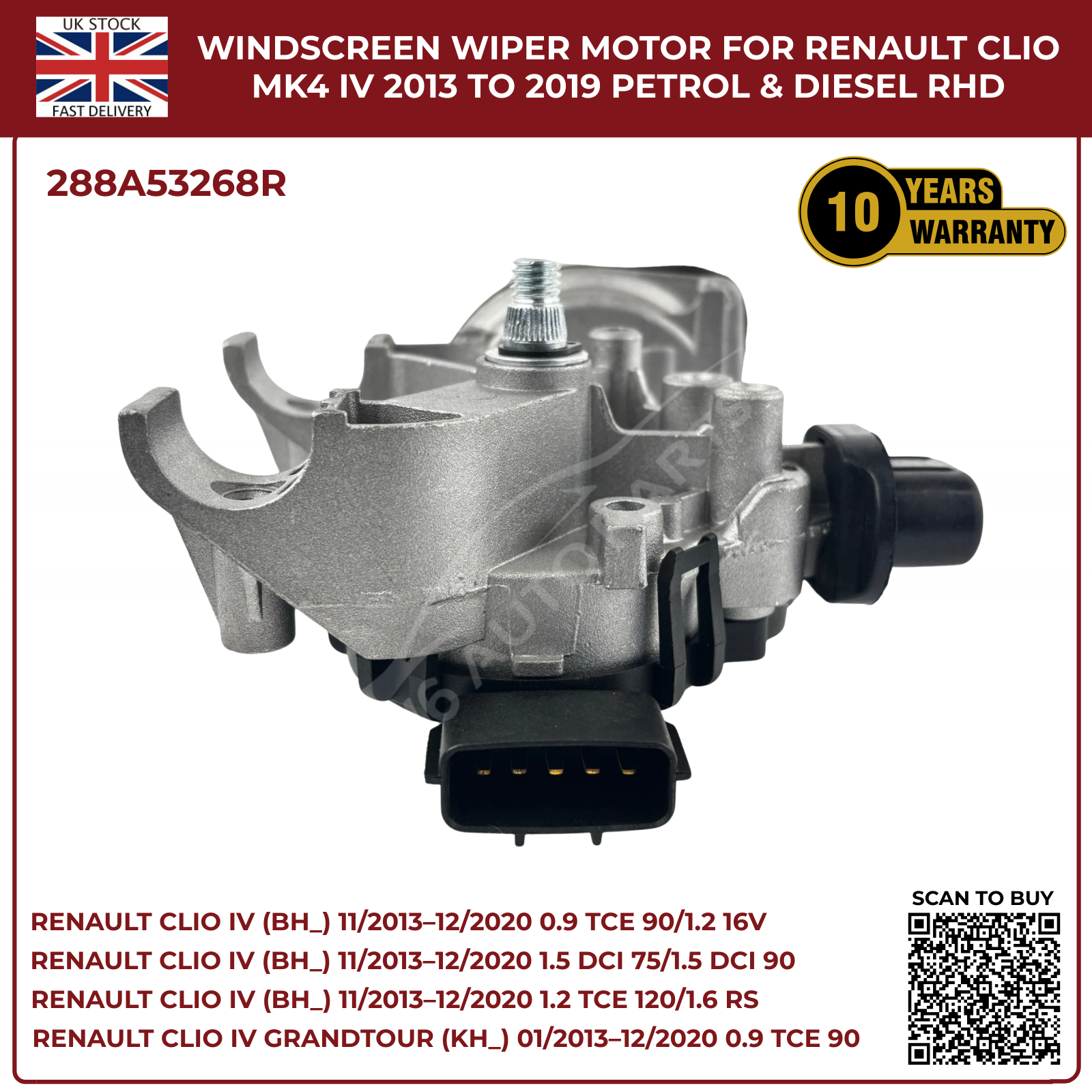 Upgrade your Renault Clio IV or Grandtour with a reliable replacement wiper motor. Designed to OEM specifications, this aftermarket unit (part number 288A53268R) delivers smooth, quiet performance and long‑lasting durability. Perfect fitment across multiple petrol and diesel variants ensures hassle‑free installation and dependable operation.