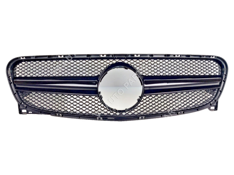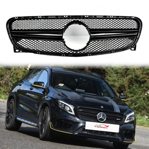Front Bumper Gloss Black Fin Grille – Fits Mercedes-Benz GLA-Class X156 (GLA180, GLA200, GLA45 AMG) 2013–2016
