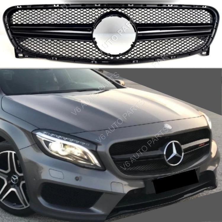 🔥 Front Bumper Gloss Black Fin Grille – Mercedes-Benz GLA-Class X156