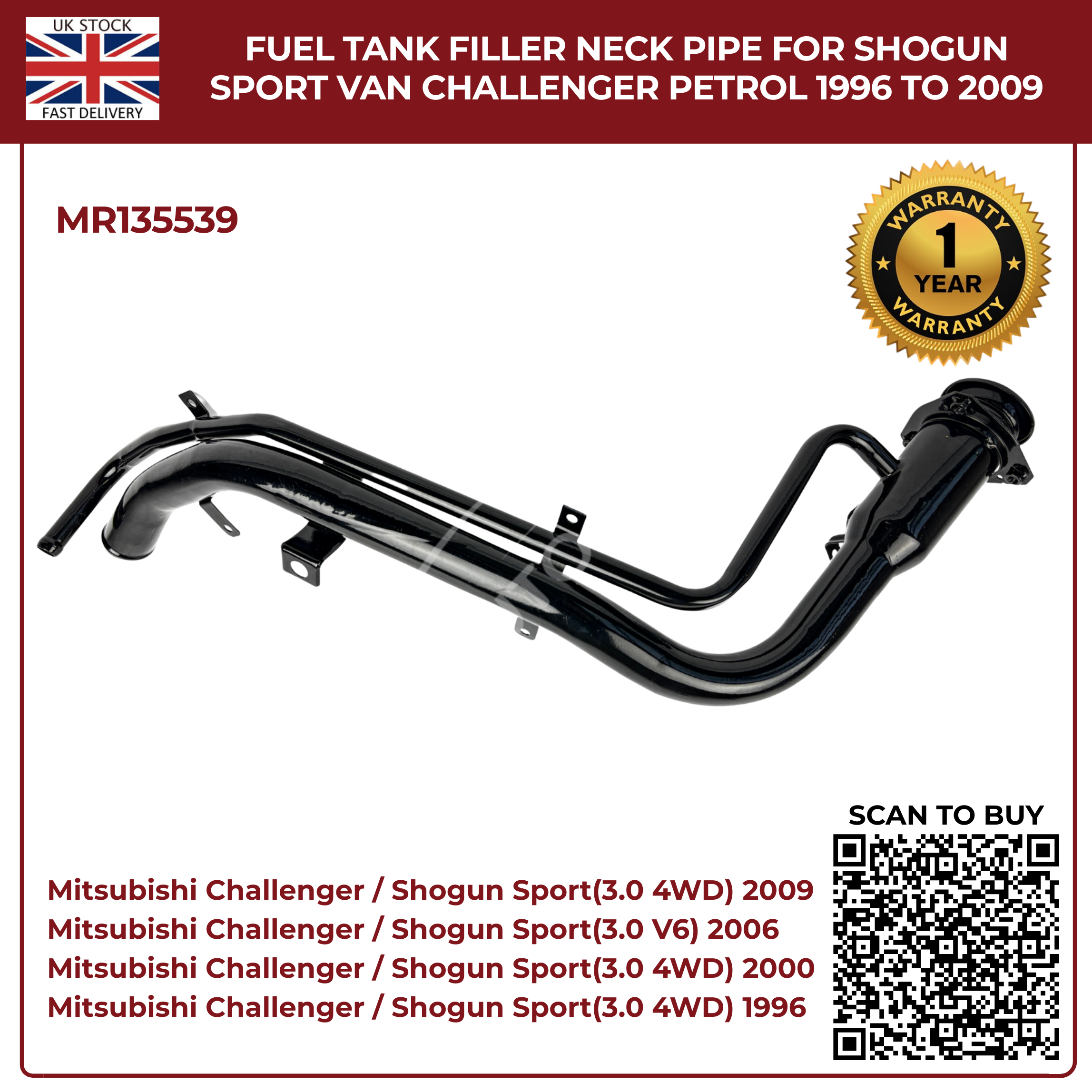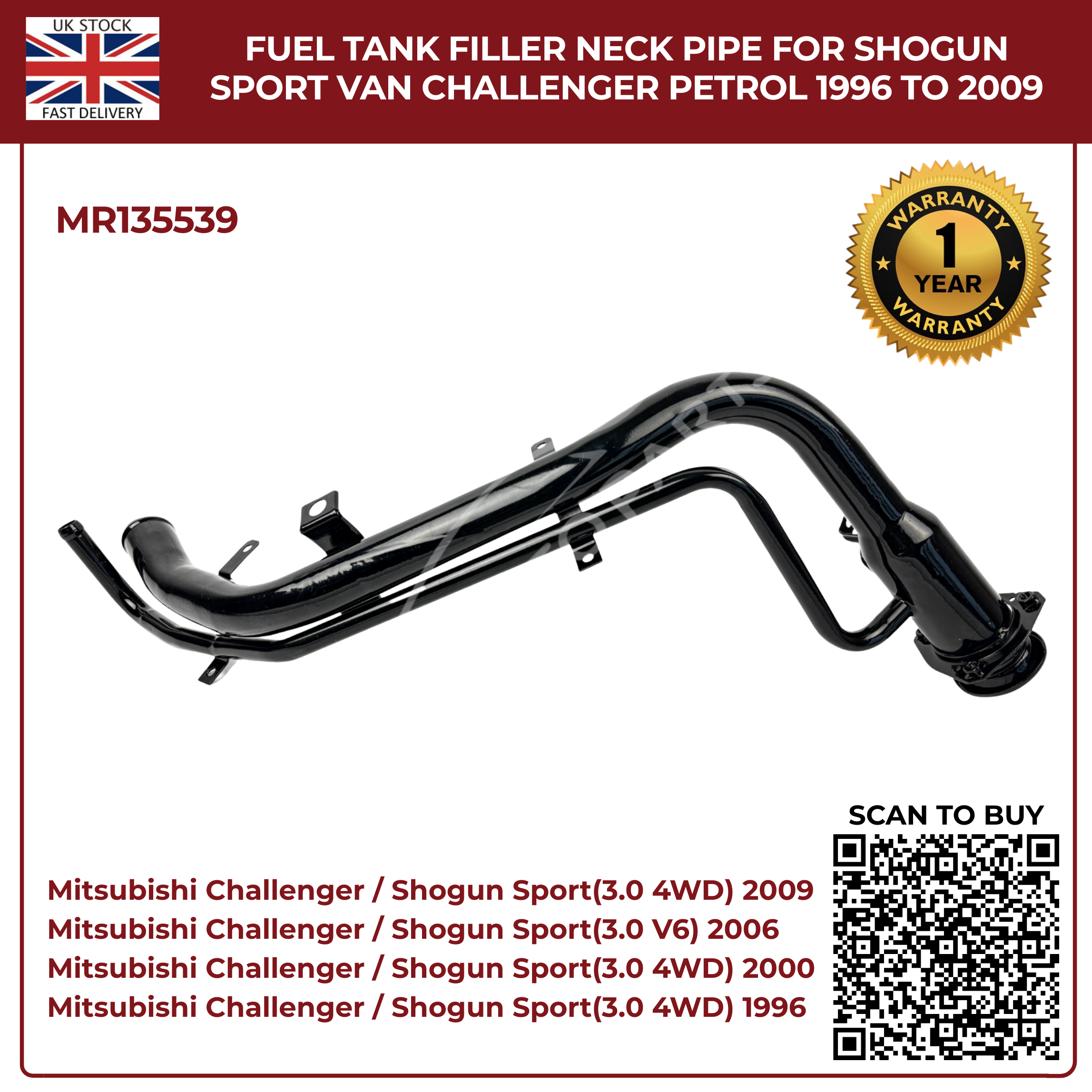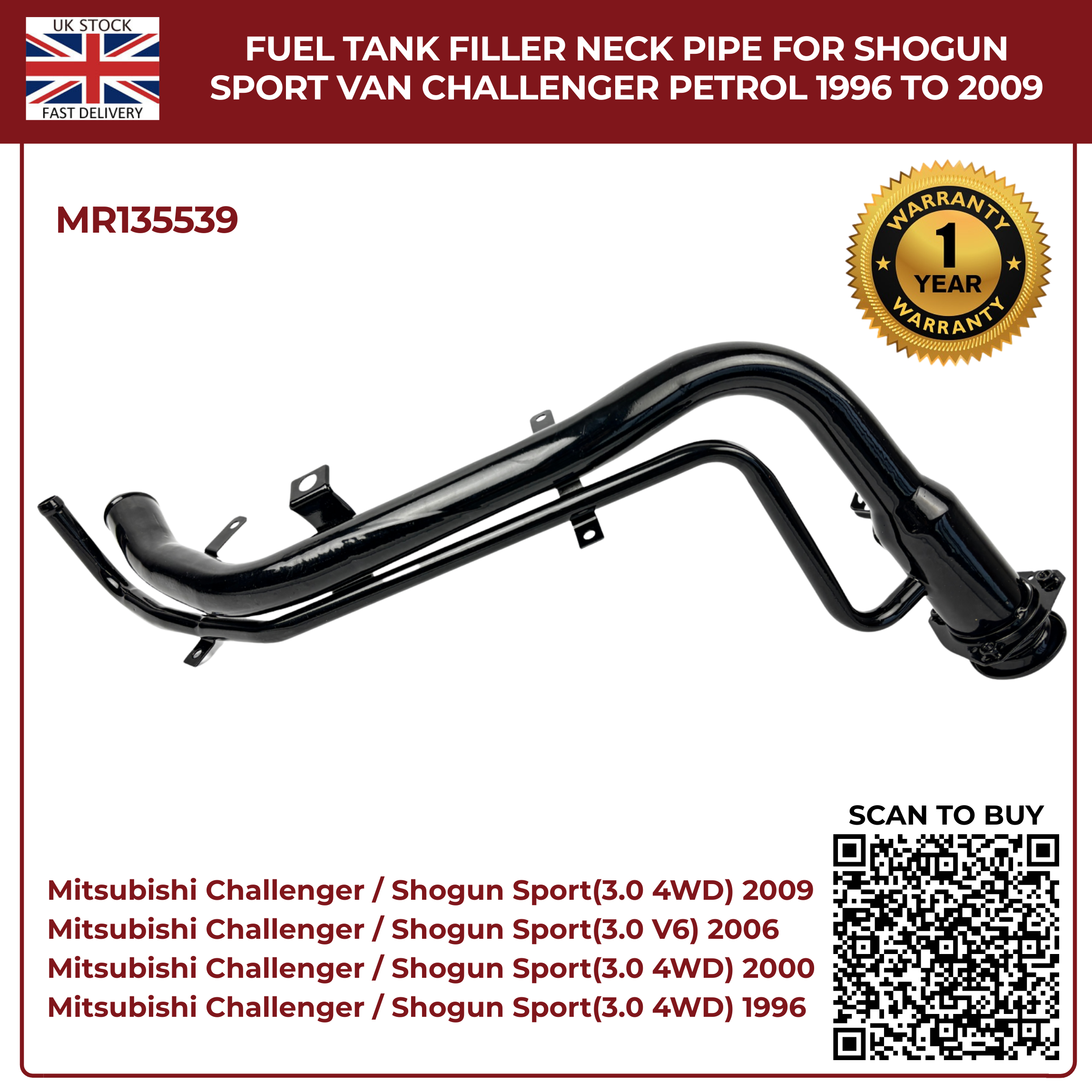 Fuel Tank Filler Neck Pipe – Mitsubishi Shogun Sport & Challenger Petrol (1996–2009) Part No. MR135539