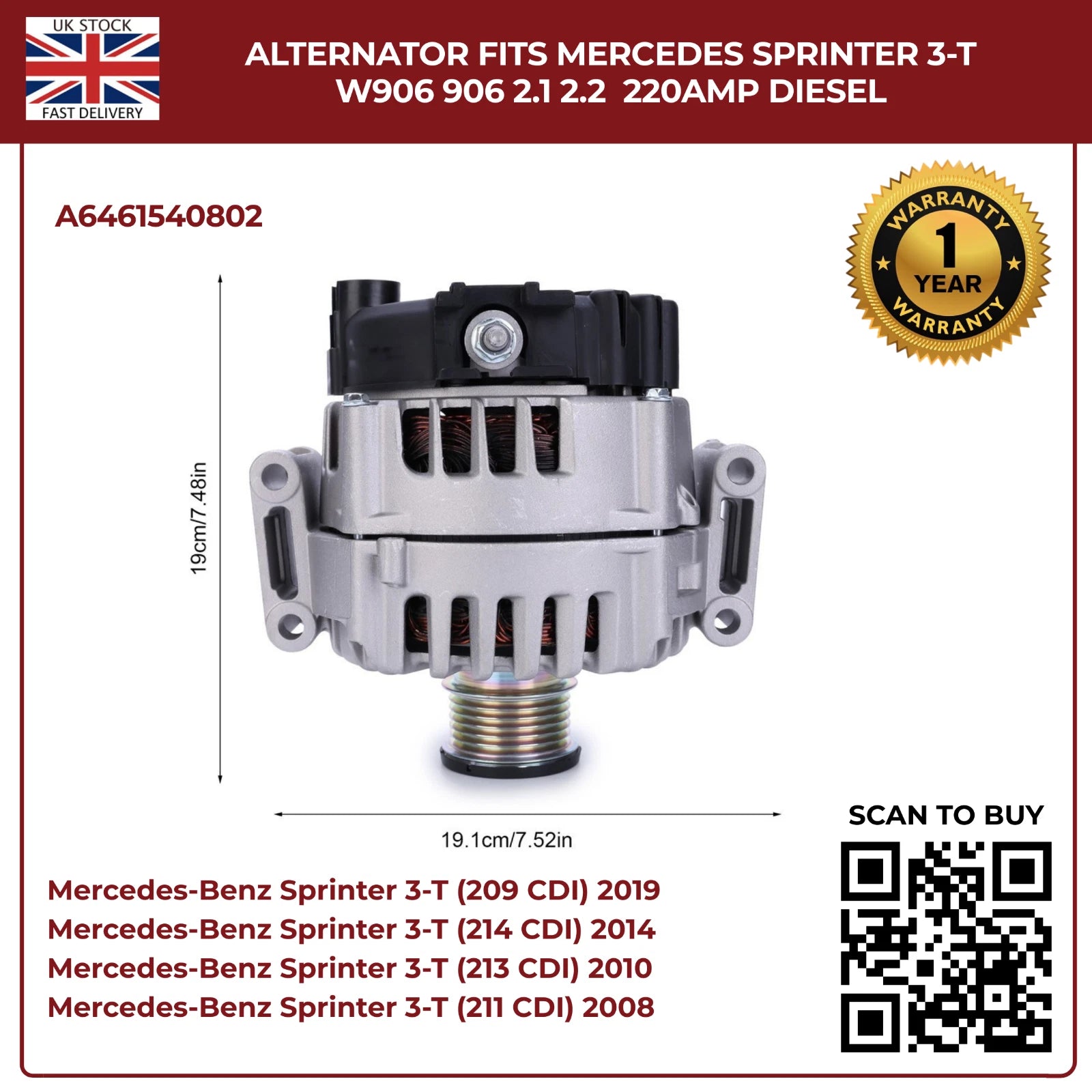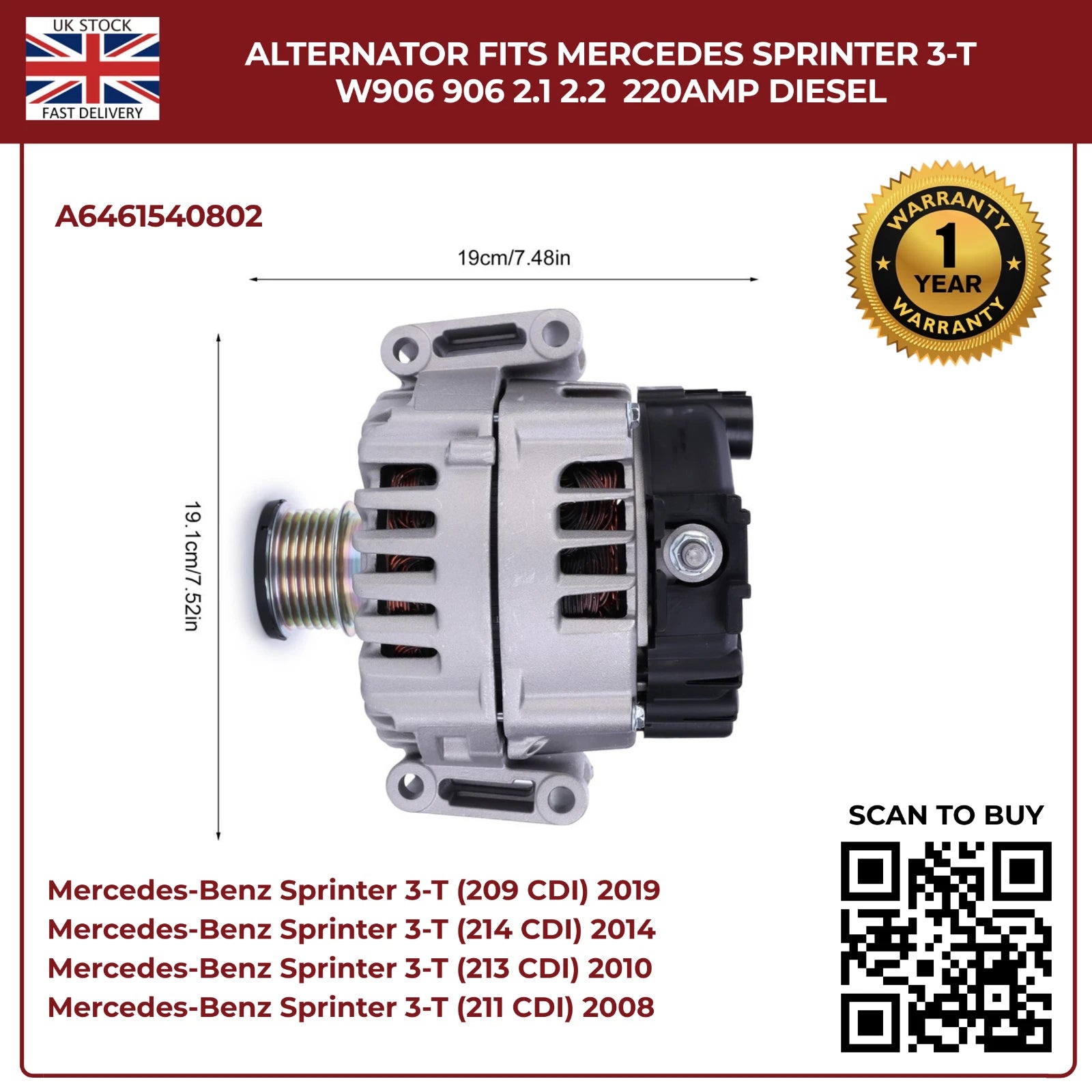 Your part will be shipped immediately after purchase. Avoid delays — grab this high-demand replacement alternator today!