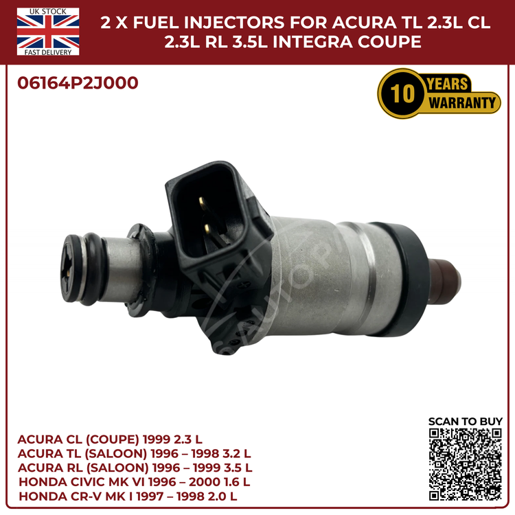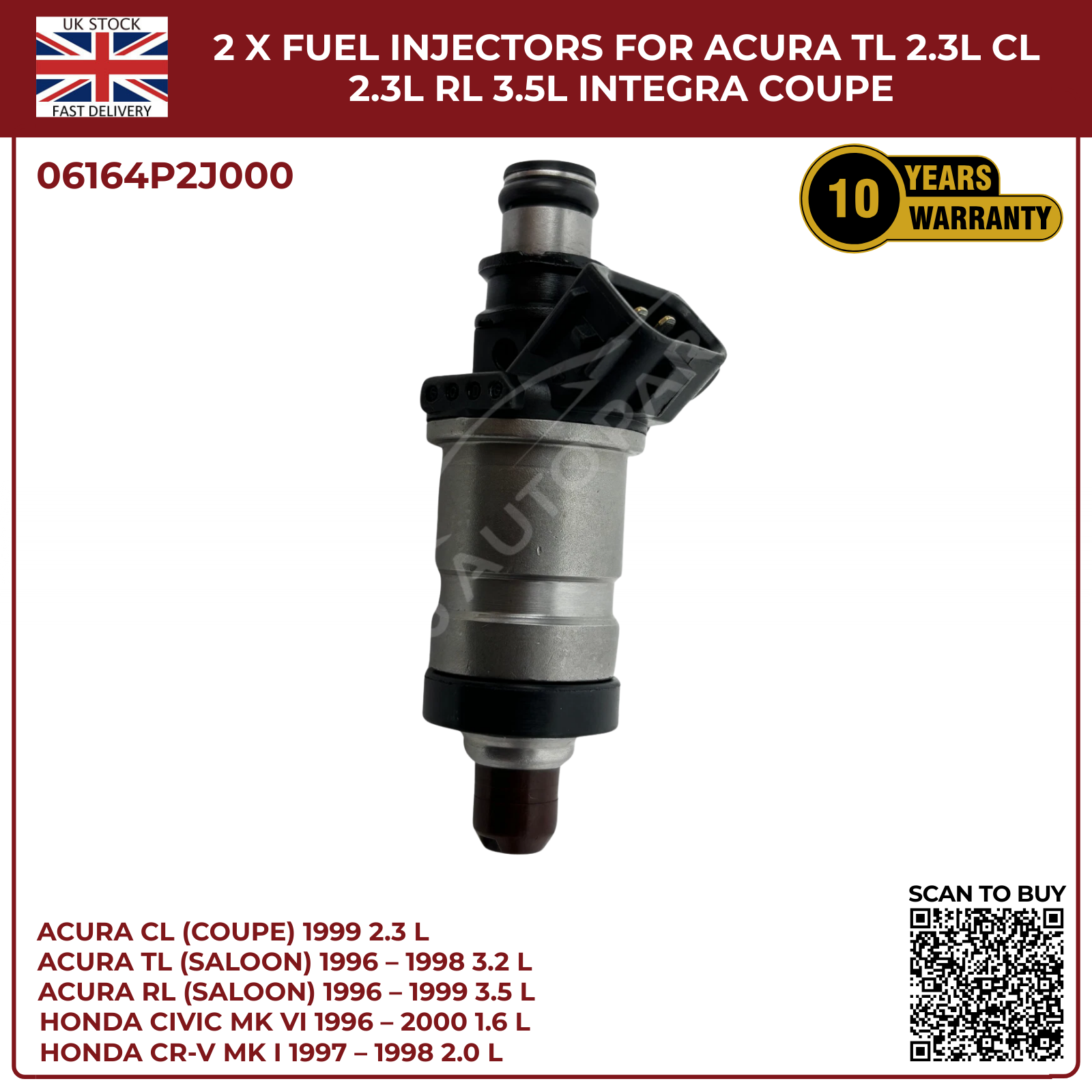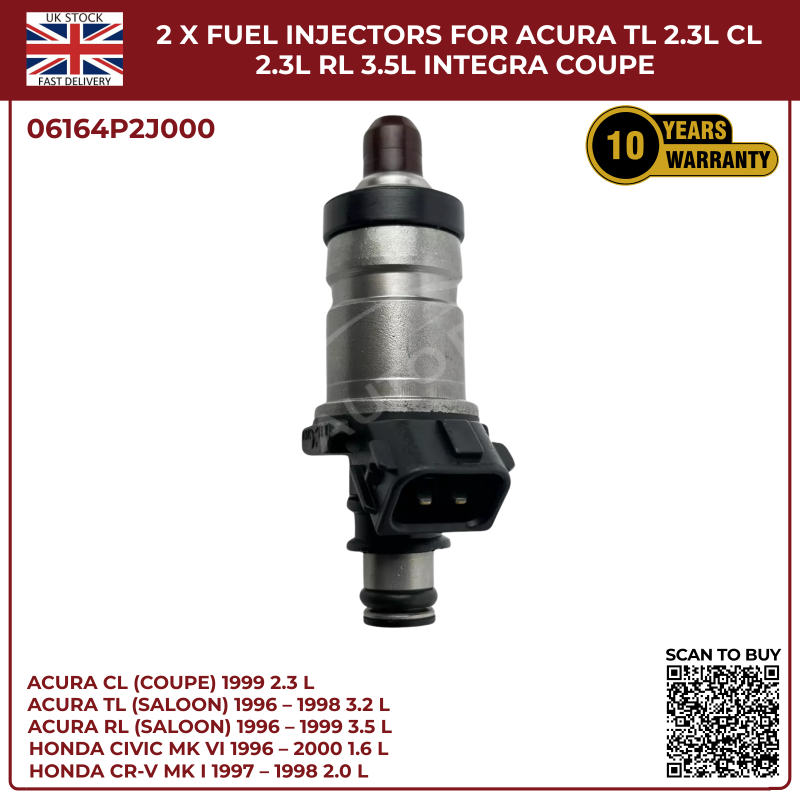 2PCS Fuel Injectors for Honda CR‑V MK1 2.0L Petrol (1997‑1998) | OEM 06164‑P2J‑000 Replacement