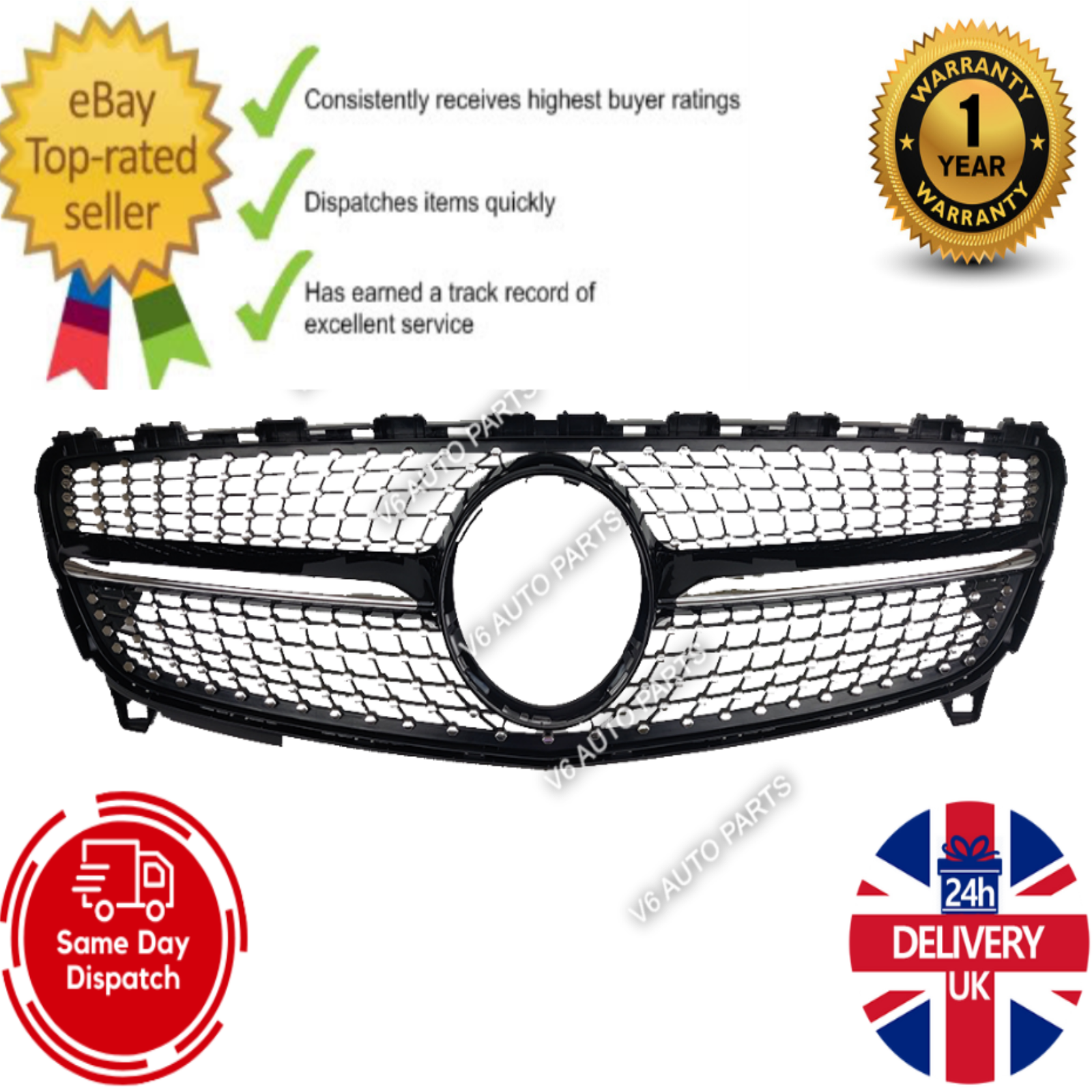 For Mercedes A-Class W176 A180 A220 A45AMG Replacement Front Radiator Diamond Grille 2015-18