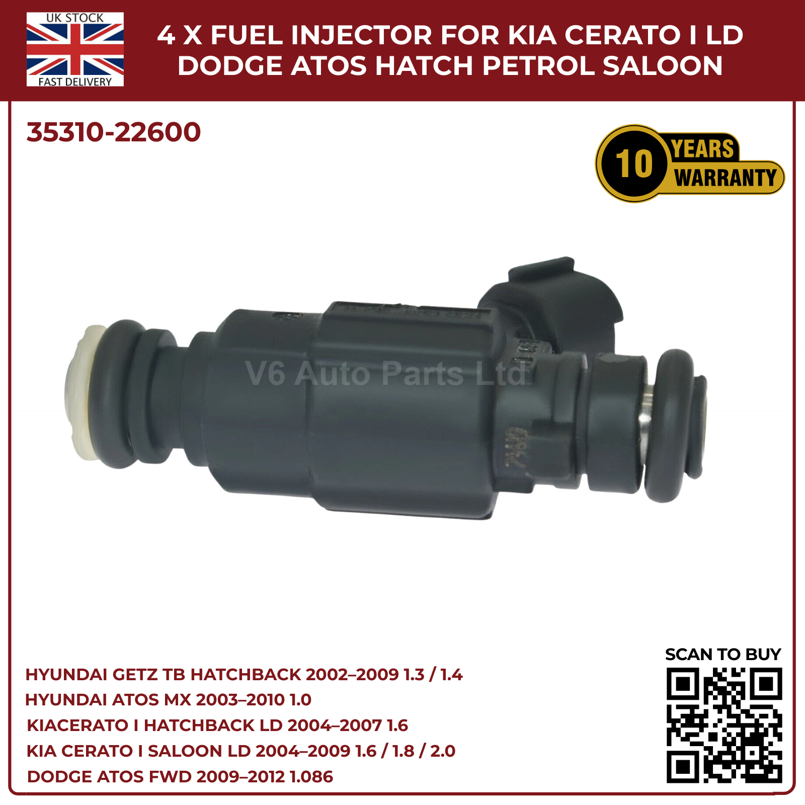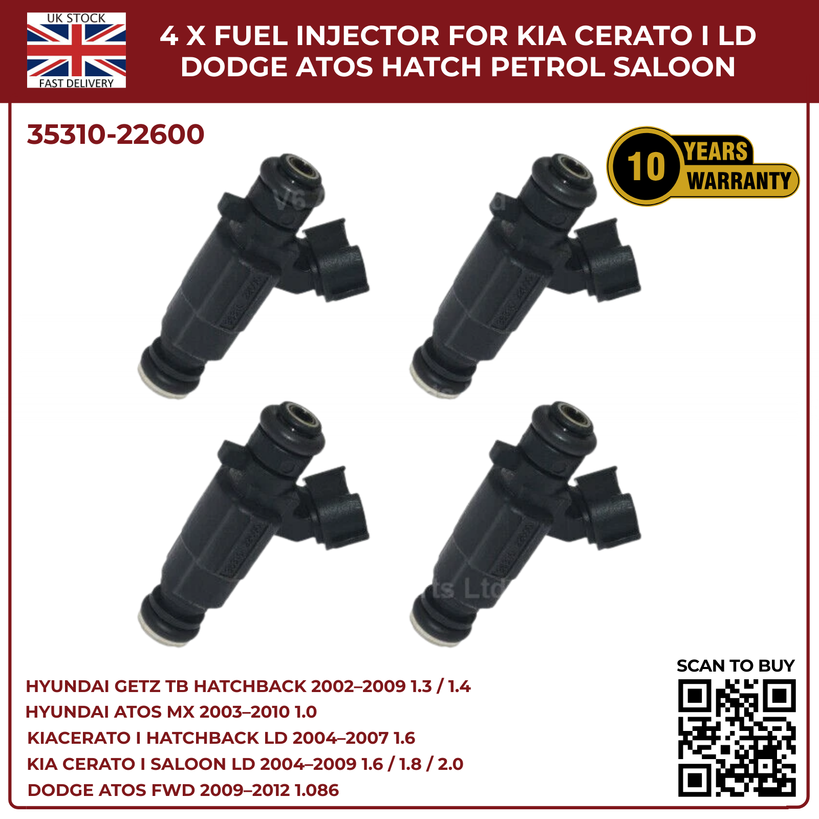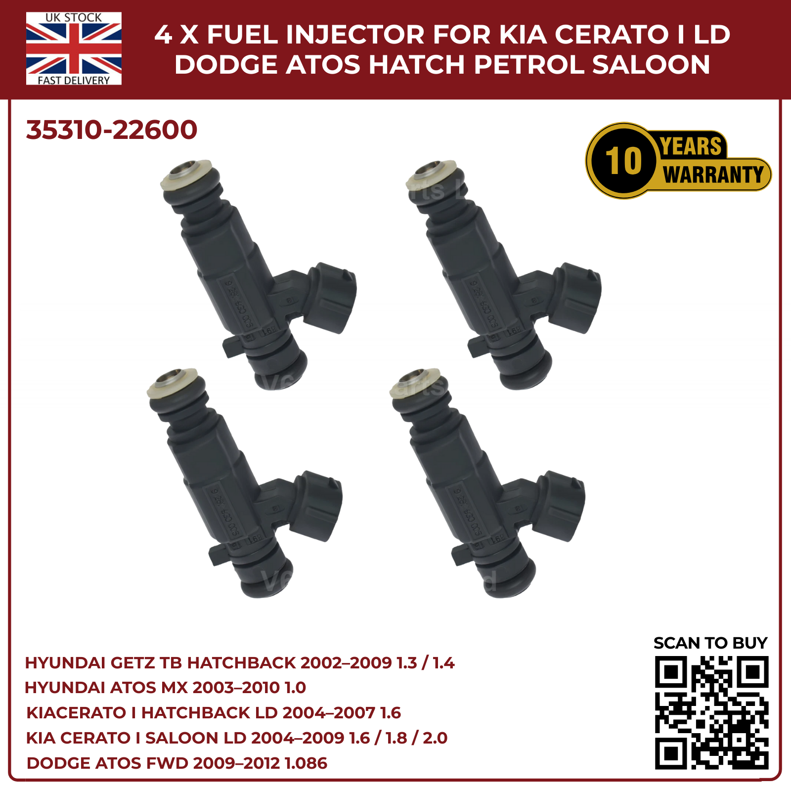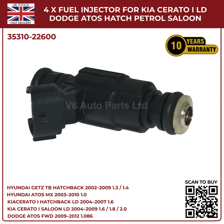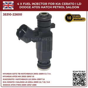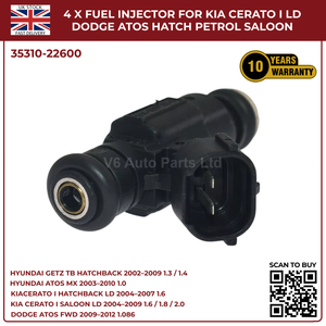 4x Fuel Injectors for Hyundai Getz TB (2002‑2009) & Hyundai Coupe GK 2.0 Petrol – 2‑Pin