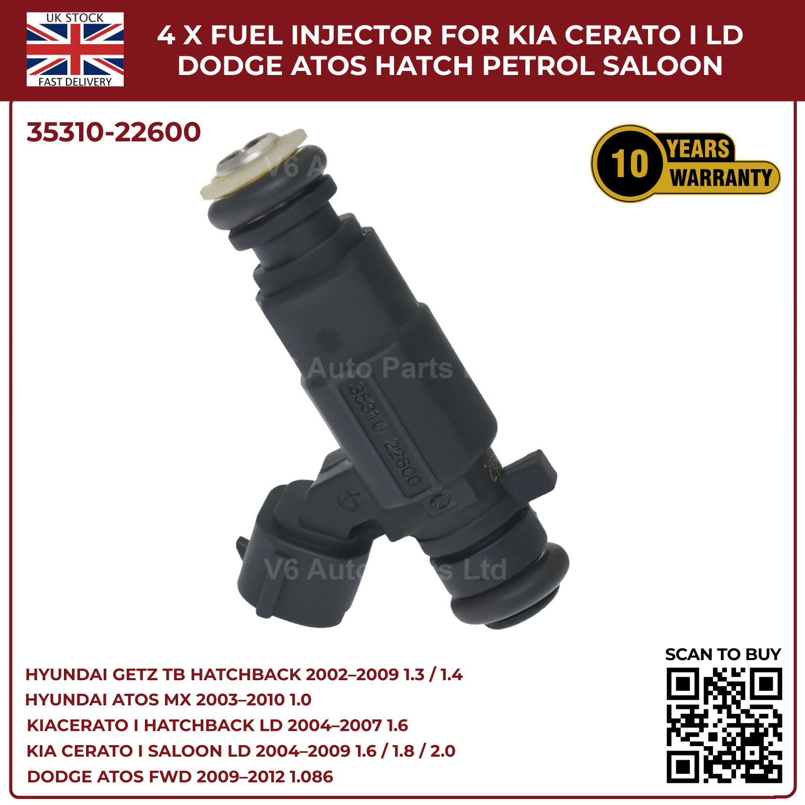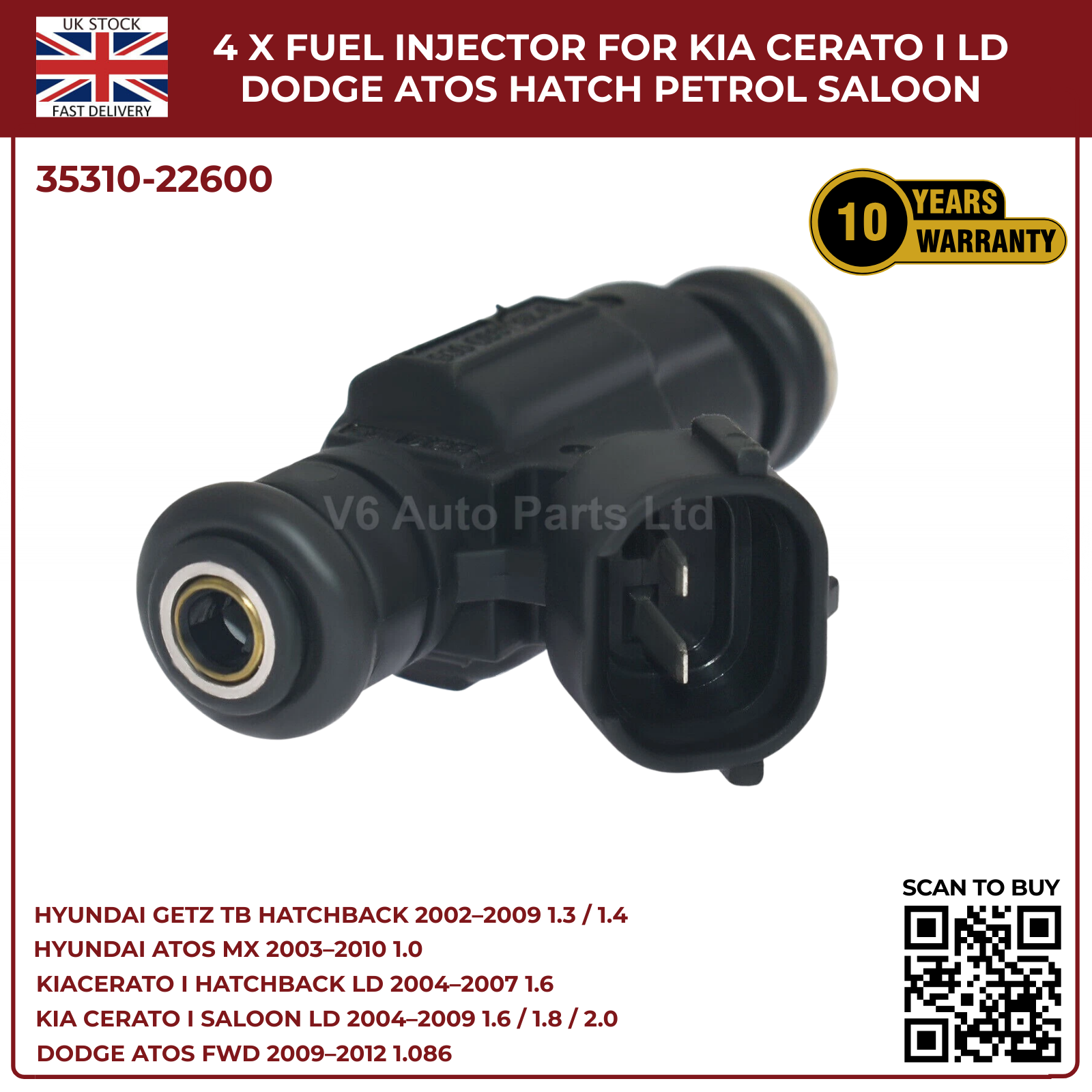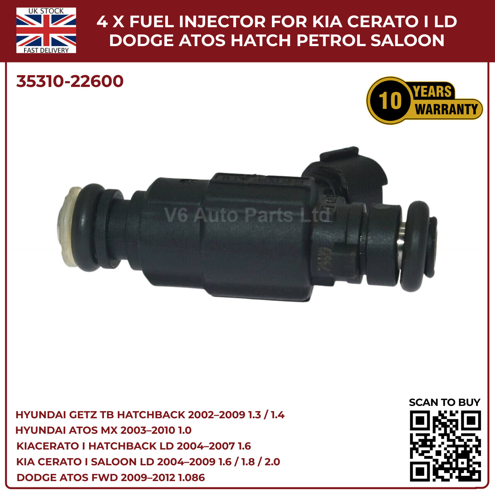 4x Fuel Injectors for Hyundai Getz TB (2002‑2009) & Hyundai Coupe GK 2.0 Petrol – 2‑Pin