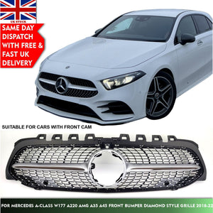 For Mercedes A-Class W177 A45 AMG A220 Replacement Front Bumper Diamond Grille A160 2018-22