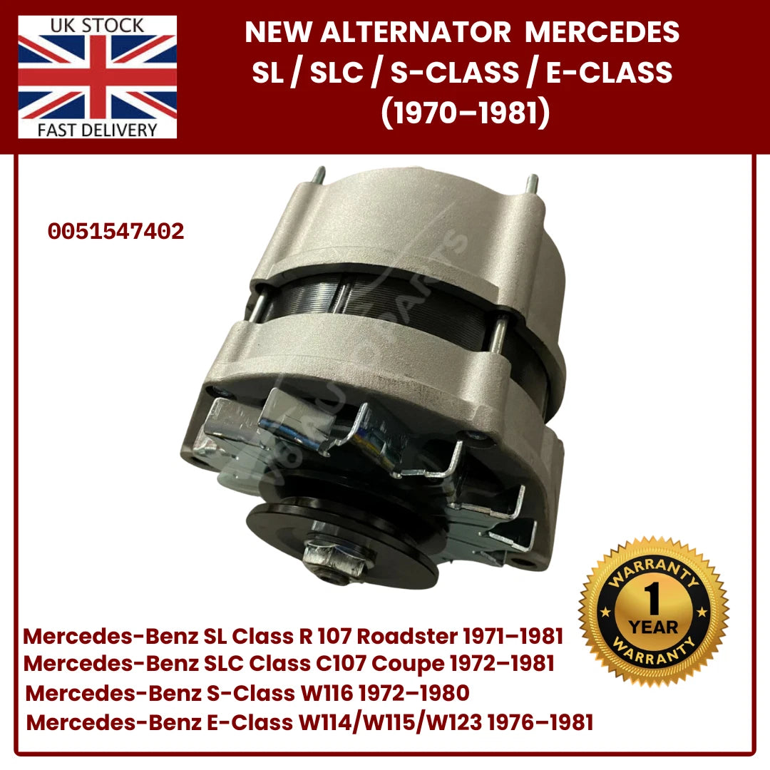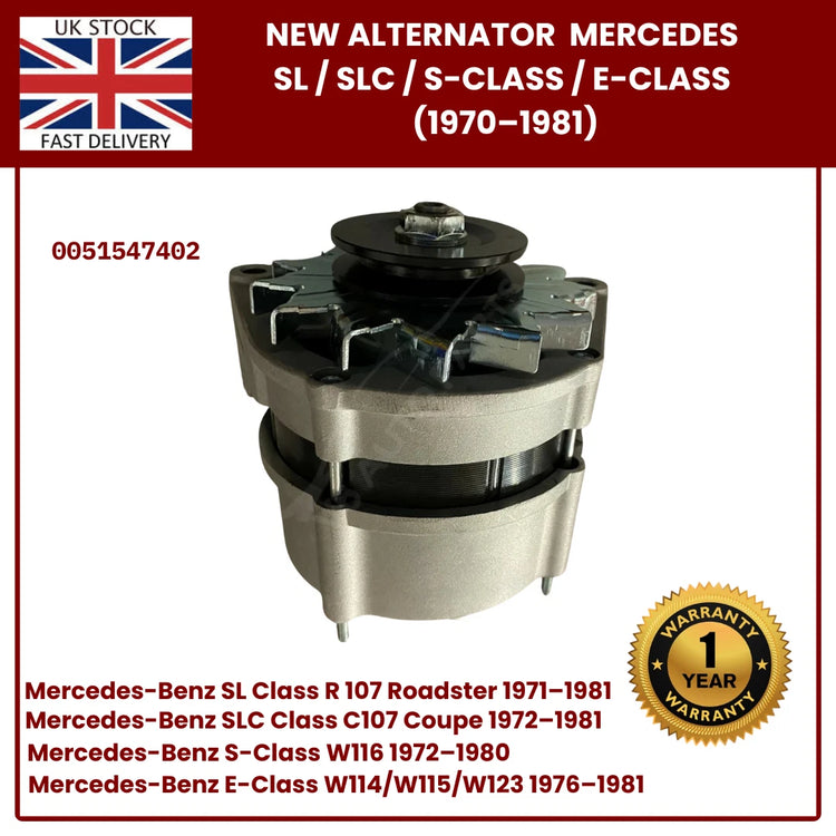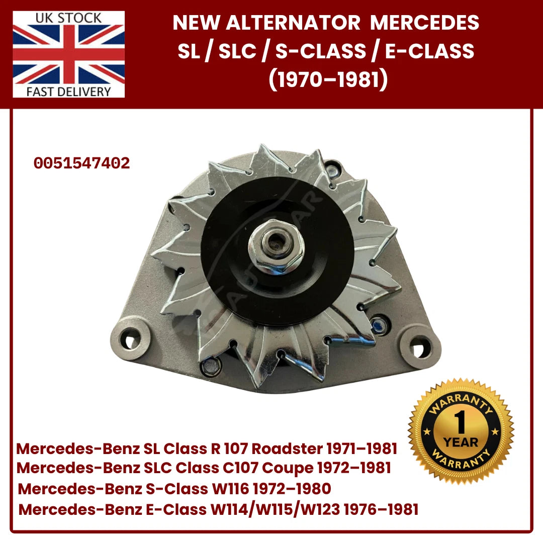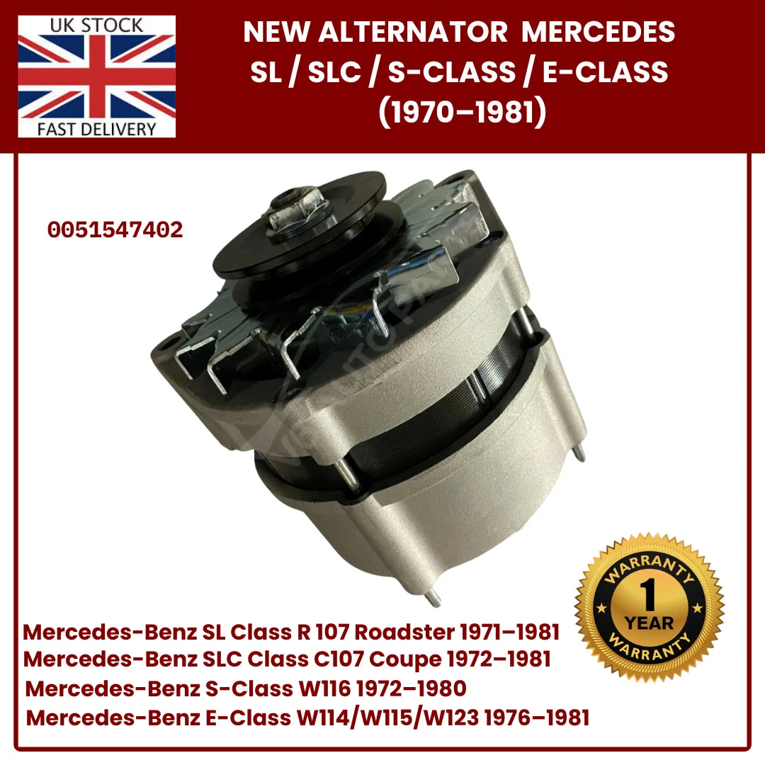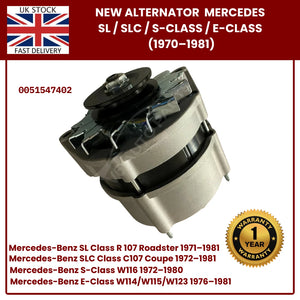 Brand New Alternator for Classic Mercedes-Benz SL R107, SLC, S-Class W116, Early E-Class W123 – OEM 0051547402
