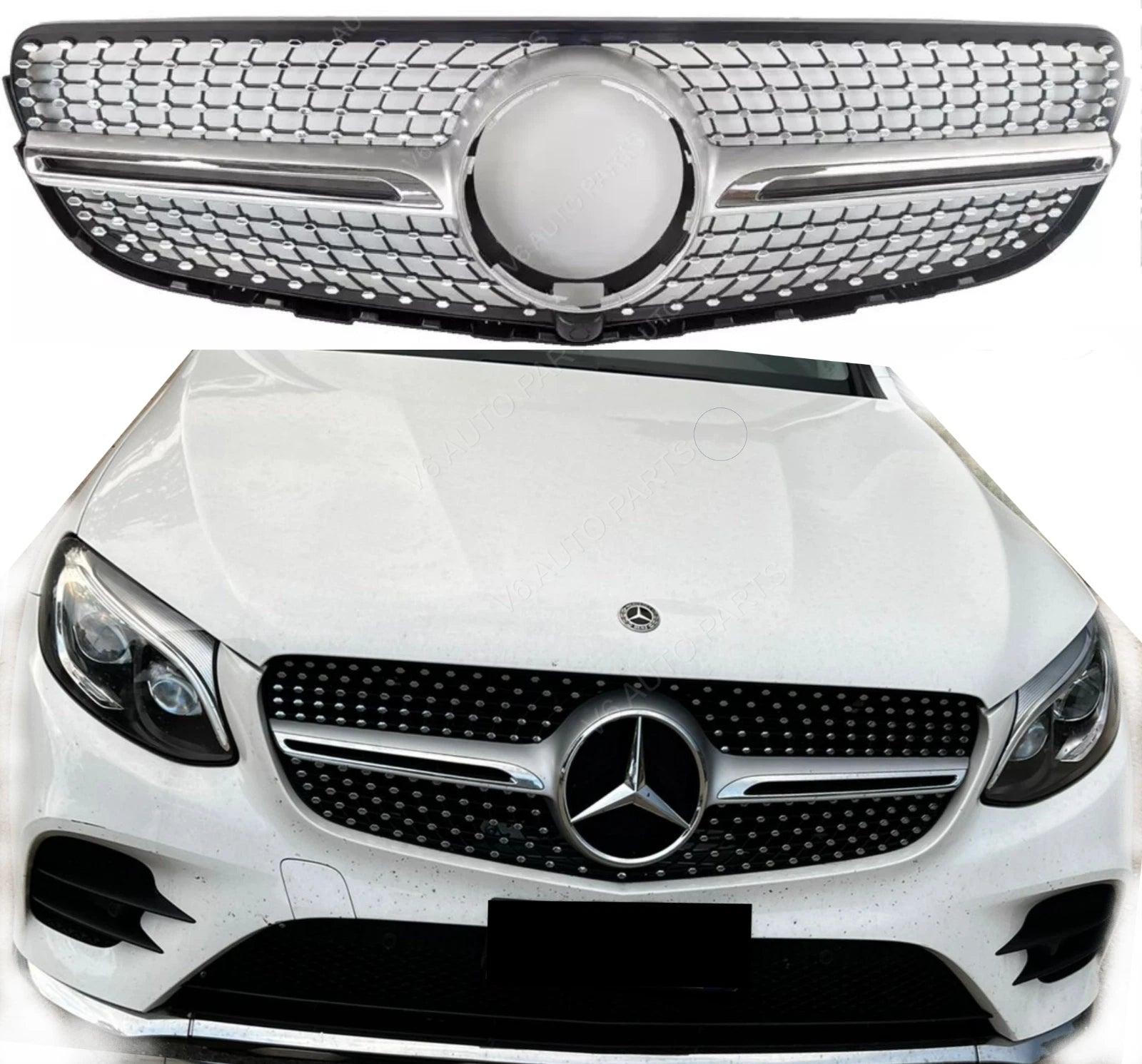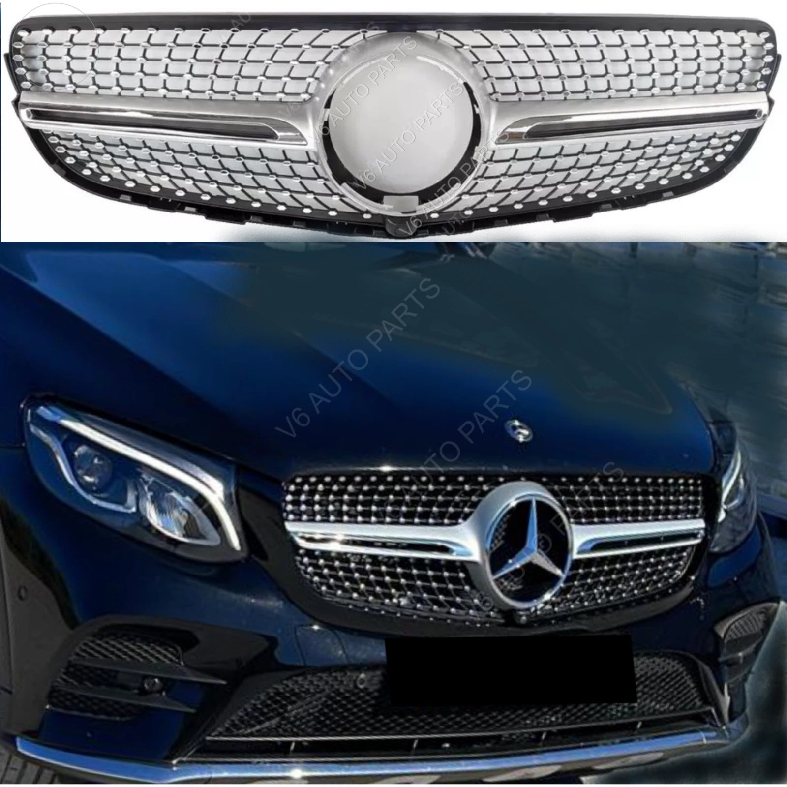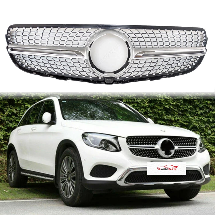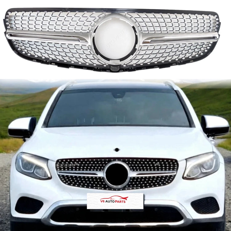 For Mercedes-Benz GLC-Class W253 (2015–2019) Diamond Chrome Front Radiator Grille – Fits GLC300 / 200d