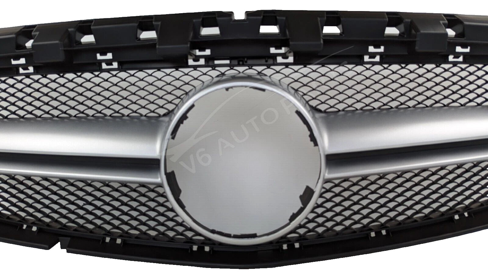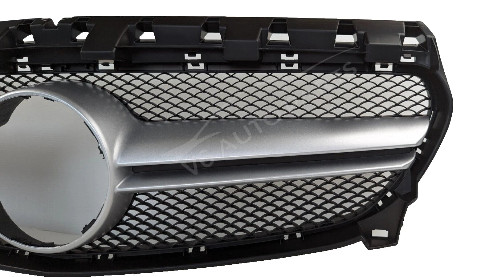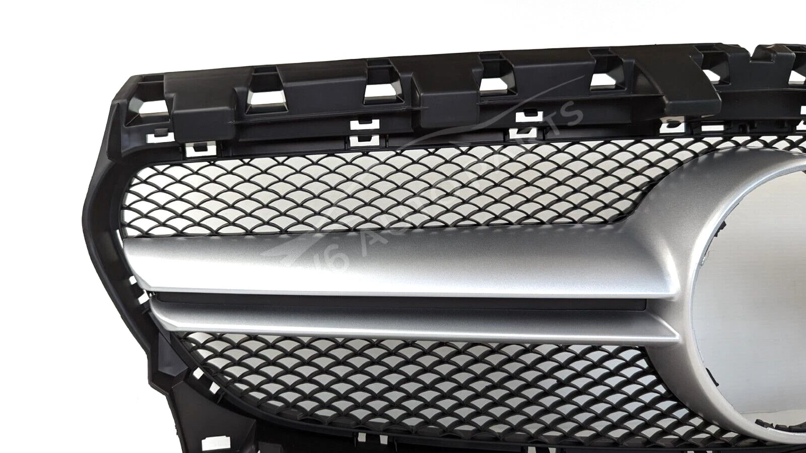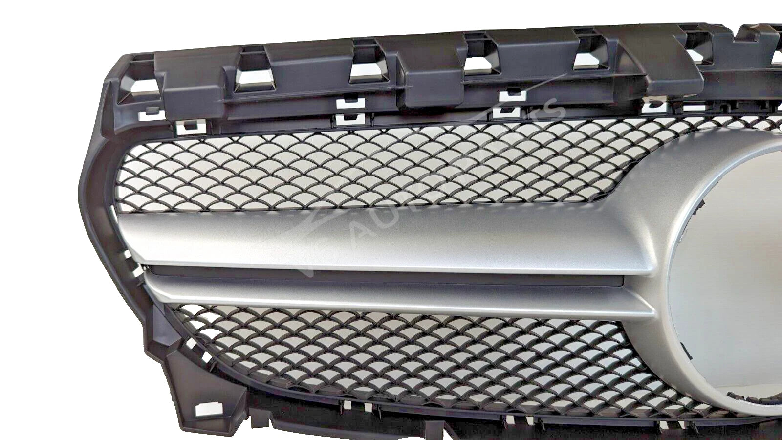Transform your CLA-Class with this CLA45 AMG Style Honeycomb Chrome Fin Grille – a premium aftermarket replacement designed for a perfect fit and aggressive AMG styling.