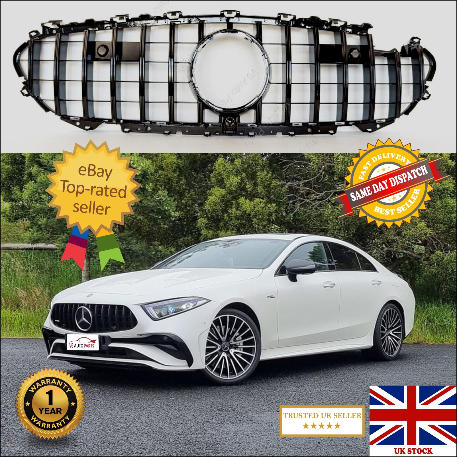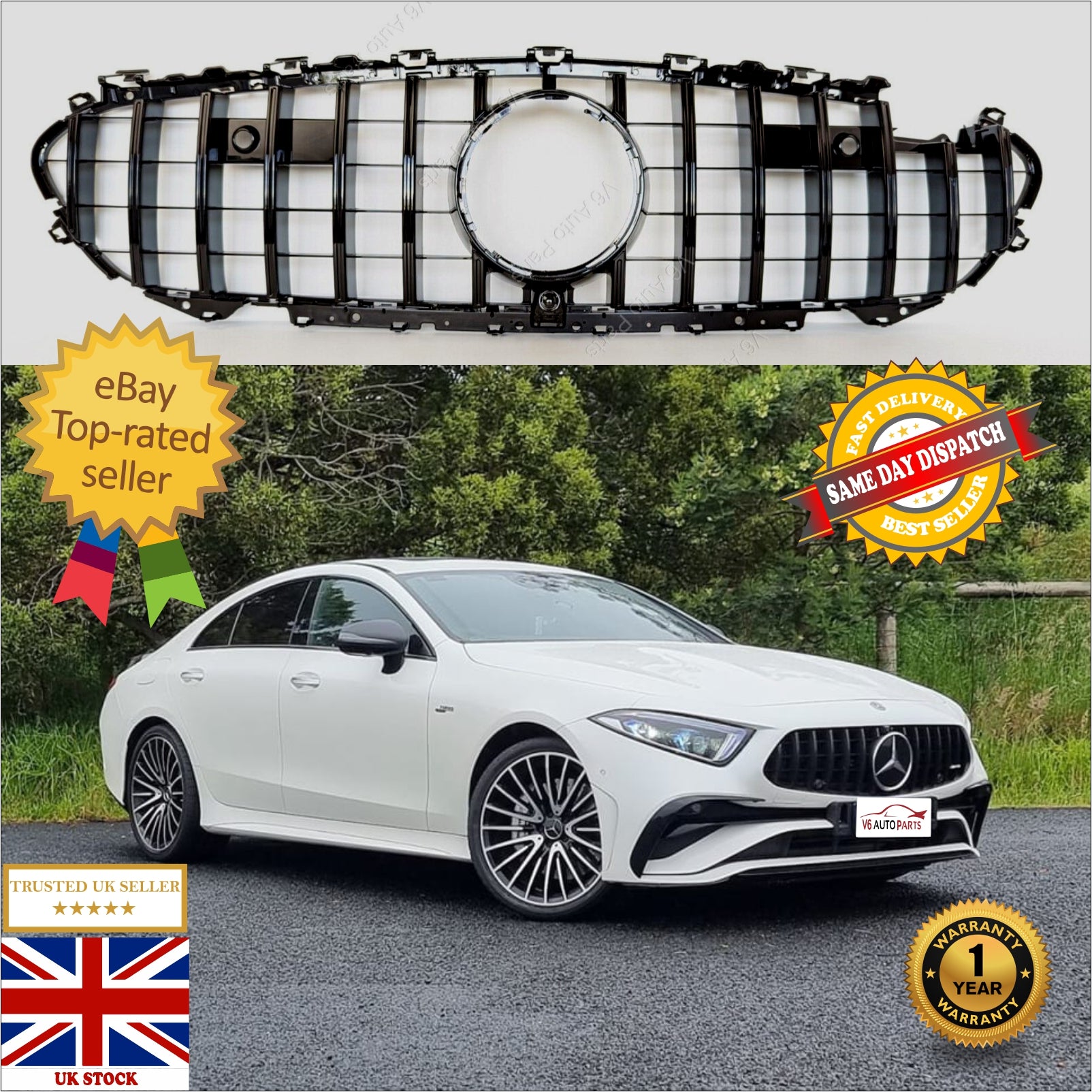 For Mercedes CLS-Class C257 350 Compatible Front Radiator GT Gloss Black Grille 2018-20 AMG