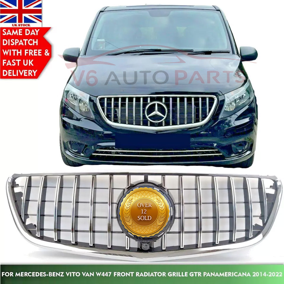 For Mercedes Van W447 124 CDI Chrome Grill Front Radiator GT Grille 2014-22 Vito