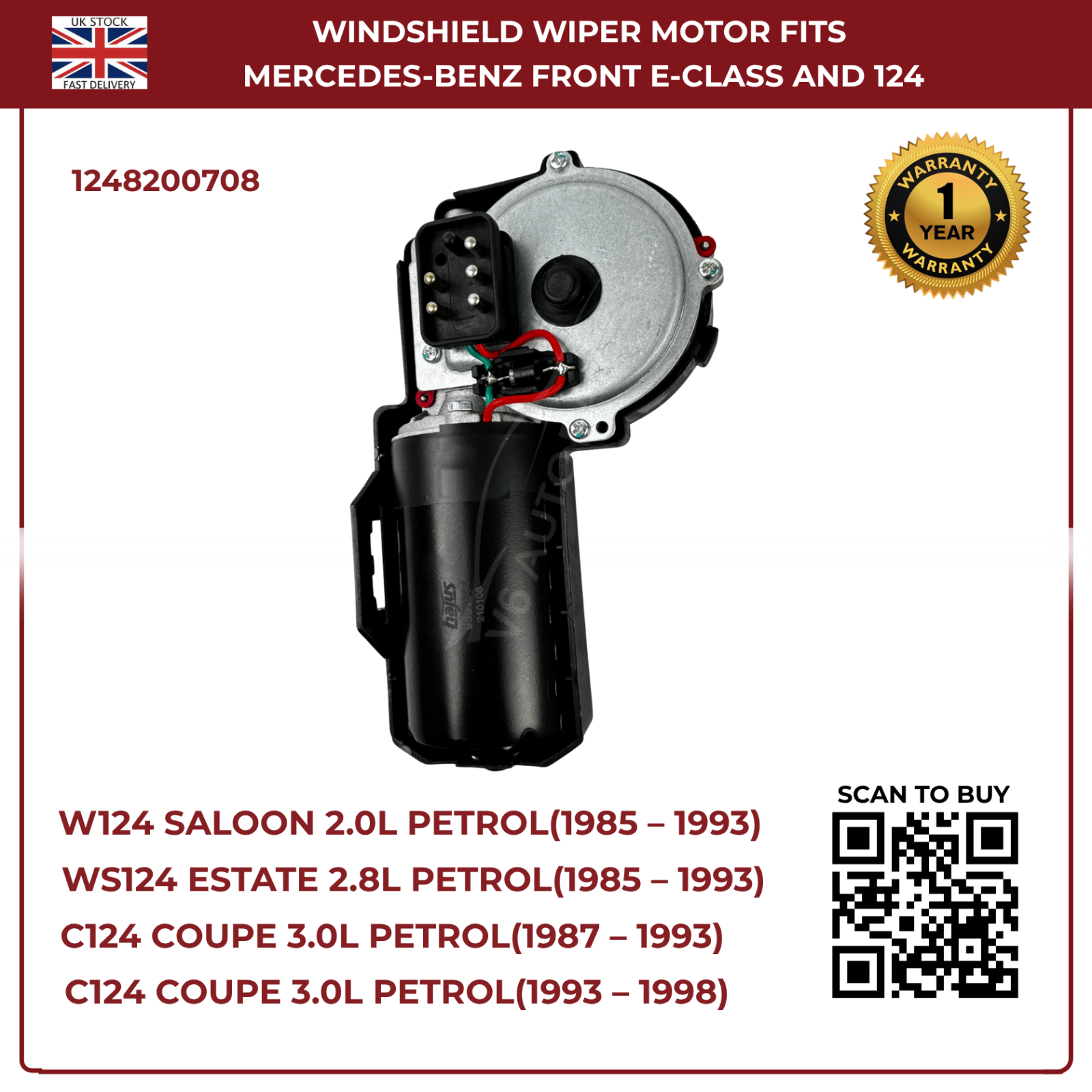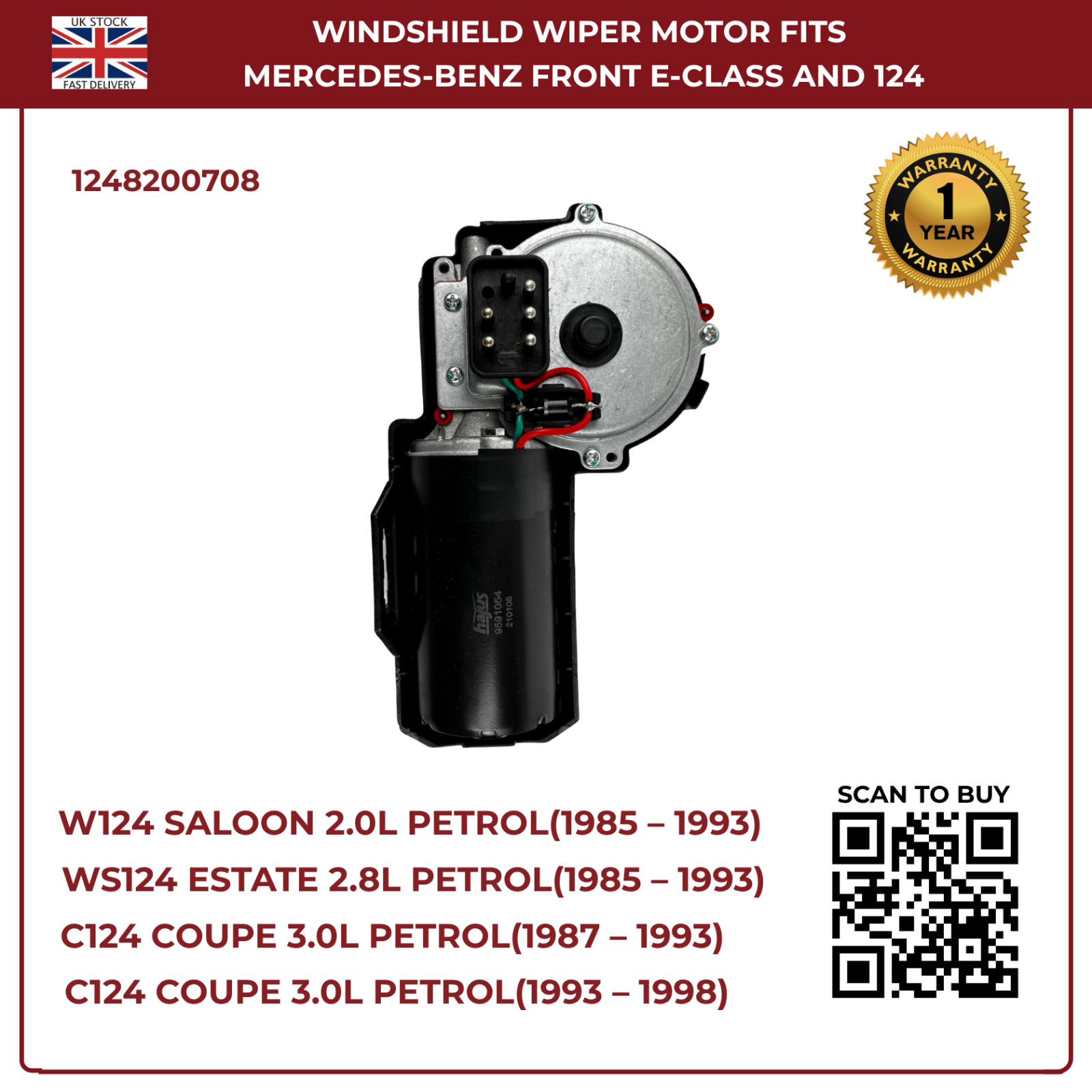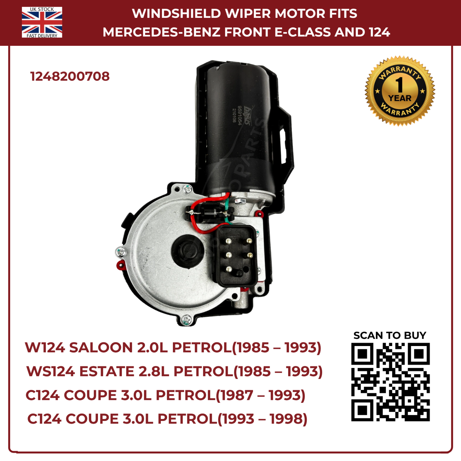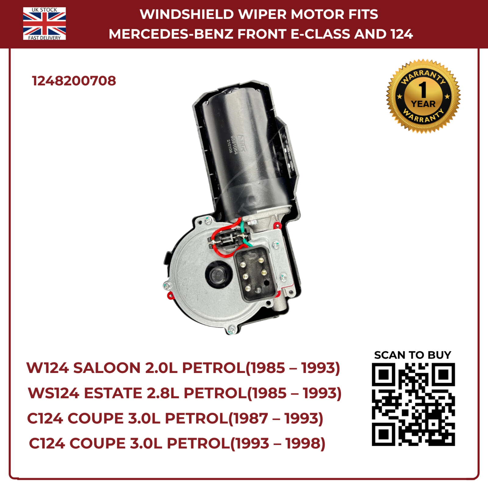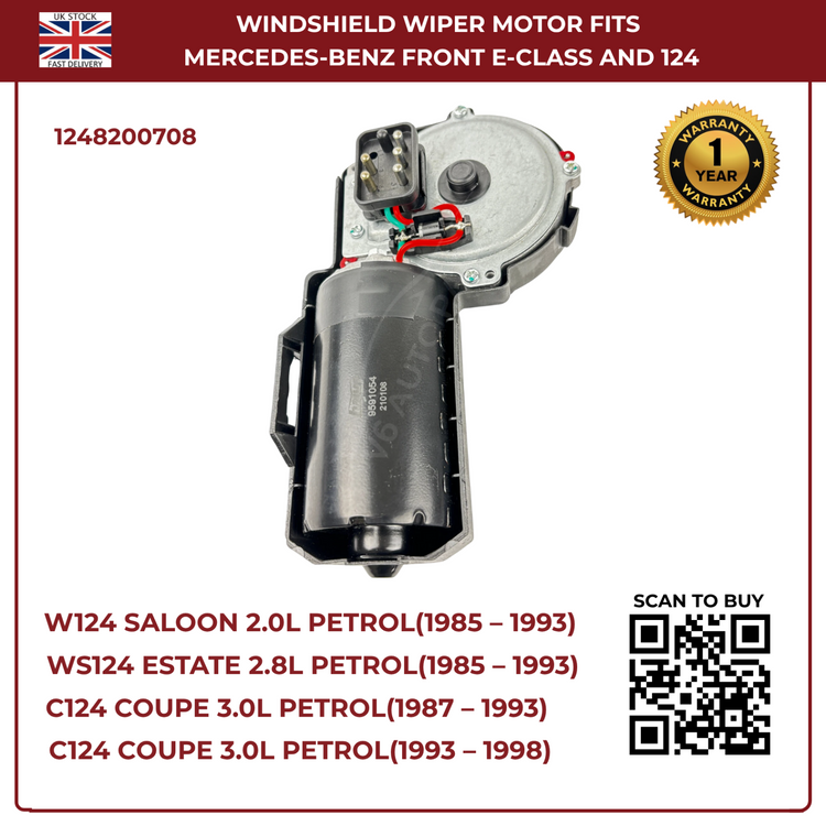 Ensure clear visibility in all weather with this high-performance front windscreen wiper motor, designed specifically for Mercedes-Benz W124 series (1985–1993) and E-Class W124 (1993–1998). Built to OEM specifications, it delivers smooth, reliable wiping action and long-lasting durability for both petrol and diesel variants.
