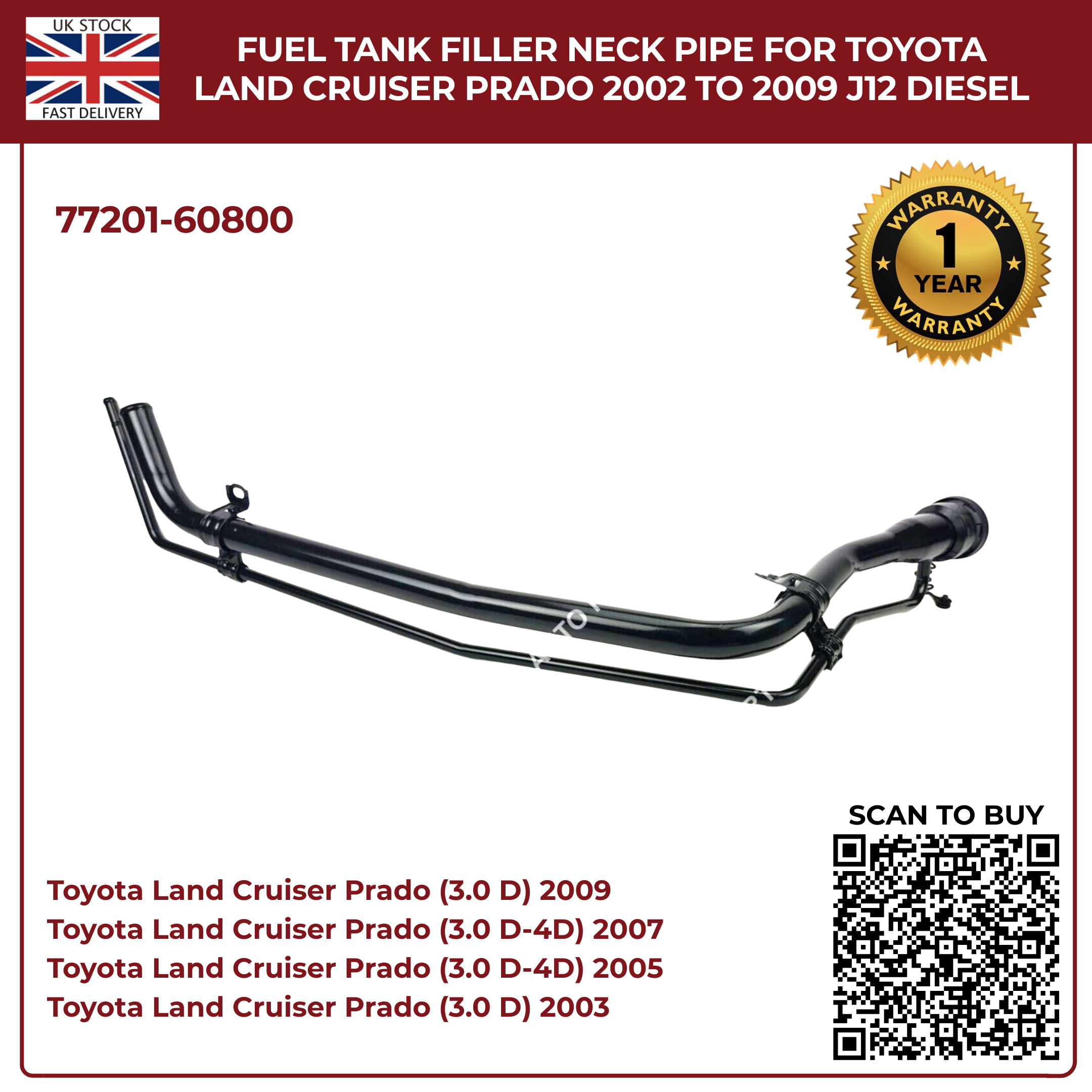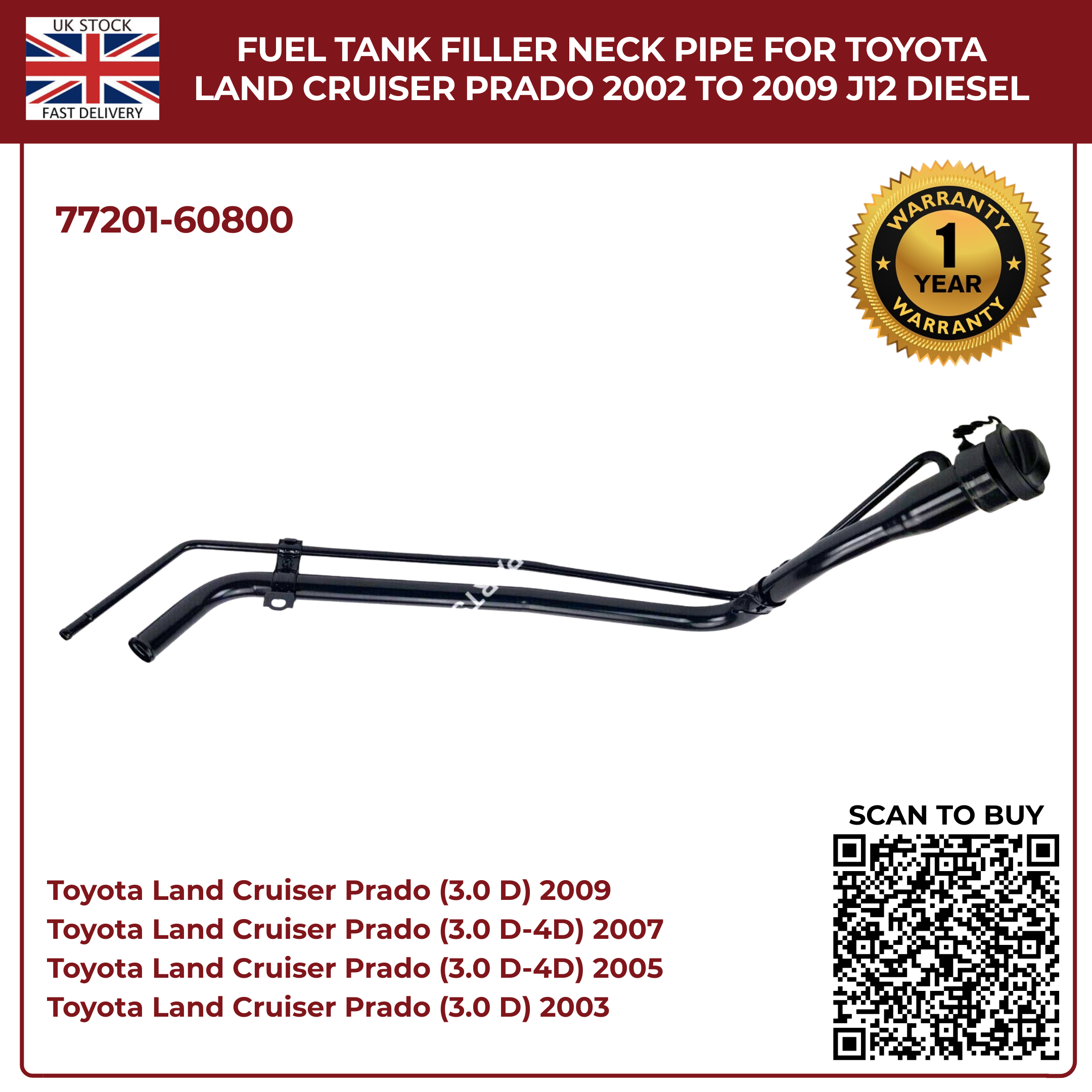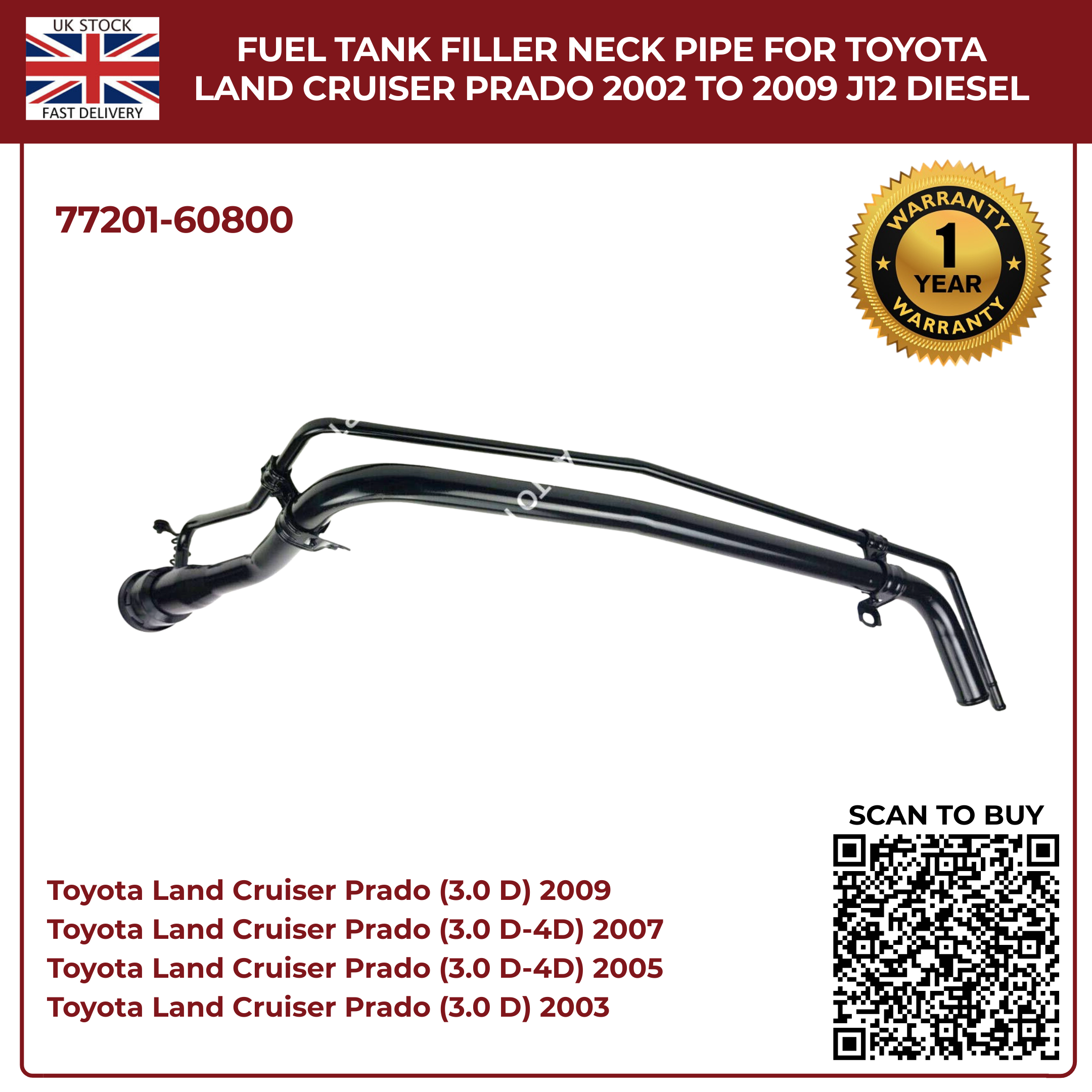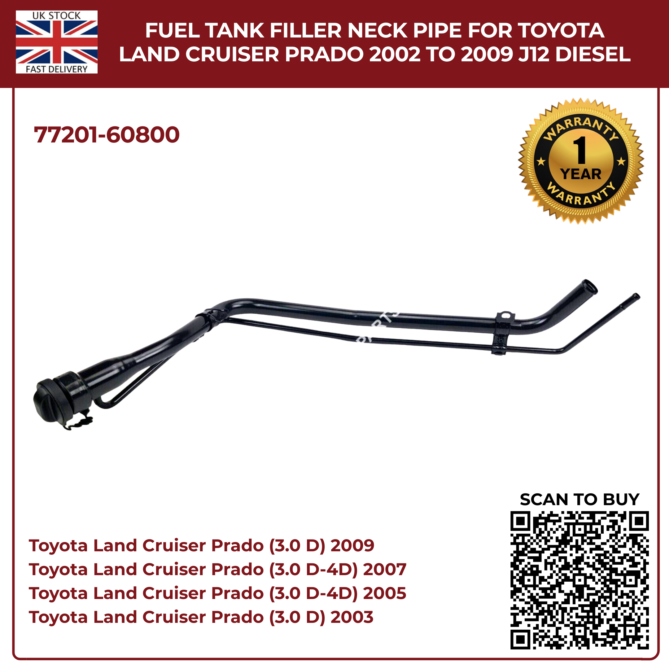 Fuel Tank Filler Neck Pipe – Toyota Land Cruiser Prado J120 3.0 D-4D Diesel (2002–2009) Part No. 77201-60800