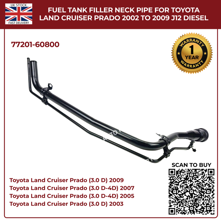 Keep your Prado’s fuel system performing at its best with this high-quality replacement fuel filler neck pipe, engineered to OEM specifications for 3.0L D-4D diesel models. Designed for Land Cruiser Prado J120 (2002–2009), it delivers a perfect fit, leak-free operation, and long-lasting durability.