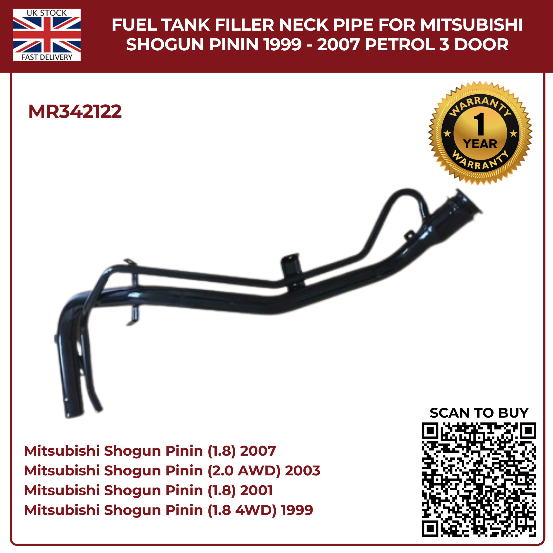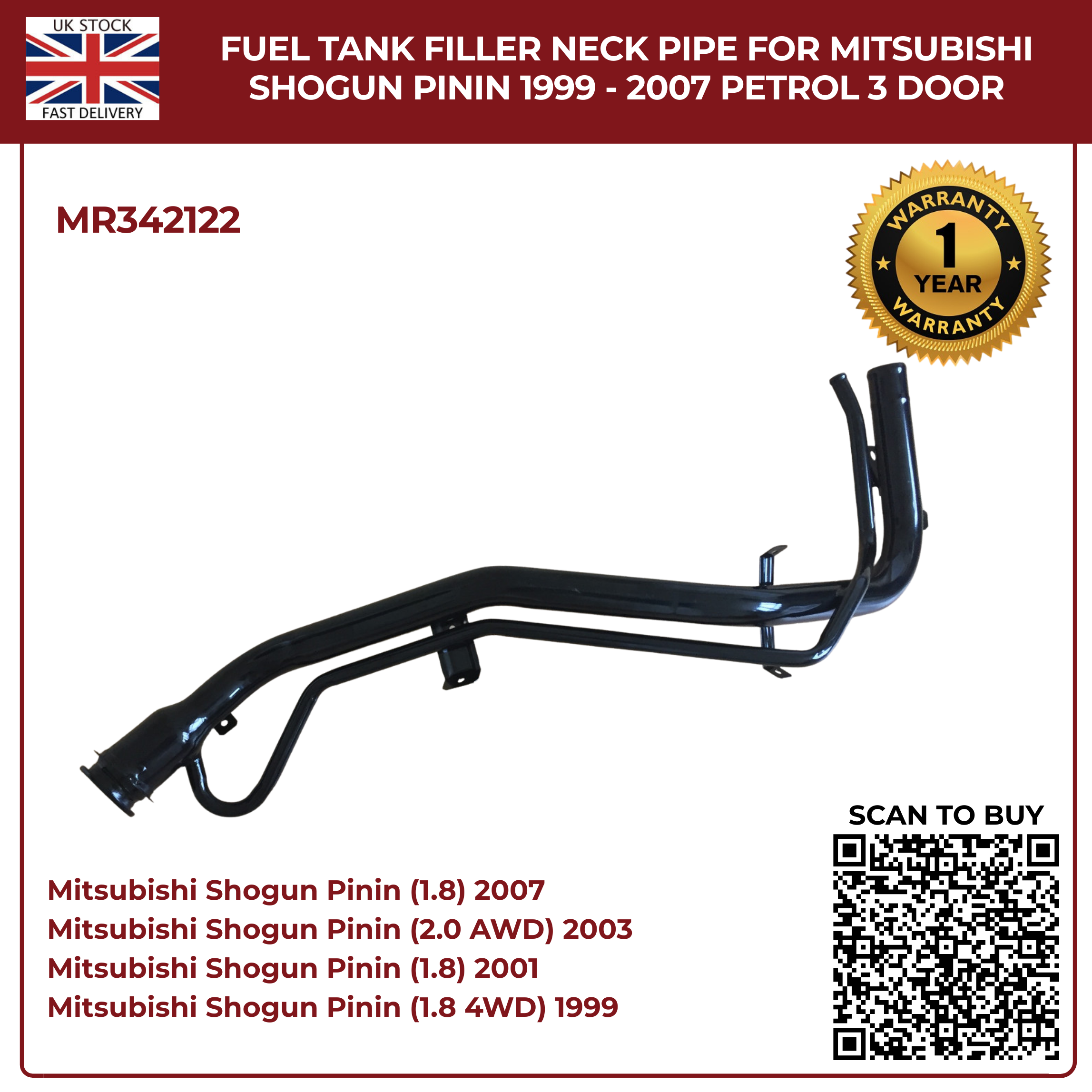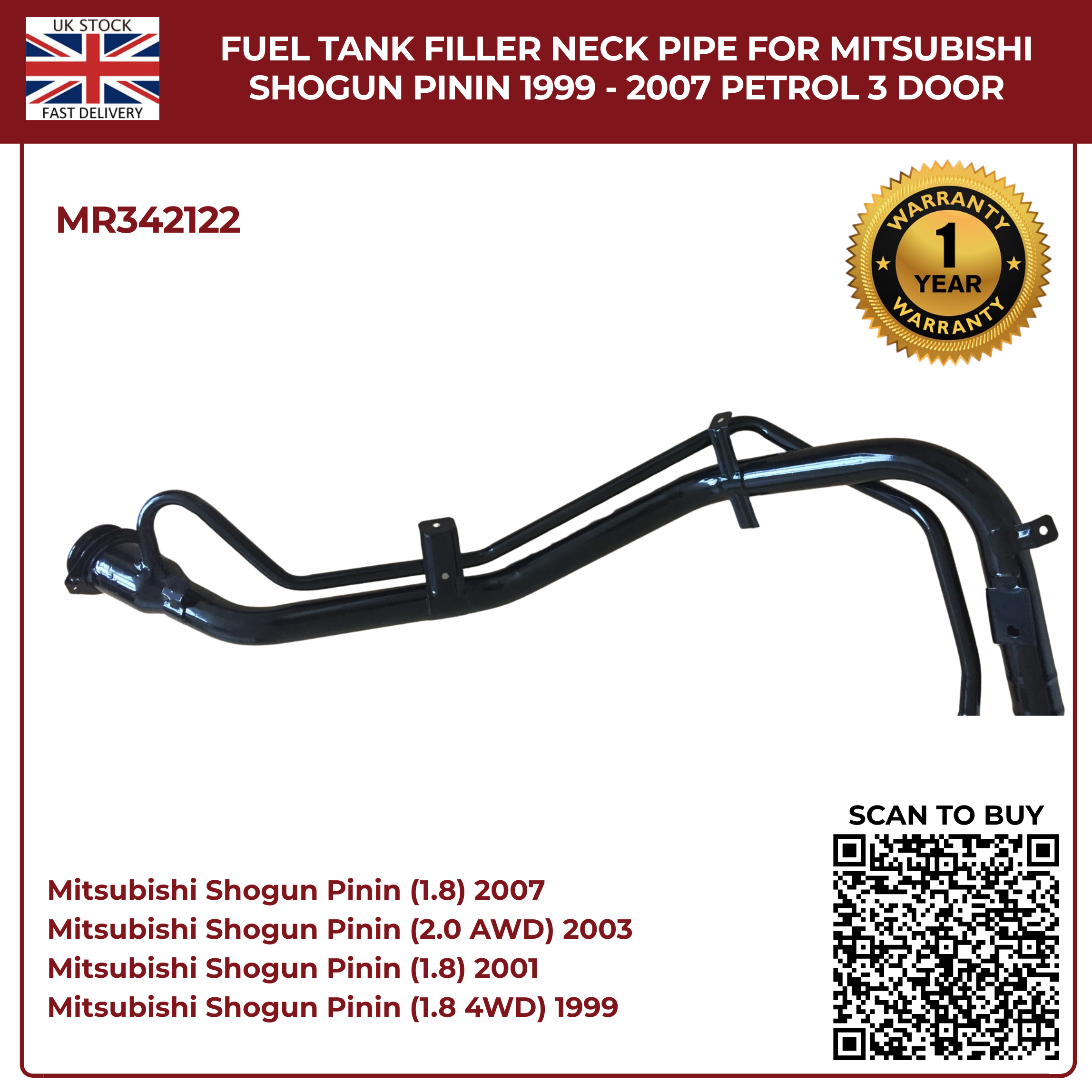 Only a handful left. Tap “Buy It Now” to secure your MR342122 Fuel Tank Filler Neck Pipe and enjoy same‑day dispatch from our UK warehouse.