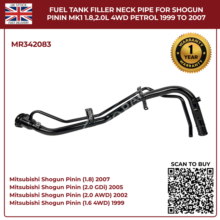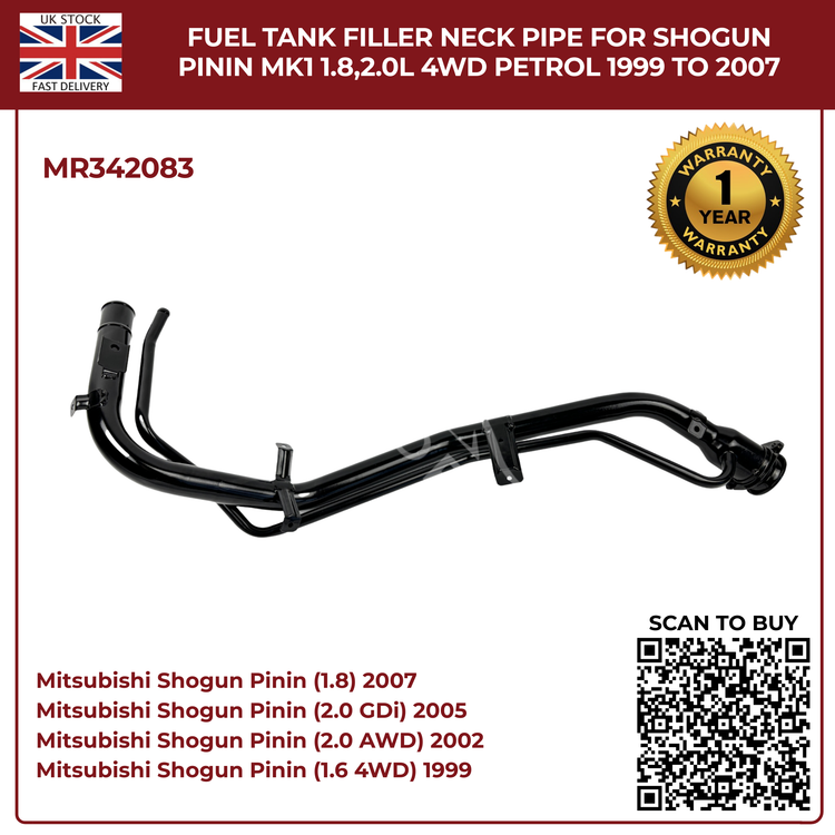 Fuel Tank Filler Neck Pipe – Mitsubishi Shogun Pinin 5-Door Petrol (1999–2007) Part No. MR342083
