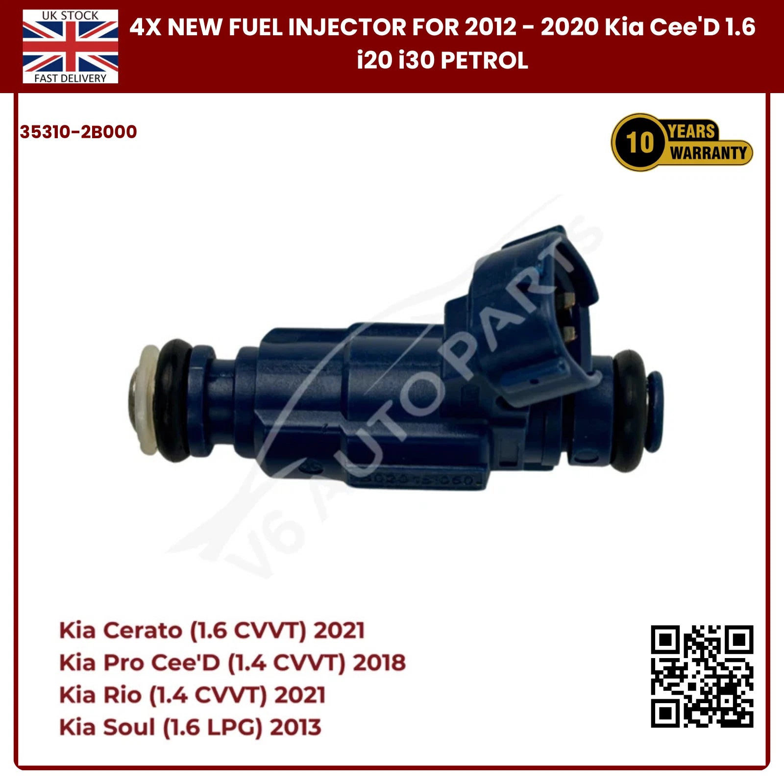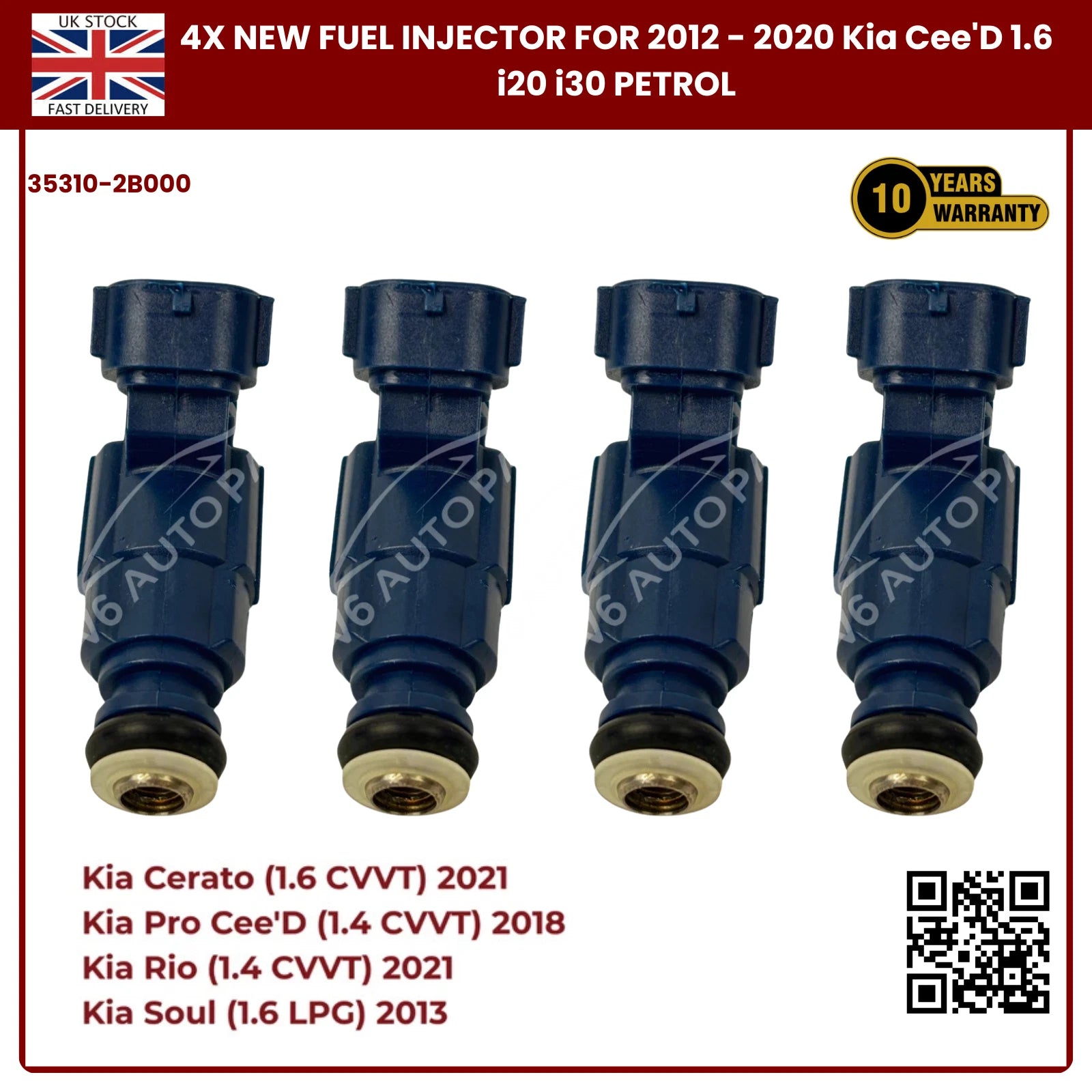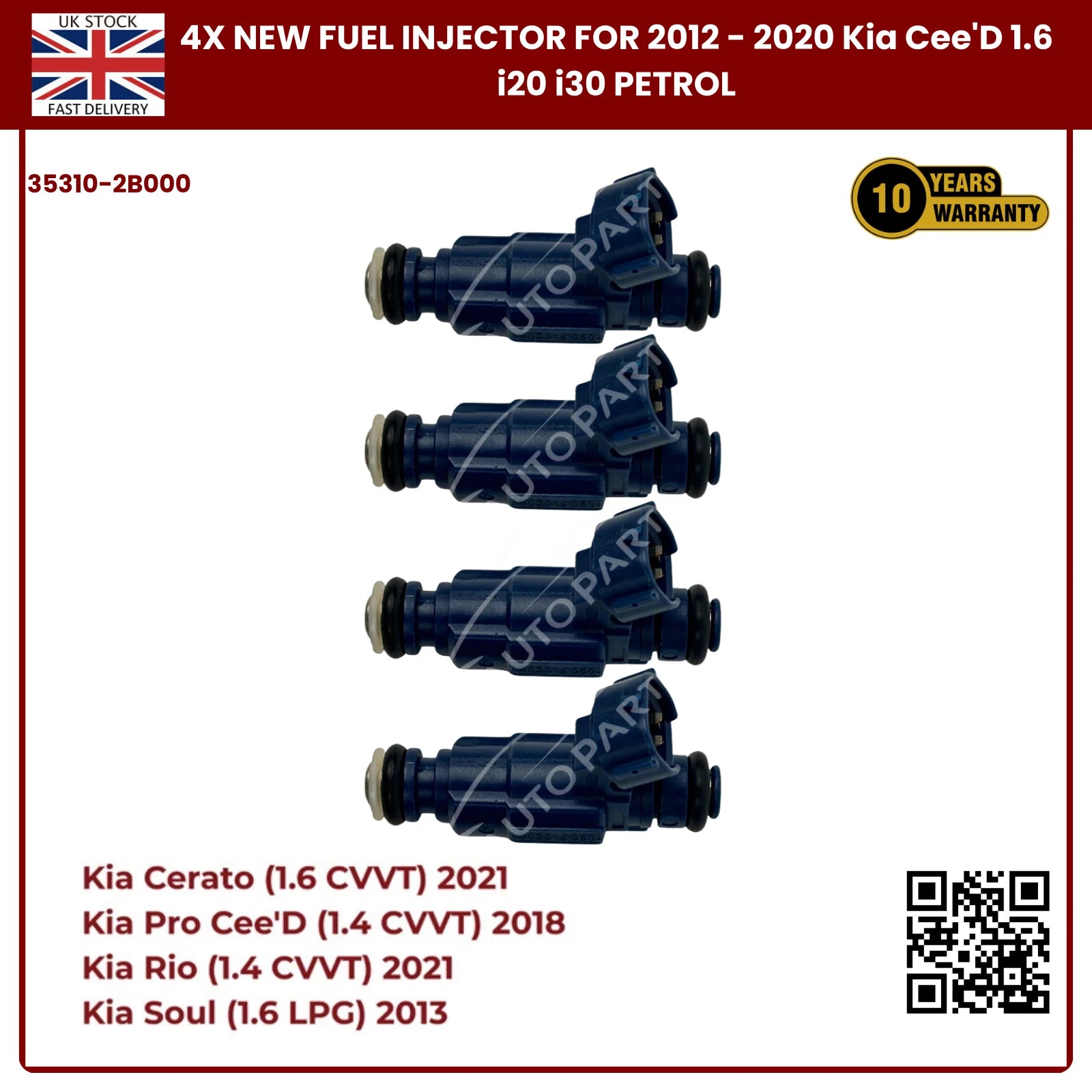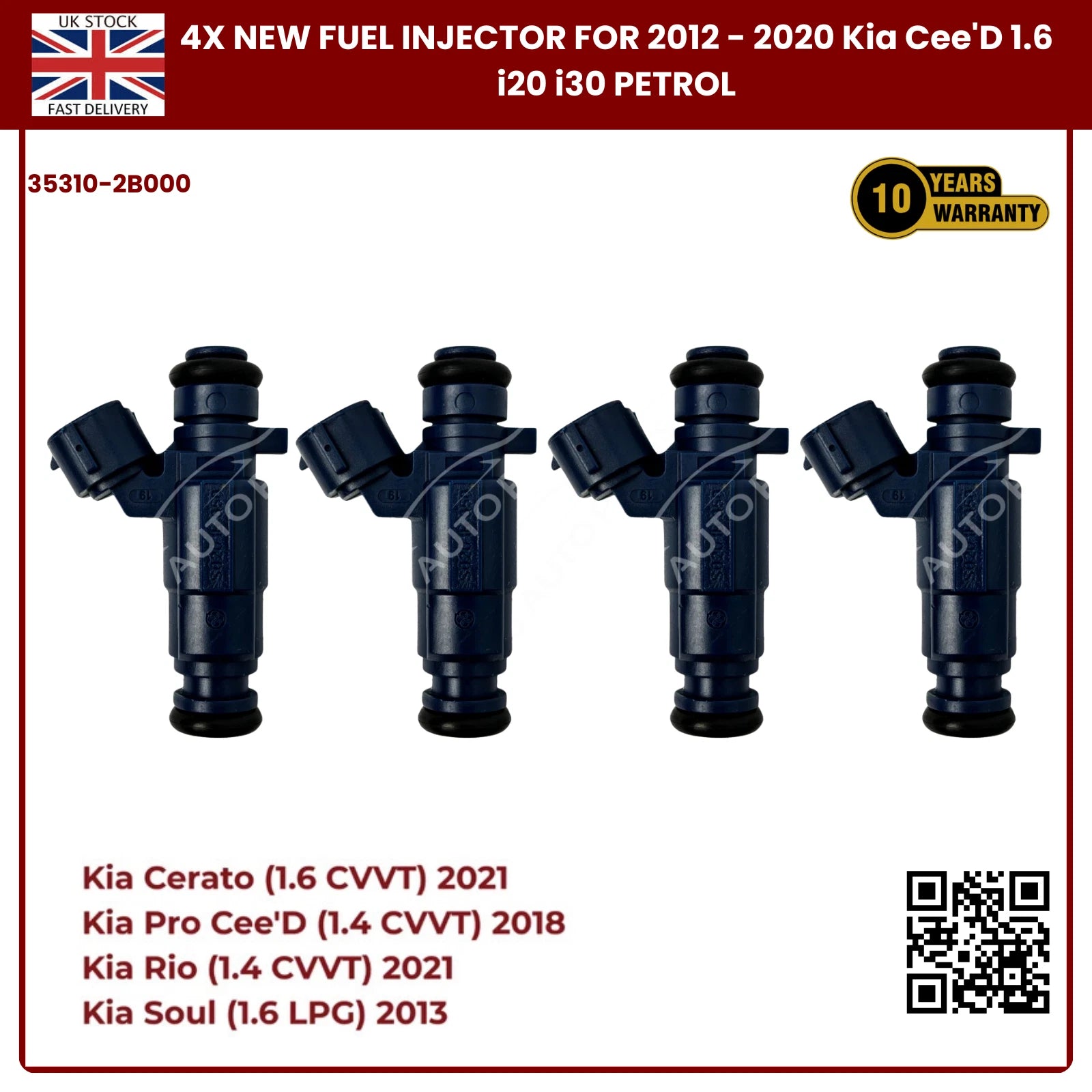 4x Fuel Injector 35310-2B000 | Fits Kia Cee’D, i20, i30 (2012–2020) 1.6 Petrol | OE Replacement