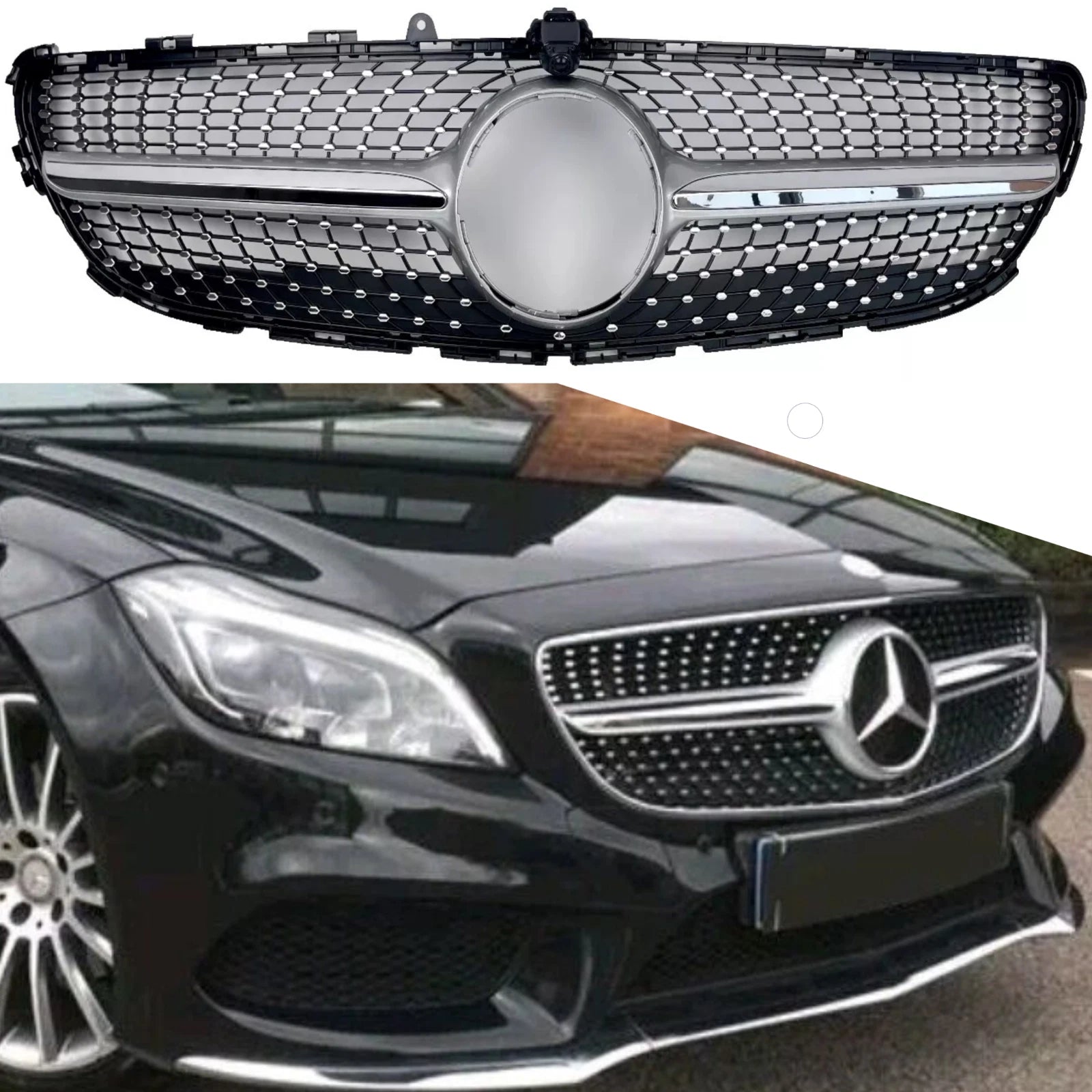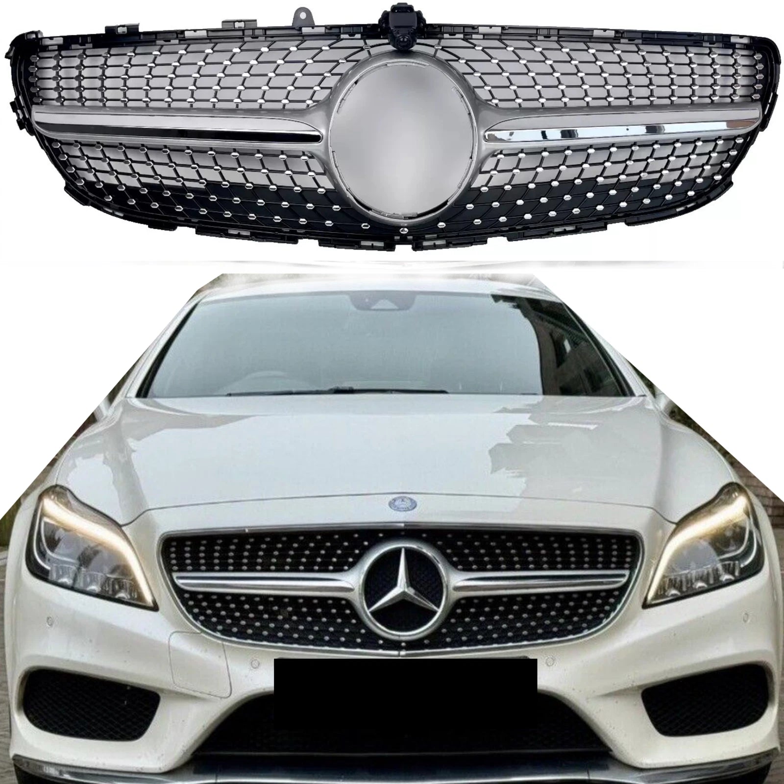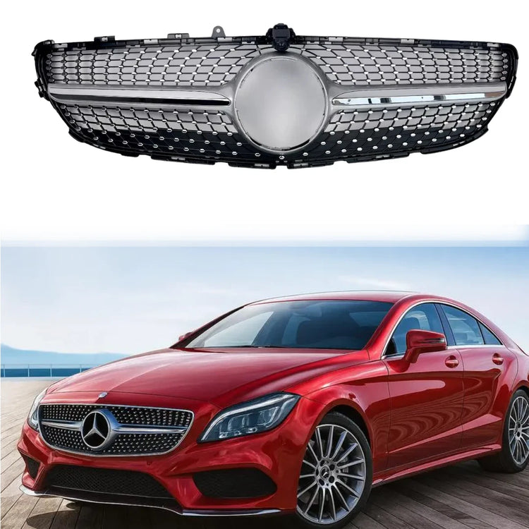 🔥 Front Radiator Air Intake Silver Chrome Diamond Grille – CLS63 Look Upgrade