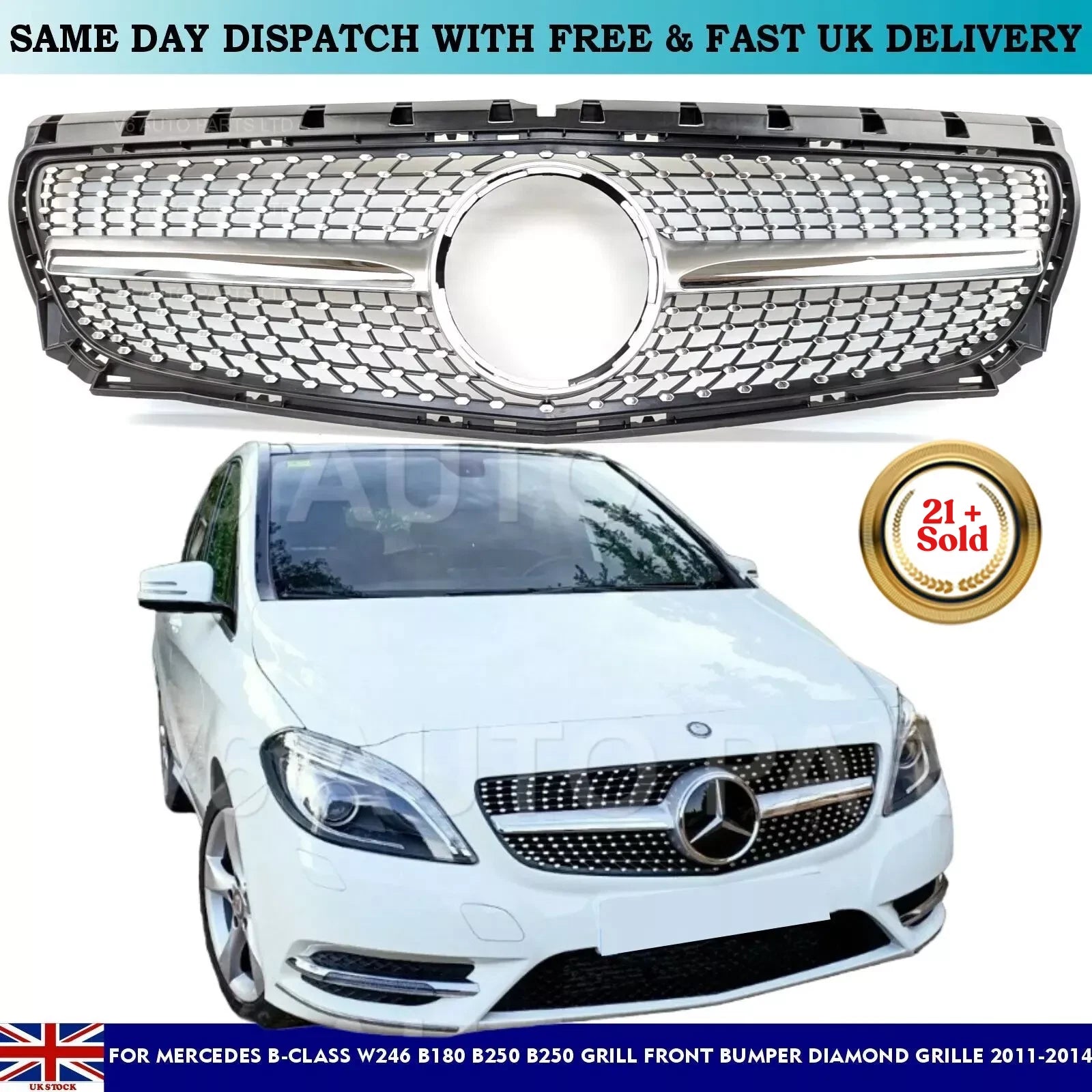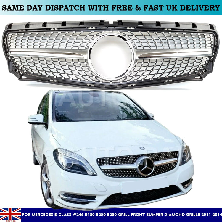For Mercedes Benz B‑Class W246 Front Bumper Chrome Diamond Grille – Fits B180 & B250 (2011–2014)