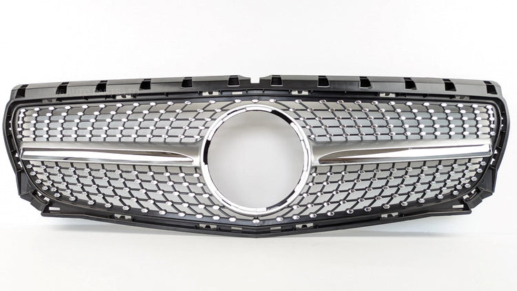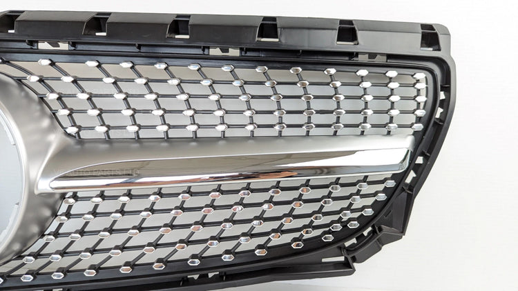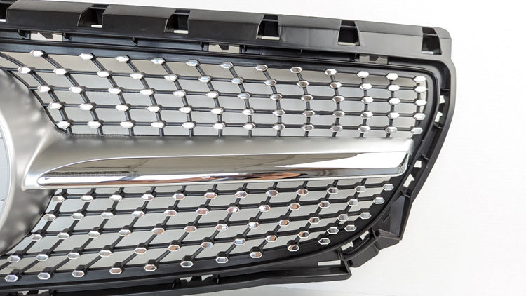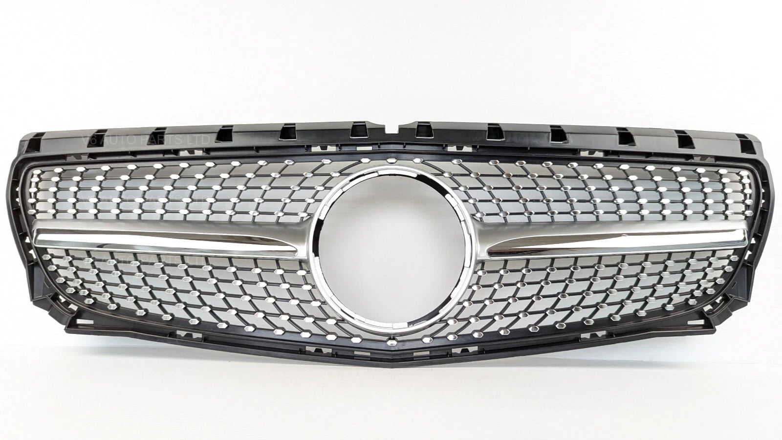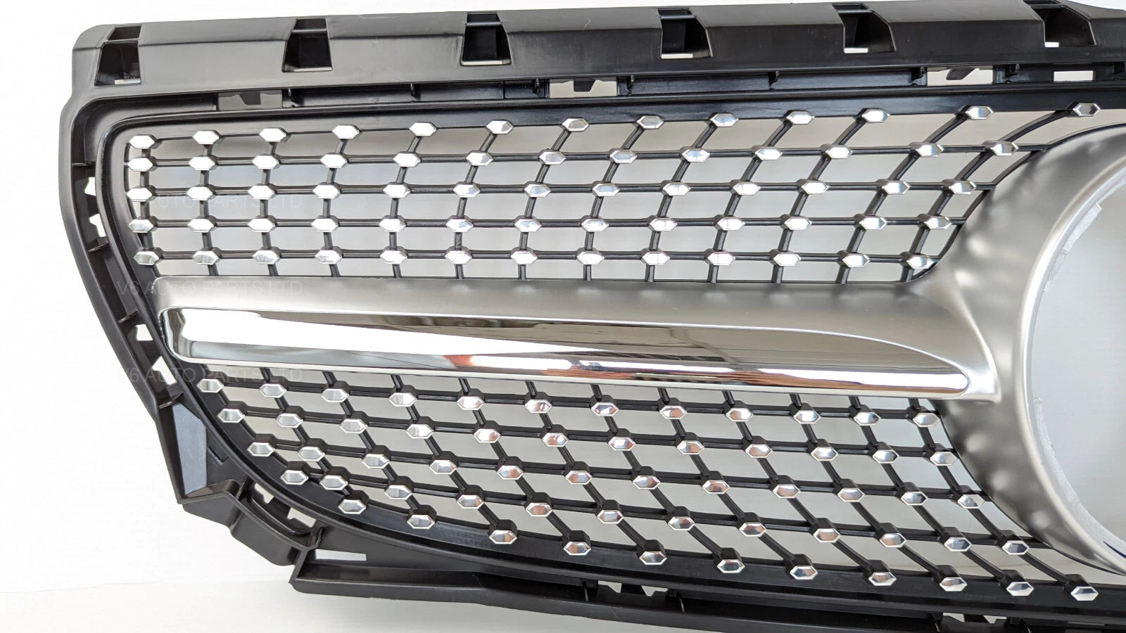 Upgrade the look of your Mercedes Benz B‑Class W246 with this premium aftermarket grille. Crafted from durable ABS plastic and finished in black honeycomb mesh with chrome AMG Diamond fins, it delivers a bold, sporty front‑end style. Designed as a direct‑fit replacement, it installs easily with no modifications required.