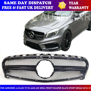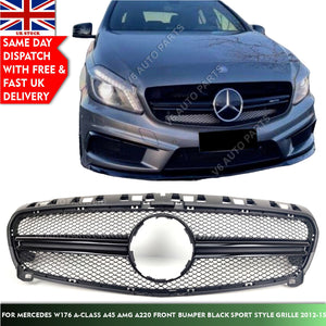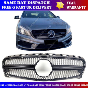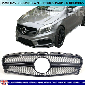 For Mercedes A-Class W176 A45 A160d Replacement Front Bumper Grille Black AMG Line Sport 2012-15