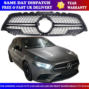 For Mercedes W177 A-Class A45 A35 AMG A160 200 replacement Front Bumper Black Grille 2018-22
