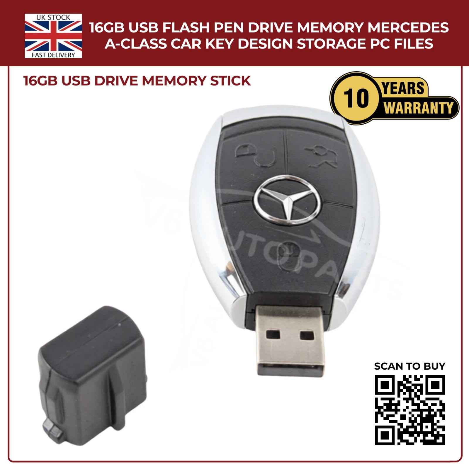 A sleek USB memory stick shaped like a Mercedes-Benz car key. Perfect for gifting or everyday use.