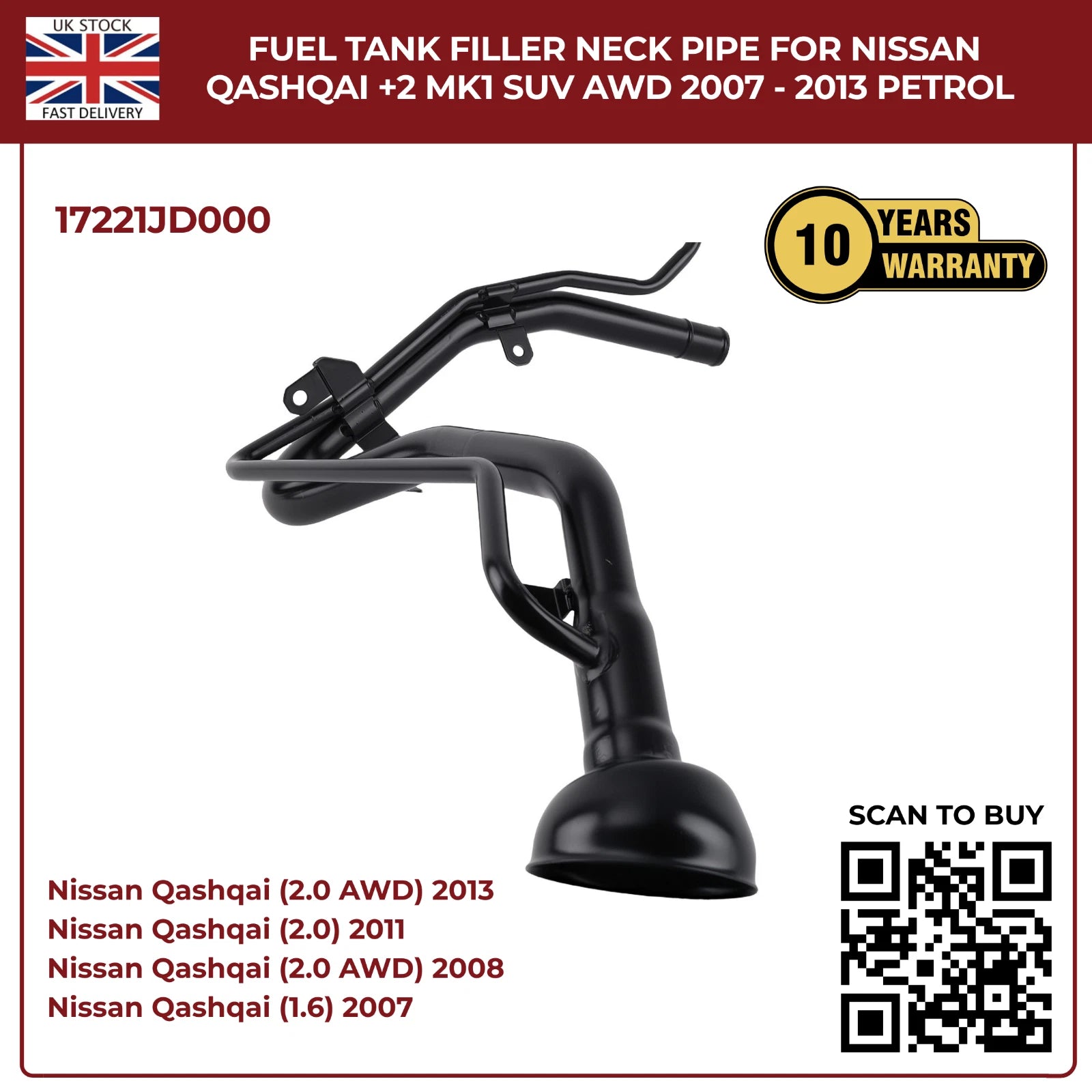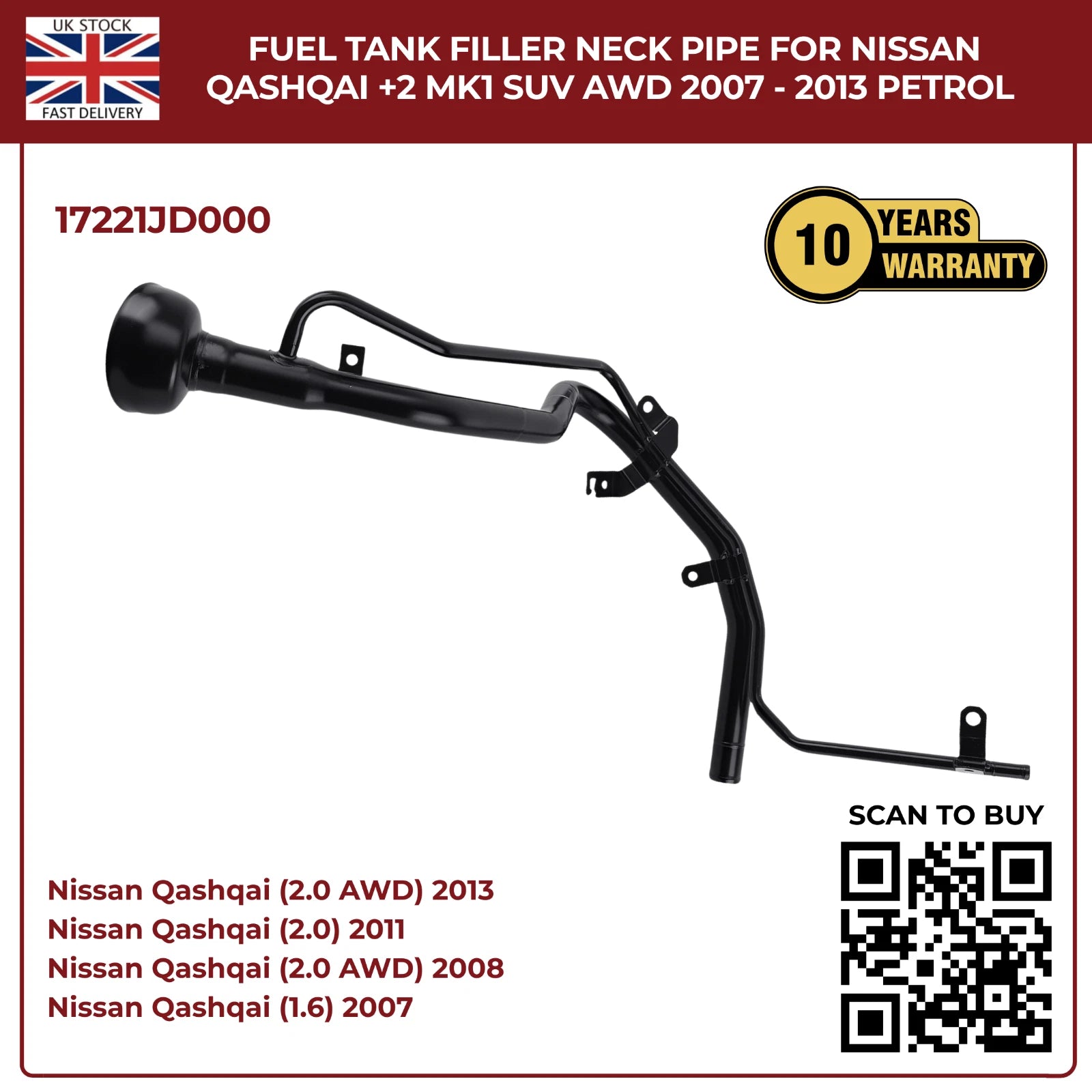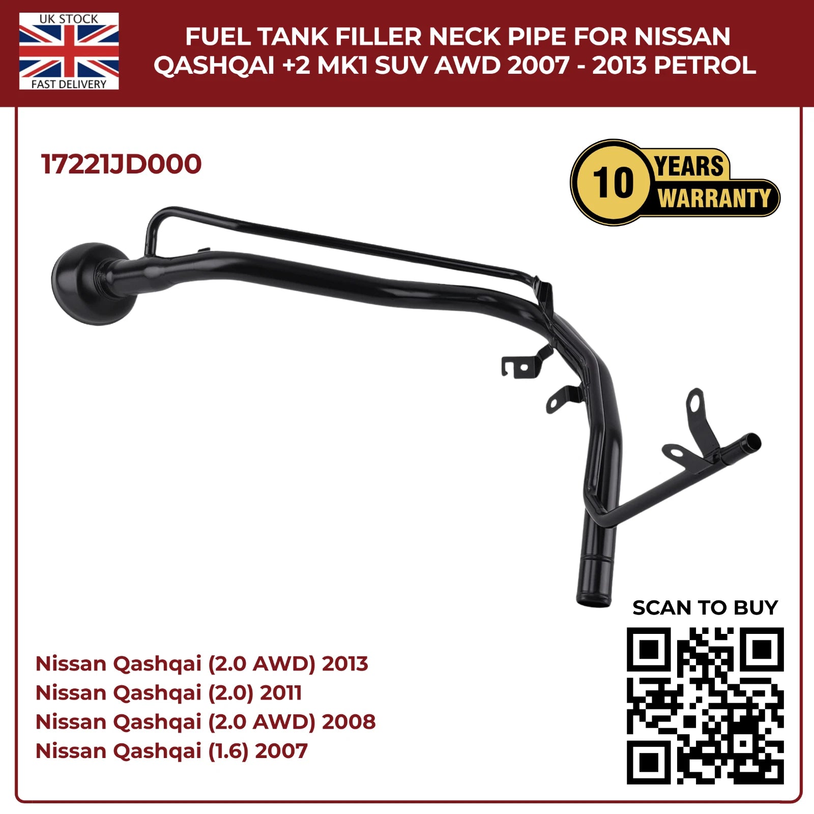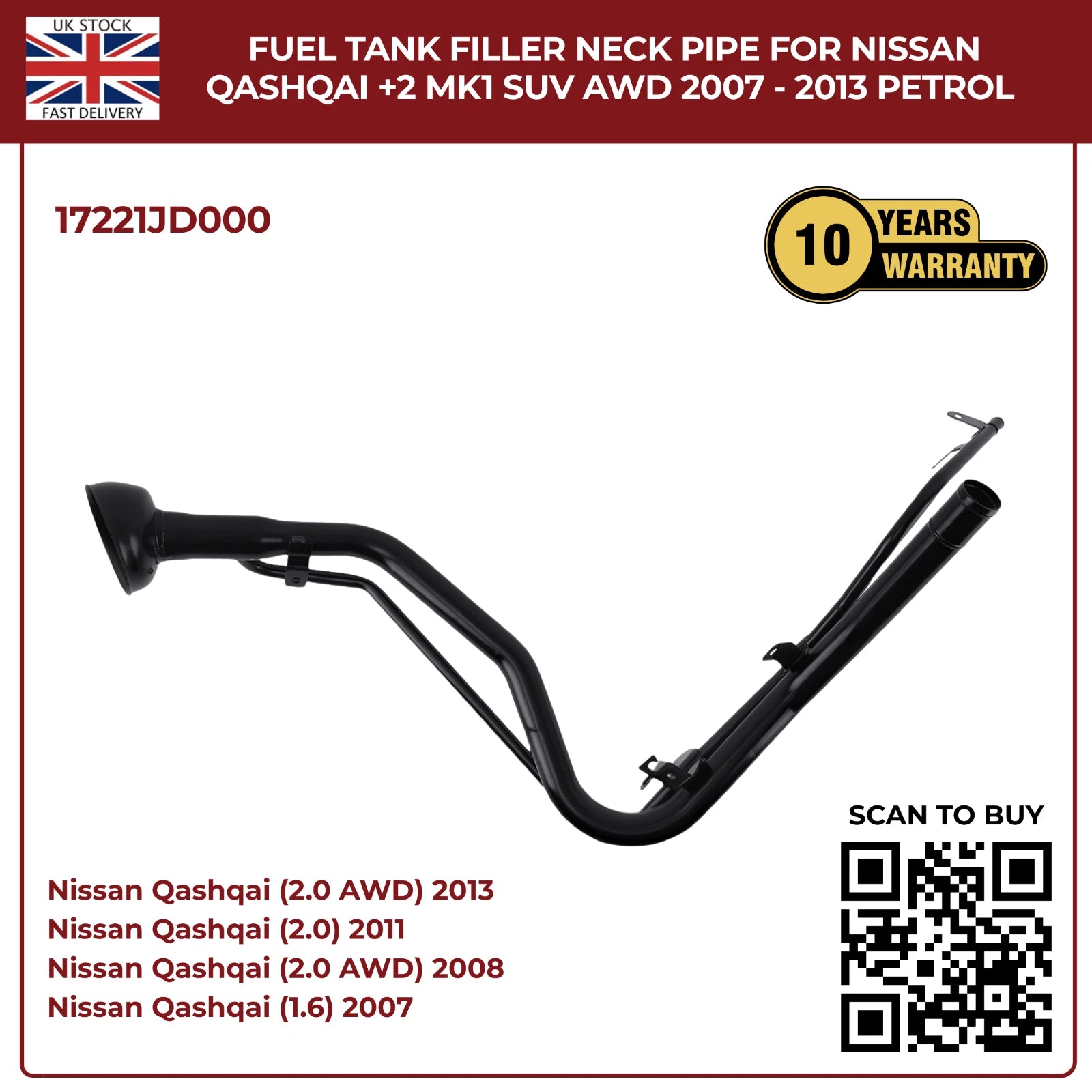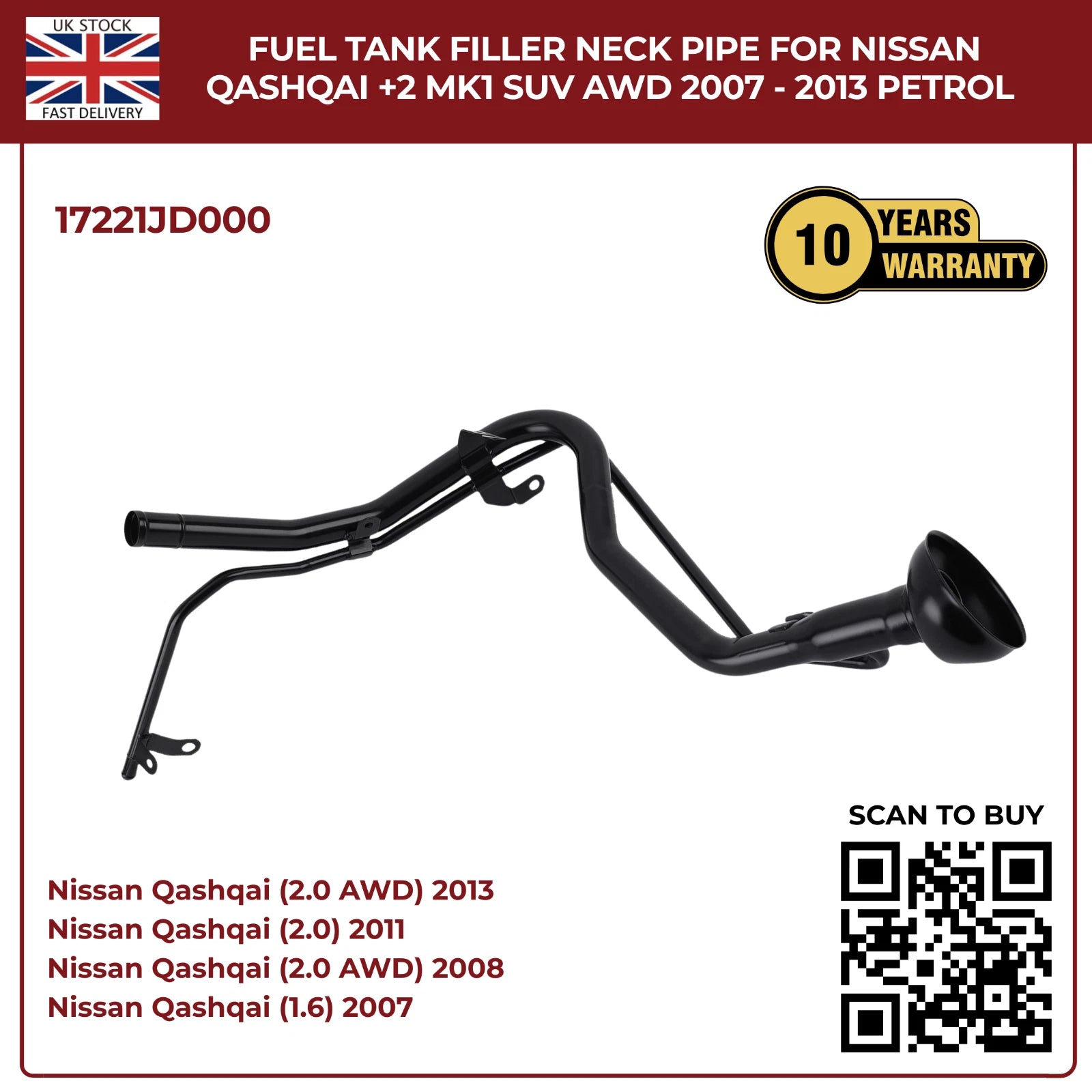Upgrade your Nissan Qashqai +2 MK1 with this perfect‑fit aftermarket fuel filler neck pipe. Designed for HR16DE 1.6 L and MR20DE 2.0 L petrol engines, it ensures a leak‑free seal, corrosion resistance, and trouble‑free installation.