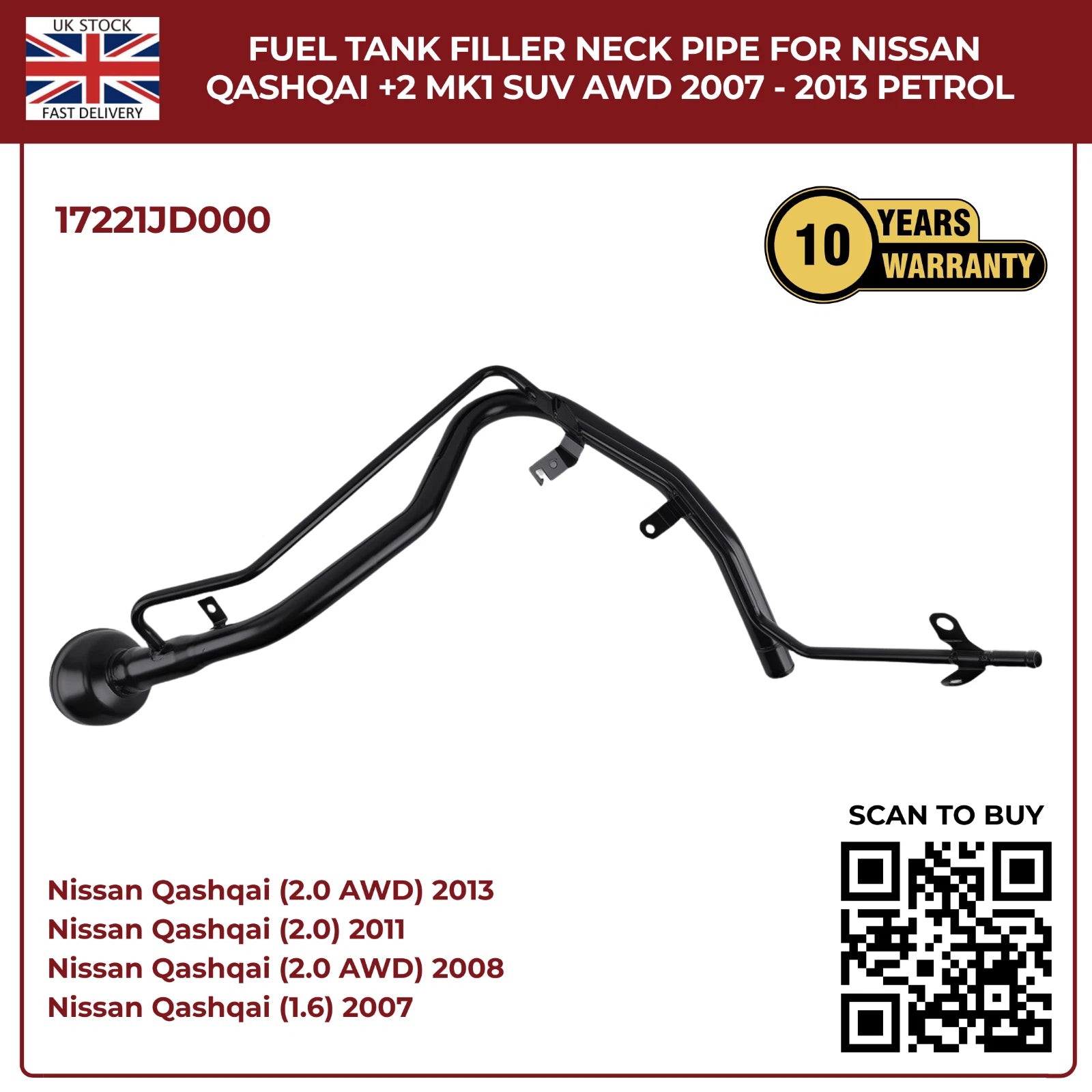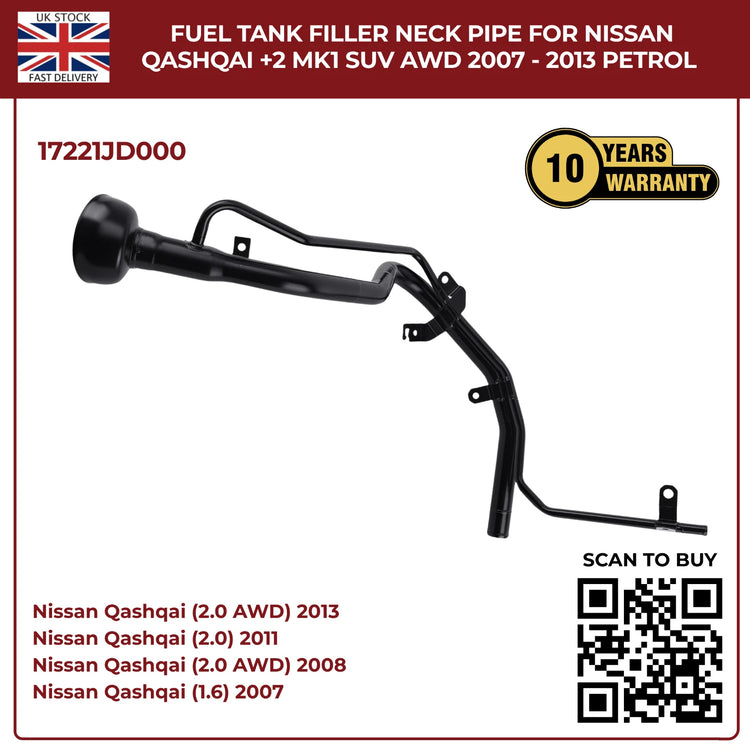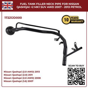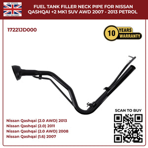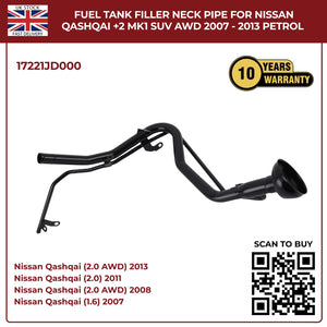 Fuel Filler Neck Pipe For Nissan Qashqai +2 MK1 SUV (2007–2013, JJ10E, Petrol, 4×4 & 2WD)