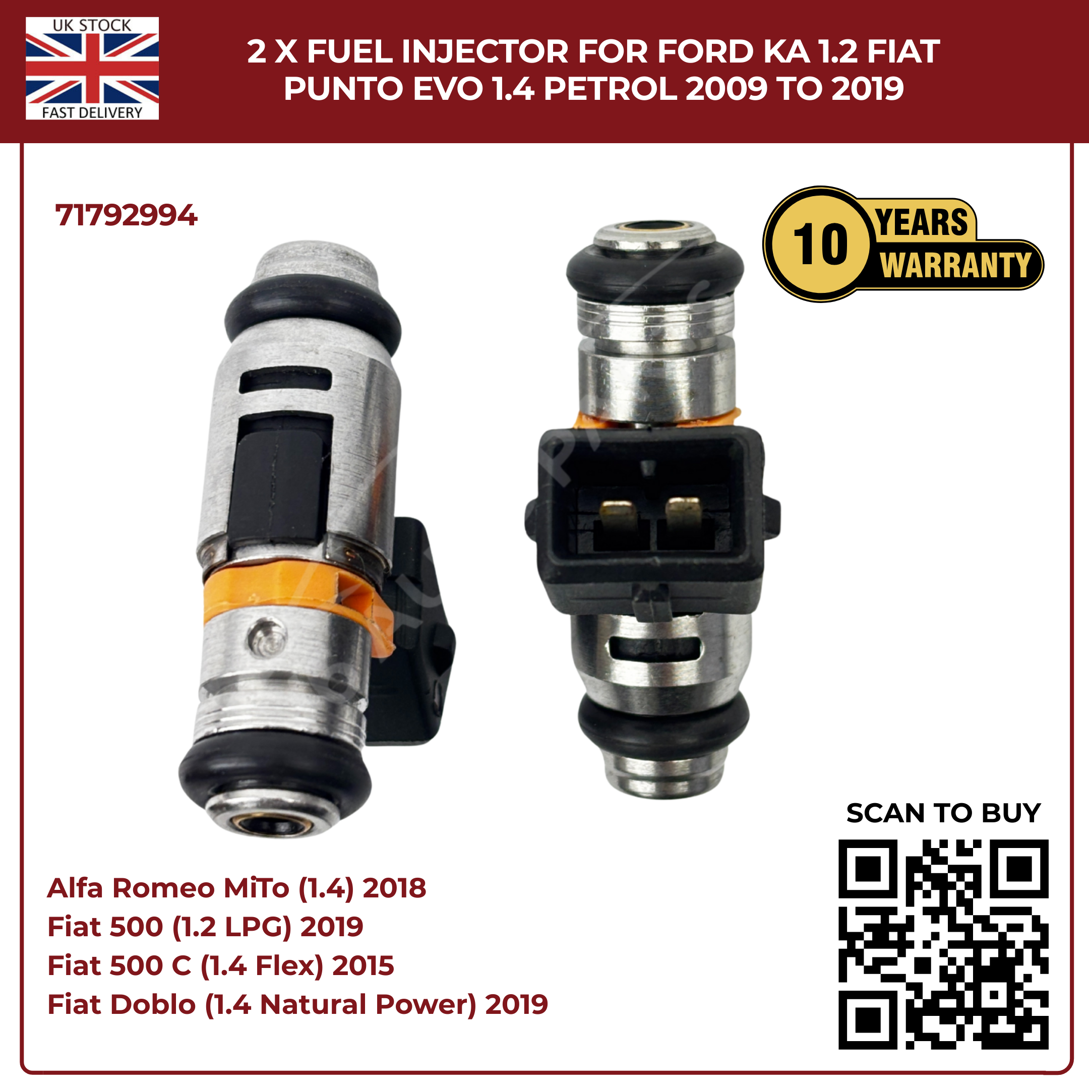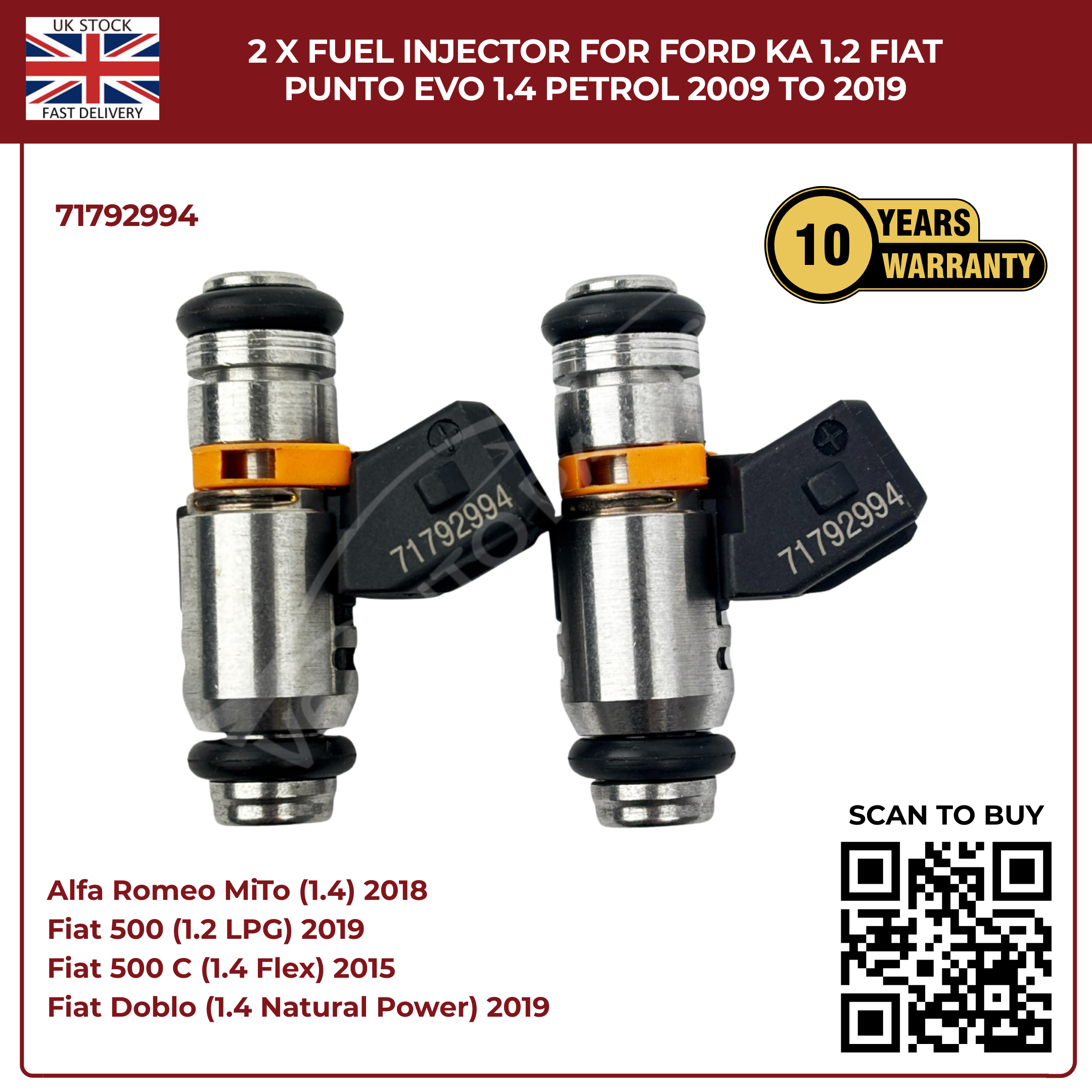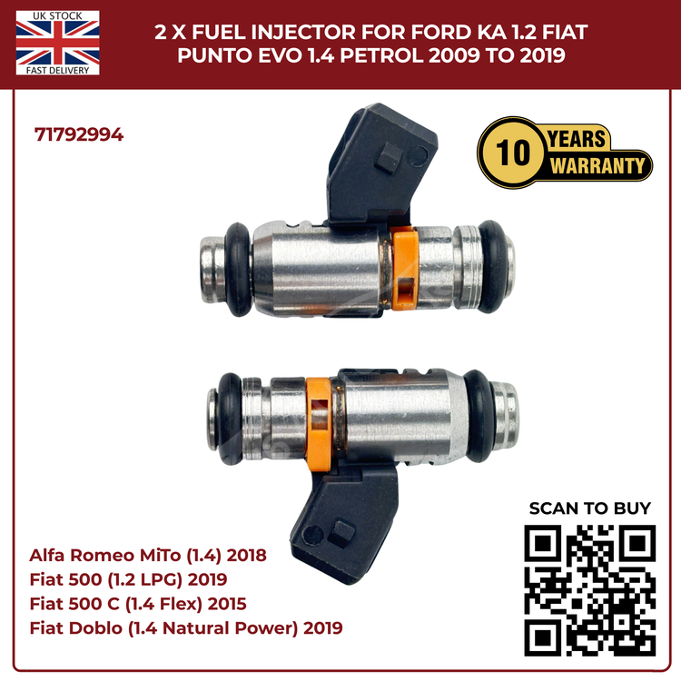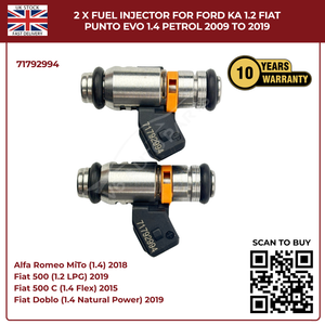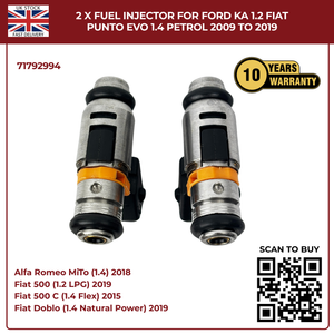 2× Fuel Injectors 71792994 – Fits 2009–2019 Ford Ka 1.2 & Fiat Punto Evo 1.4 Petrol