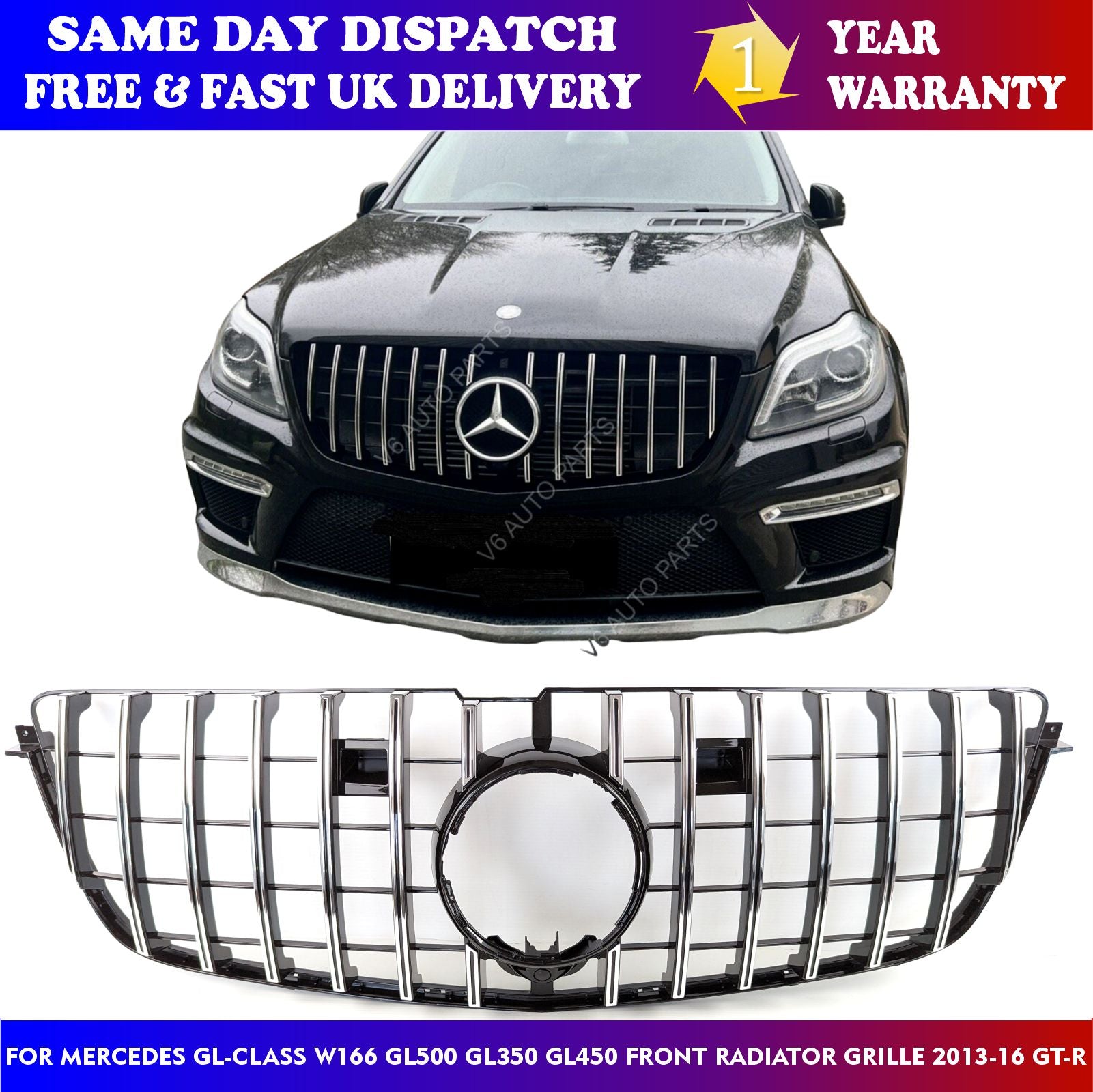 For Mercedes GL-Class W166 GL500 GL350 GL450 Replacement Front Radiator Grille 2013-16 GT-R