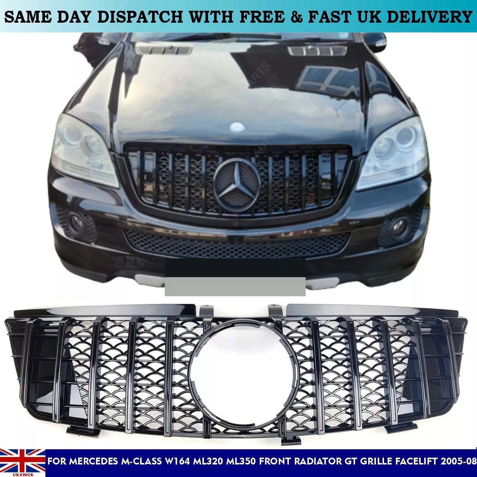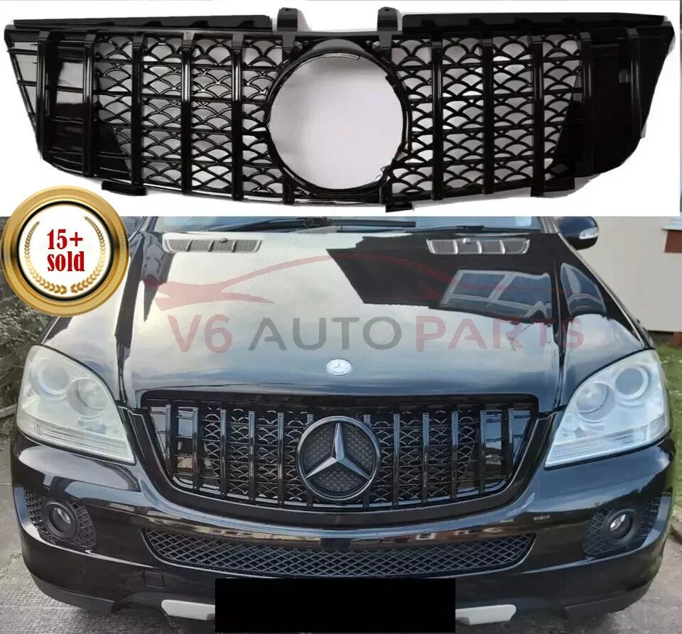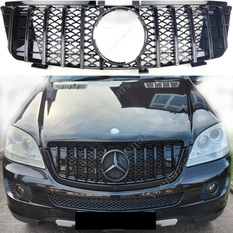 For Mercedes M-Class W164 GT Front Grille Gloss Black (ML320/ML350, 2005–2008 Pre-Facelift)