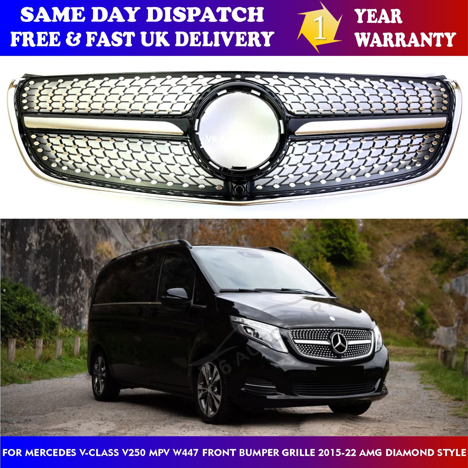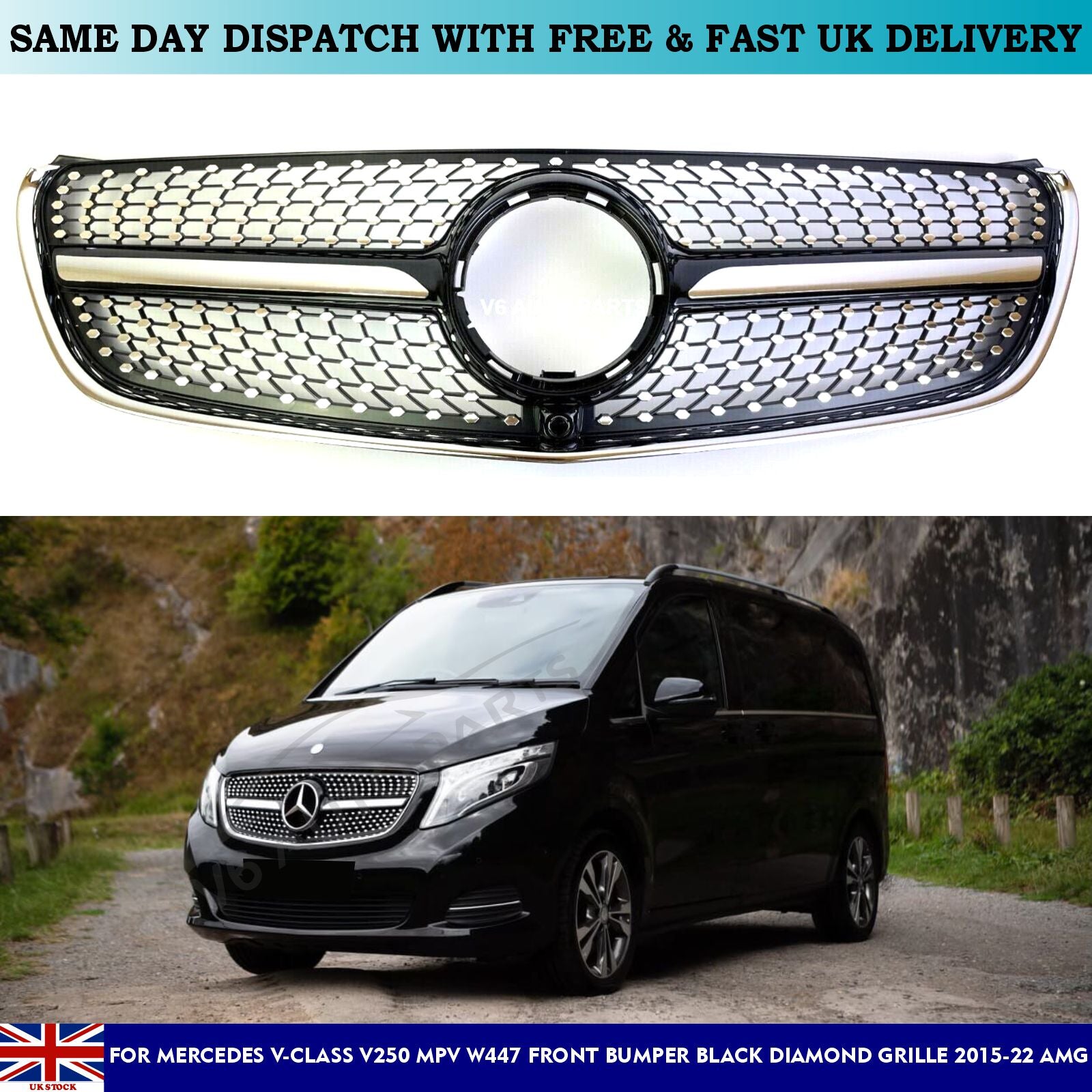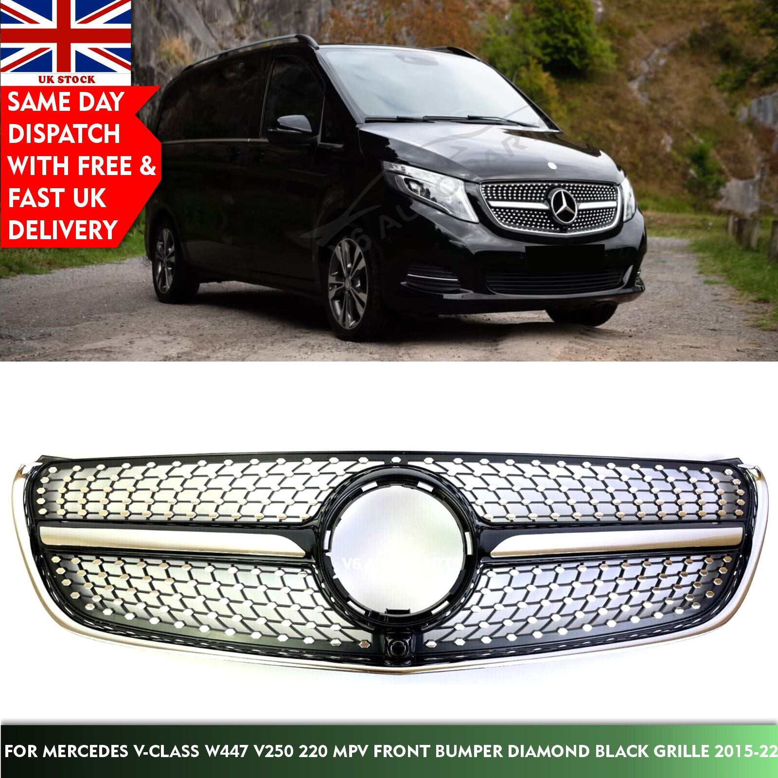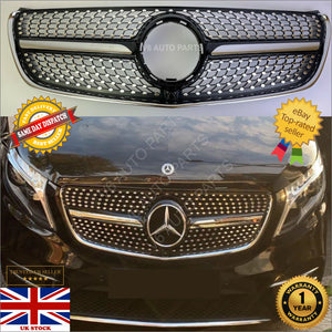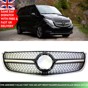 For Mercedes V-Class W447 V250 220 MPV Compatible front Bumper Diamond Black Grille 2015-22