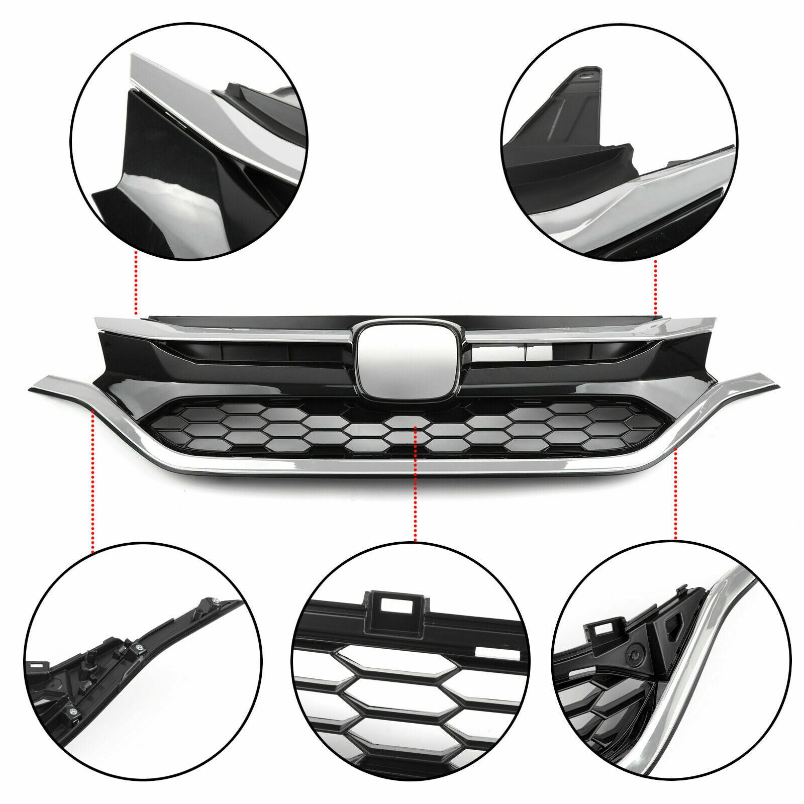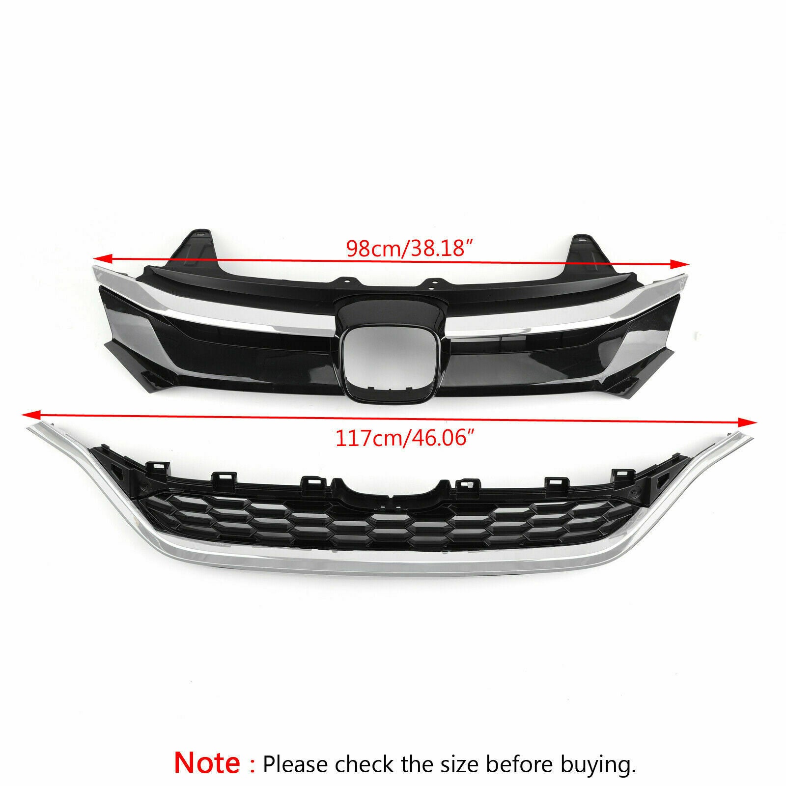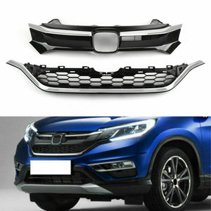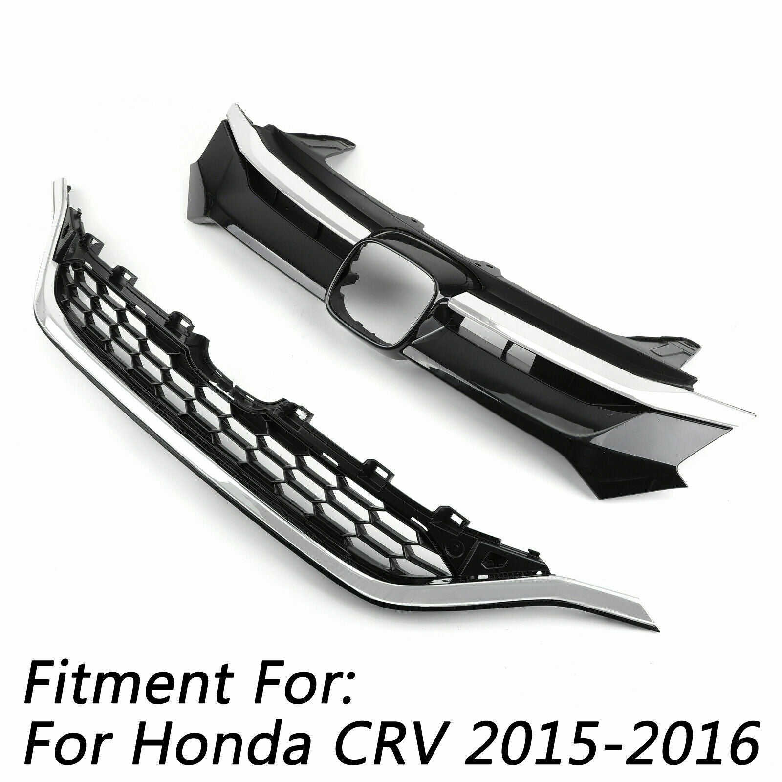 Front Bumper Mask Cover Grid Upper Trim + Lower Grille For Honda CR-V 2015 - 2018 TZ3