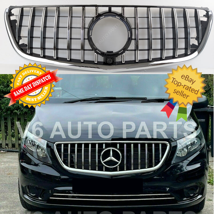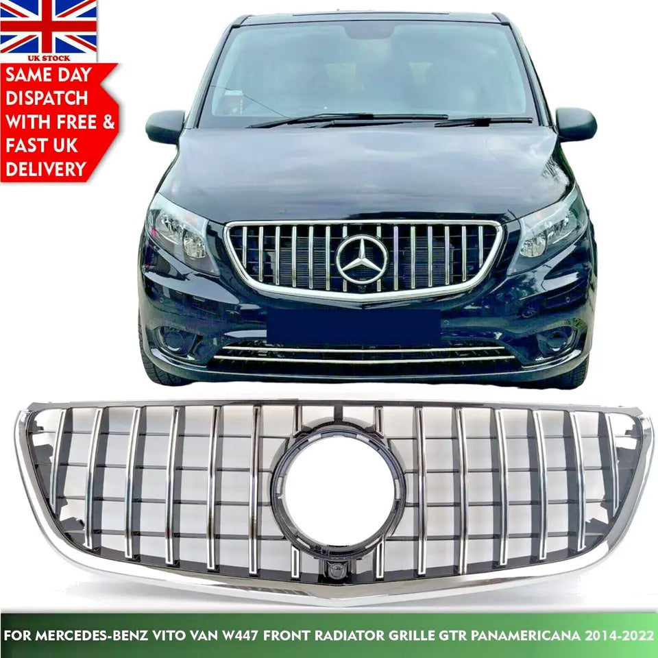 For Mercedes Van W447 124 CDI Chrome Grill Front Radiator GT Grille 2014-22 Vito