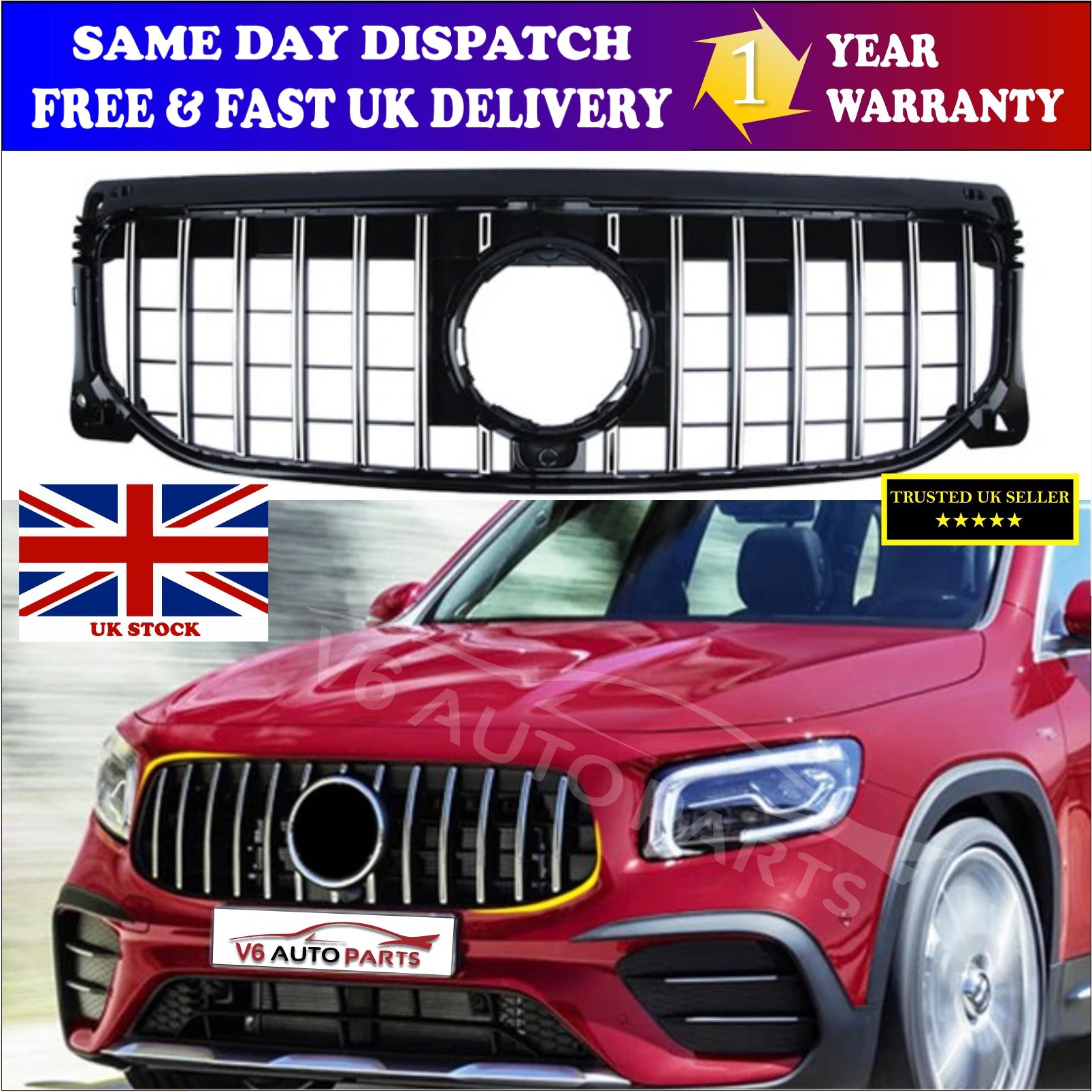For Mercedes GLB-Class X247 180 GT-R Grill Compatible Front Radiator Chrome Grille 2019-21