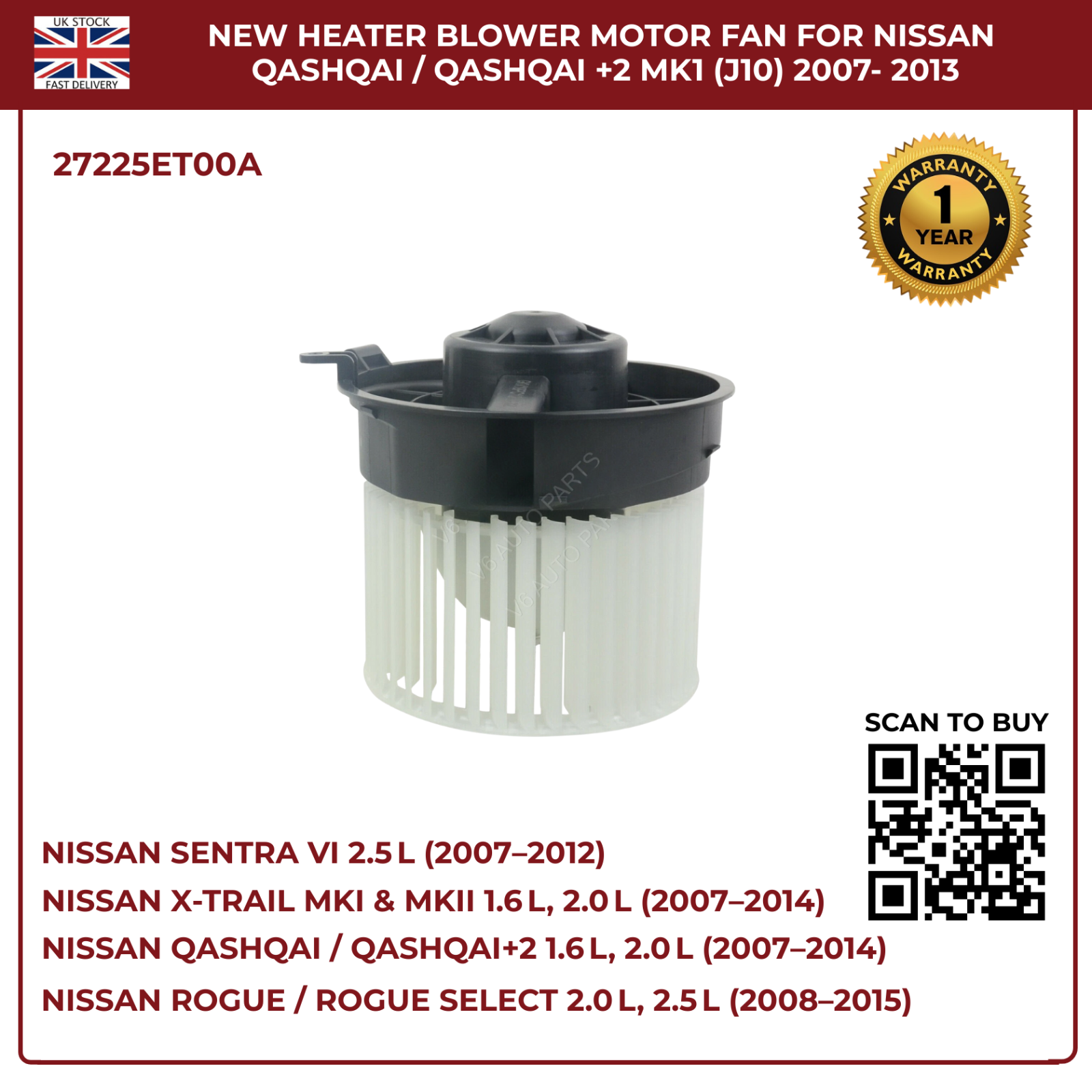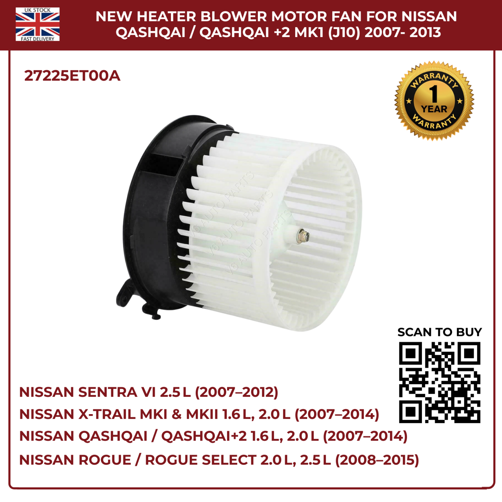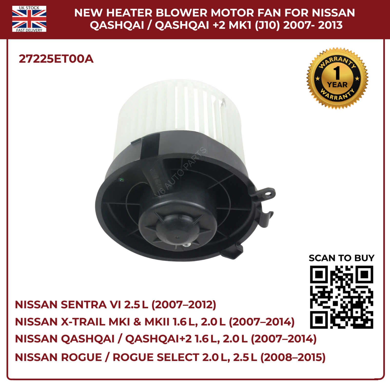 Restore your Nissanâs climate control with this directâfit blower motor fan, engineered for rightâhand drive petrol and diesel models. Designed to OEM specifications, it delivers powerful airflow, quiet operation, and reliable performance across all seasons.