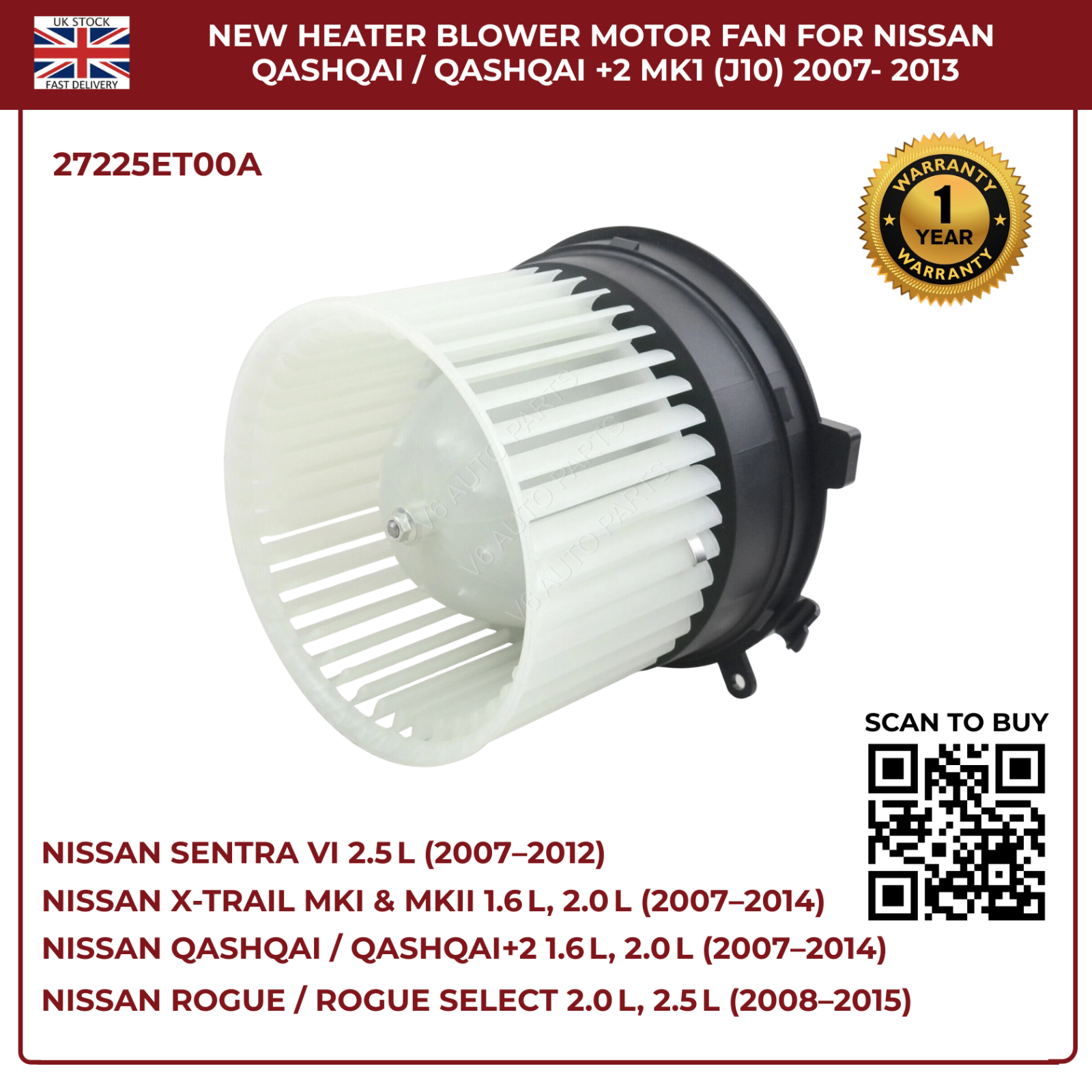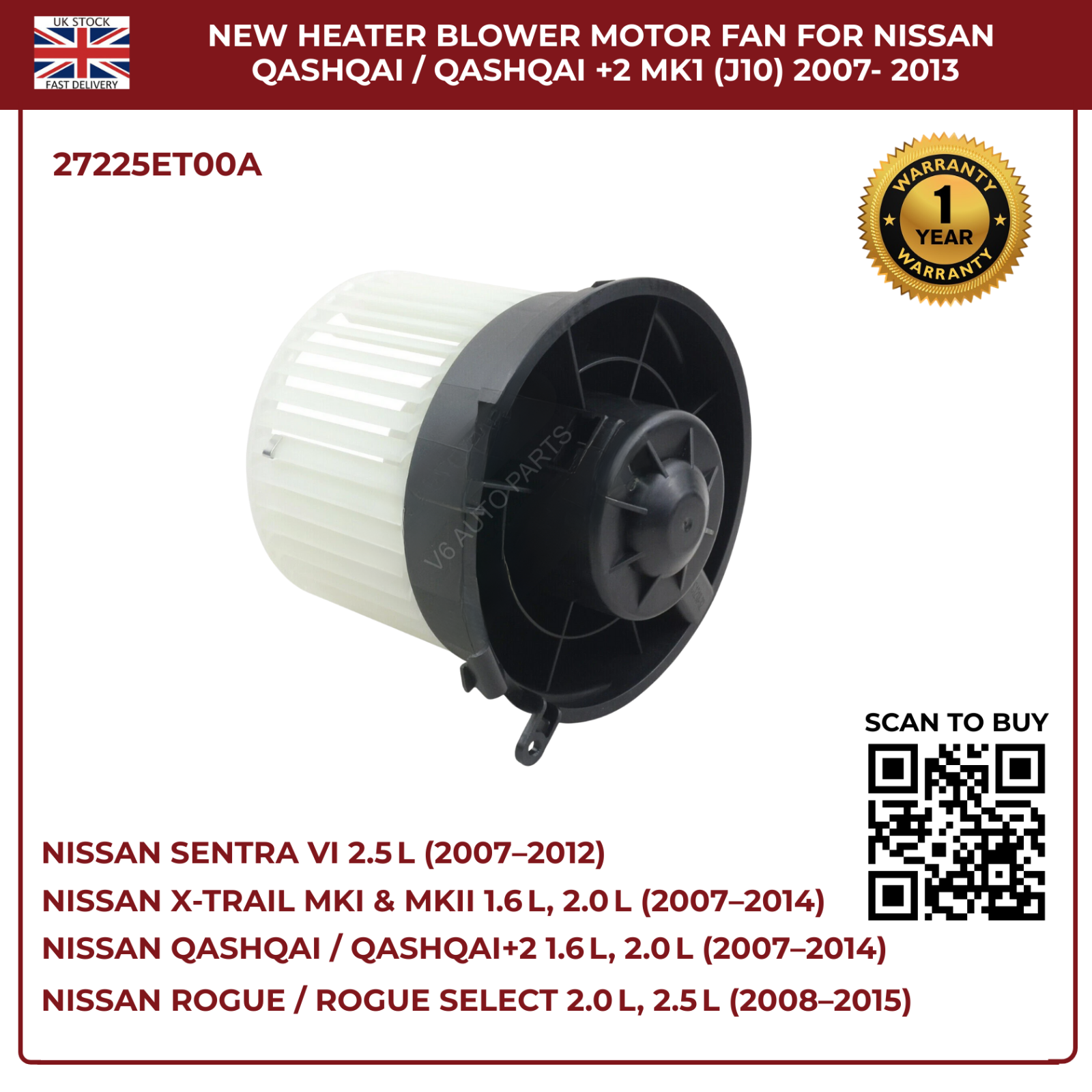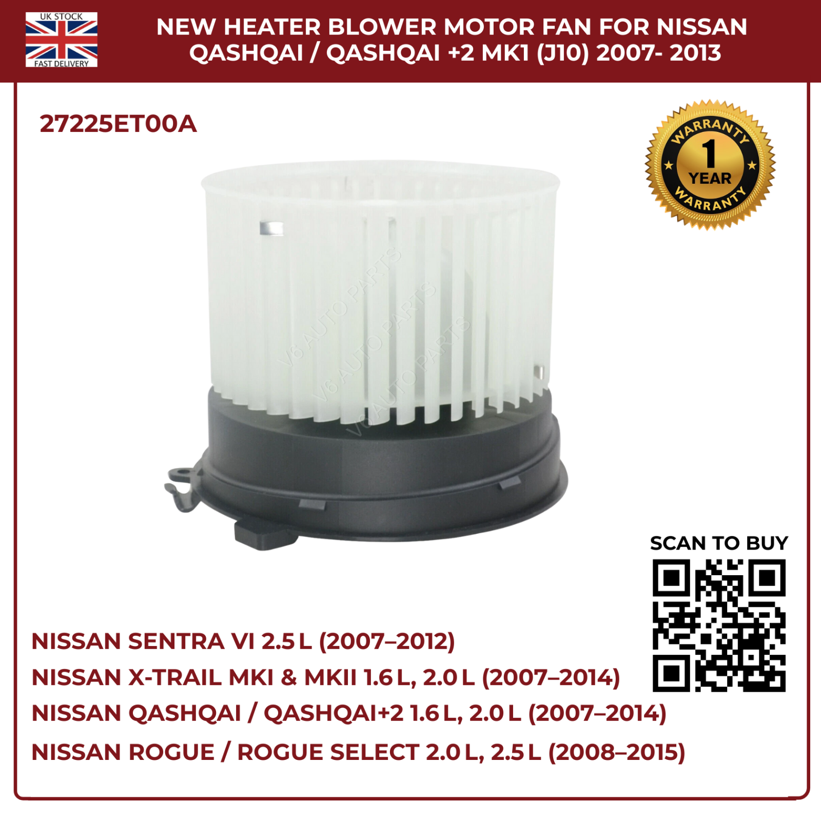 Restore your Nissanâs climate control with this directâfit blower motor fan, engineered for rightâhand drive petrol and diesel models. Designed to OEM specifications, it delivers powerful airflow, quiet operation, and reliable performance across all seasons.
