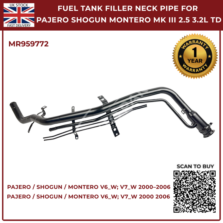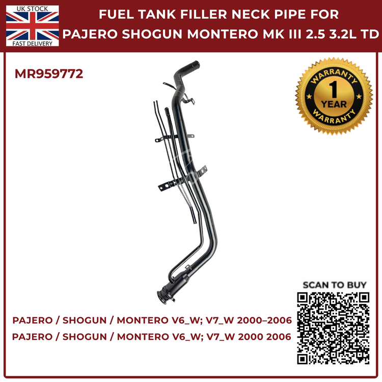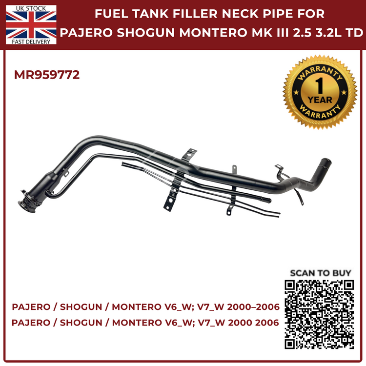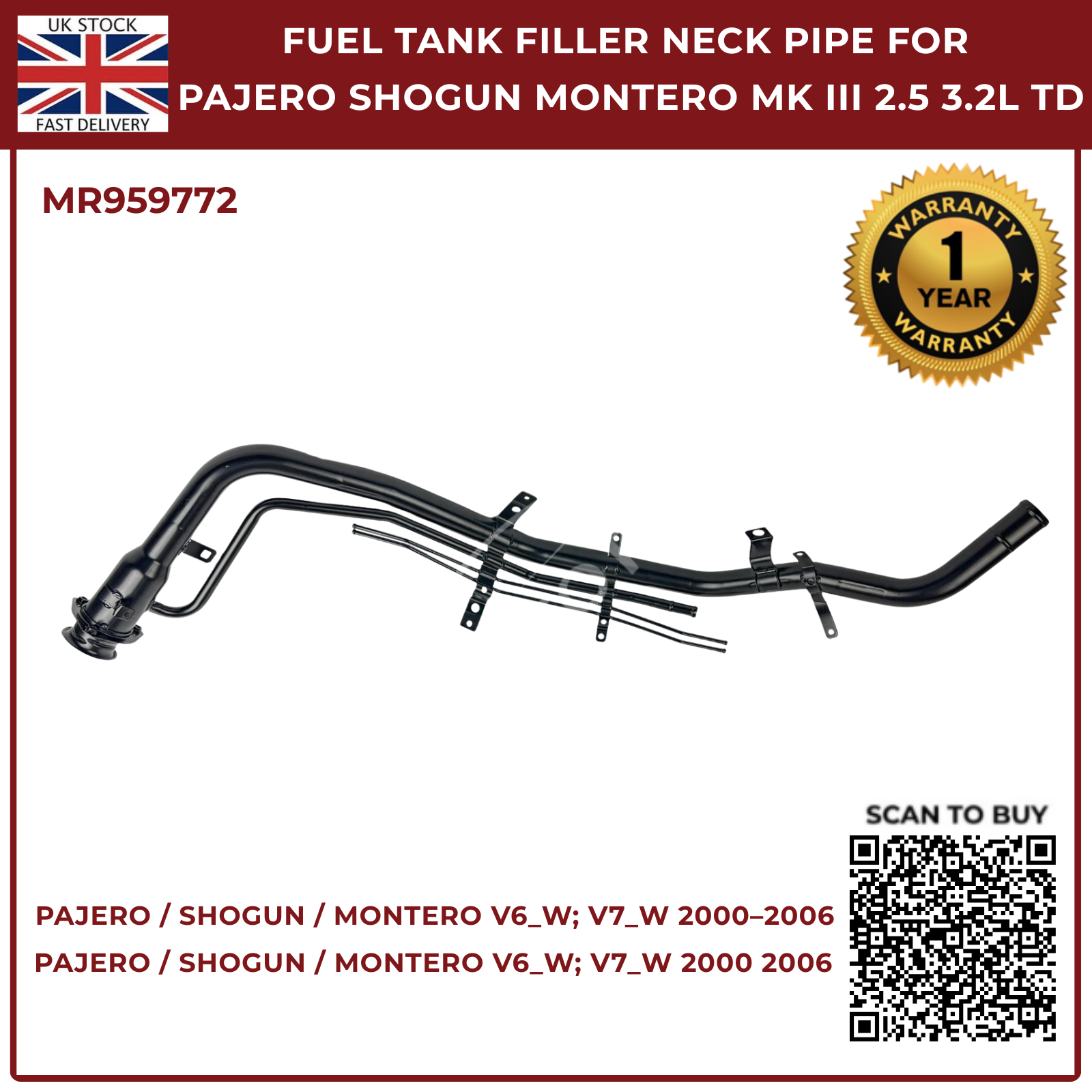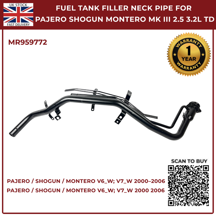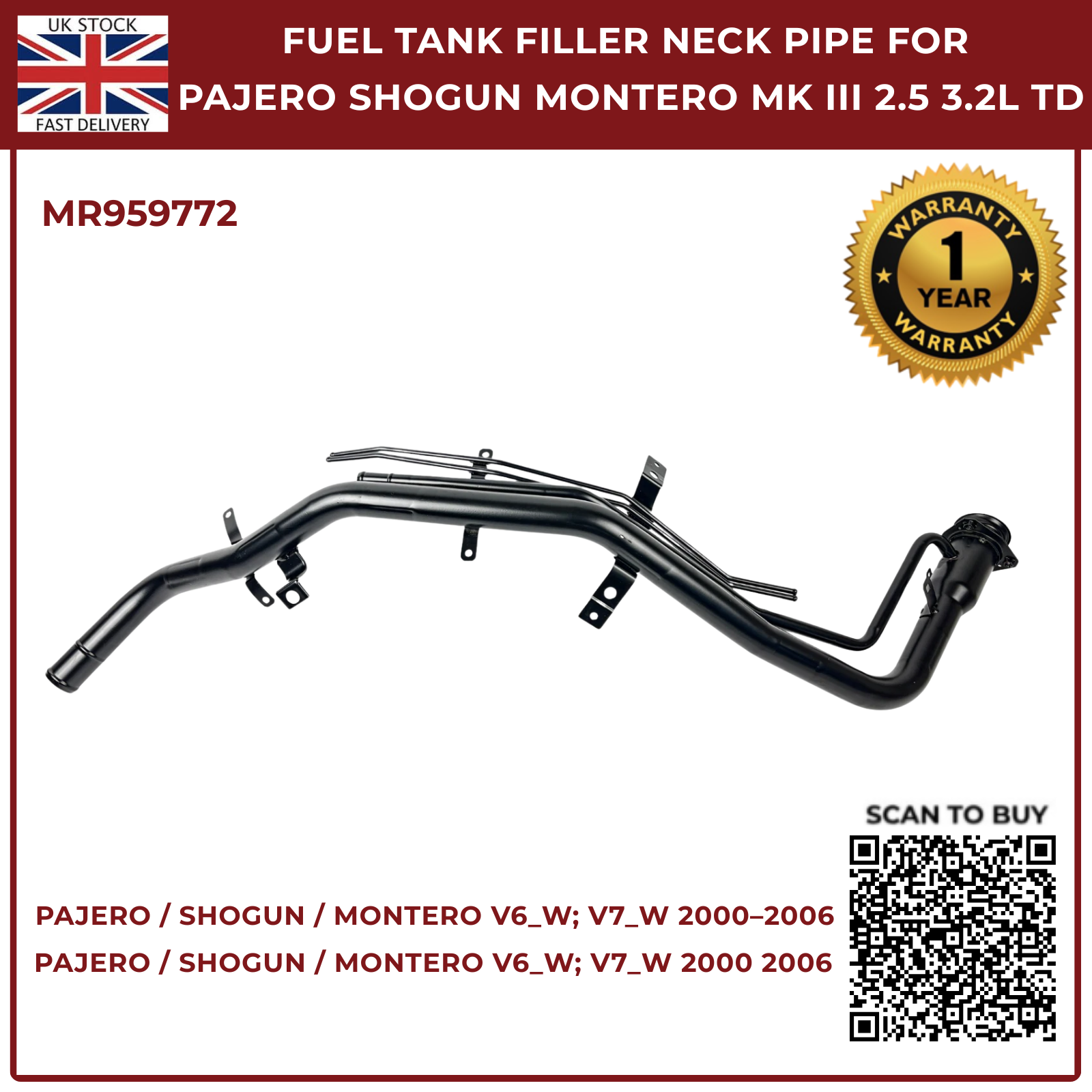 Upgrade your Mitsubishi Pajero / Shogun / Montero Mk3 with a direct‑fit fuel tank filler neck pipe engineered to match OEM specifications for MR959772. Designed for 2000–2006 diesel models, this reinforced filler pipe restores safe, leak‑free refuelling and long‑term durability.
